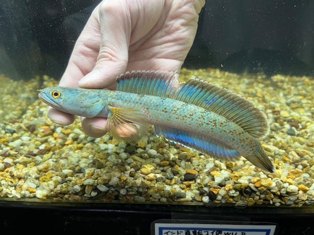 当店オリジナル直輸入便で入荷したチャンナアリストネイのセレクト個体です。現在のサイズは約17cm。 【飼育難易度】 普通 【エサ】 カーニバル、冷凍赤虫、冷凍エビ 【水温】 22-25度 【水質】 中性〜弱アルカリ性 【最大サイズ】 15-20cm 【混泳】 性格が荒いため基本的に単独飼育推奨 【コメント】 2020年に新種として記載された青系スネークヘッドの最高峰に位置する人気種です。 本種最大の魅力である鮮やかな青色を発色させるには、硬度を含んだ中性の飼育水で水温を20-22度に保ち、明るめ照明を当てることで美しく発色します。 ◆死着補償は行なっておりません。予めご了承ください。 ◆野生採集個体です。キズやヒレ裂け、欠けがある場合があります。 ◆画像個体を発送させていただきます。