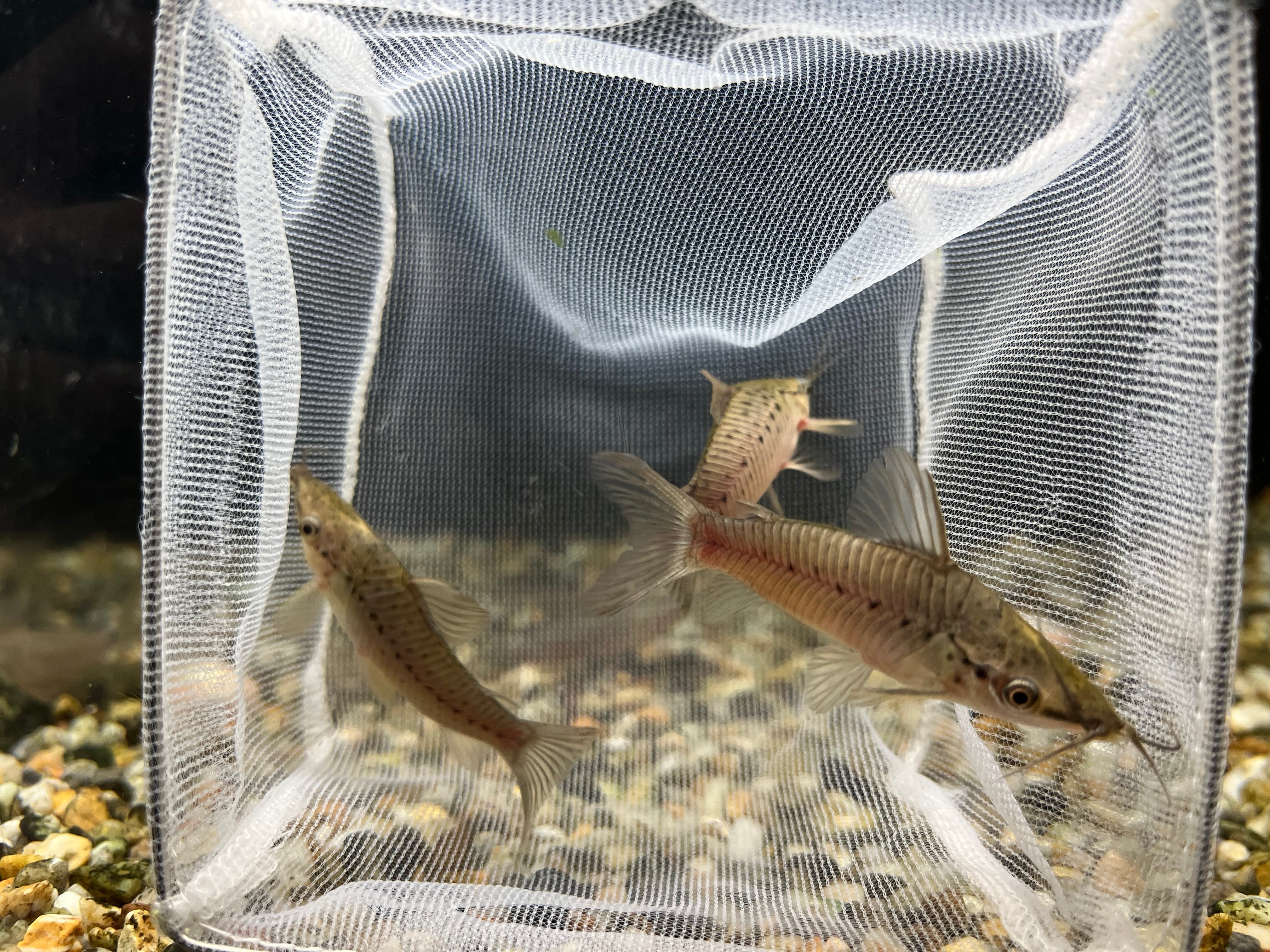 飼育は容易でエサはコリドラスタブレットや冷凍赤虫を与えています。