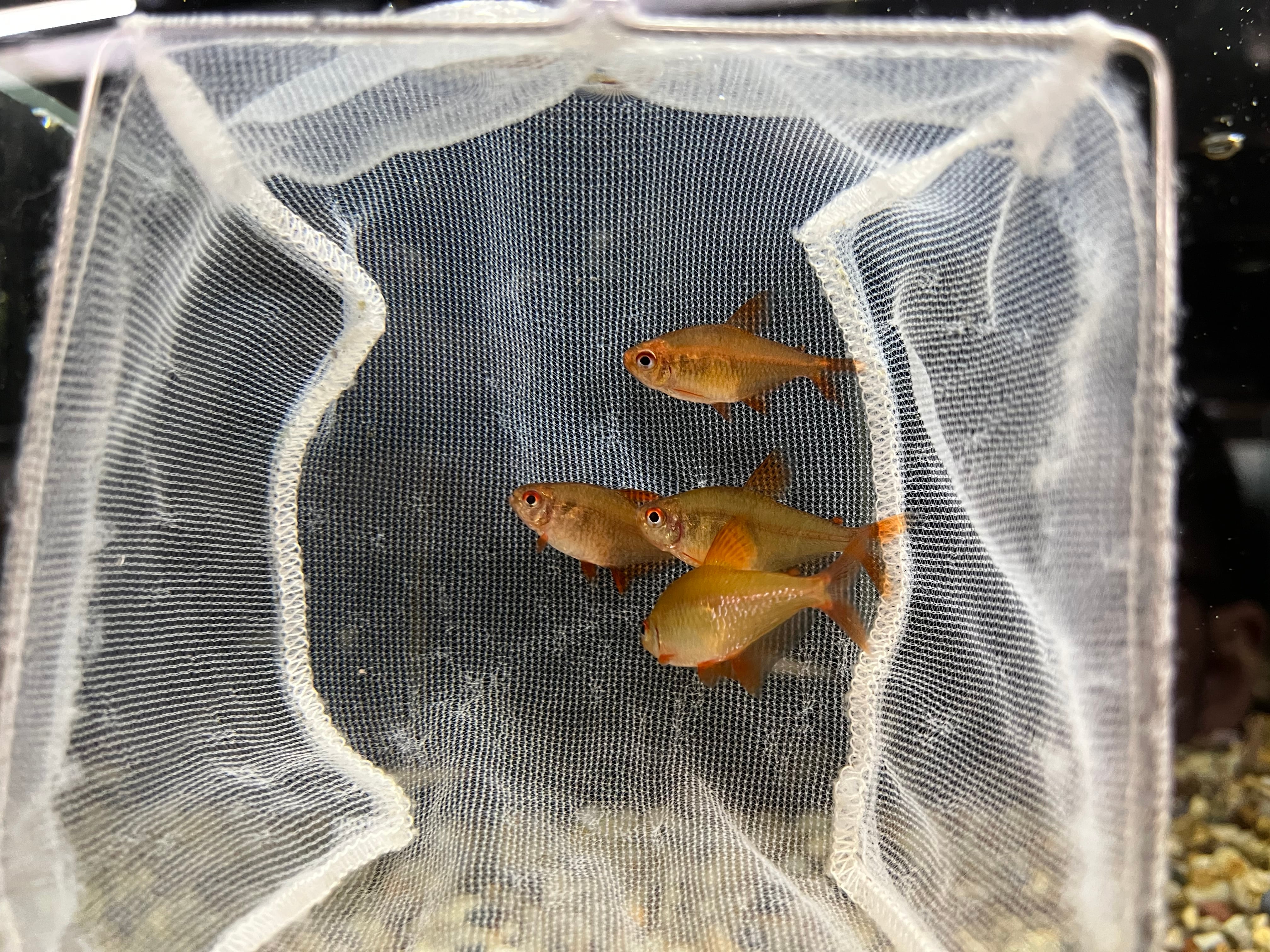 ブラジル便で入荷したジュタイ産のレッドチェリーテトラです。サイズは約2cm。