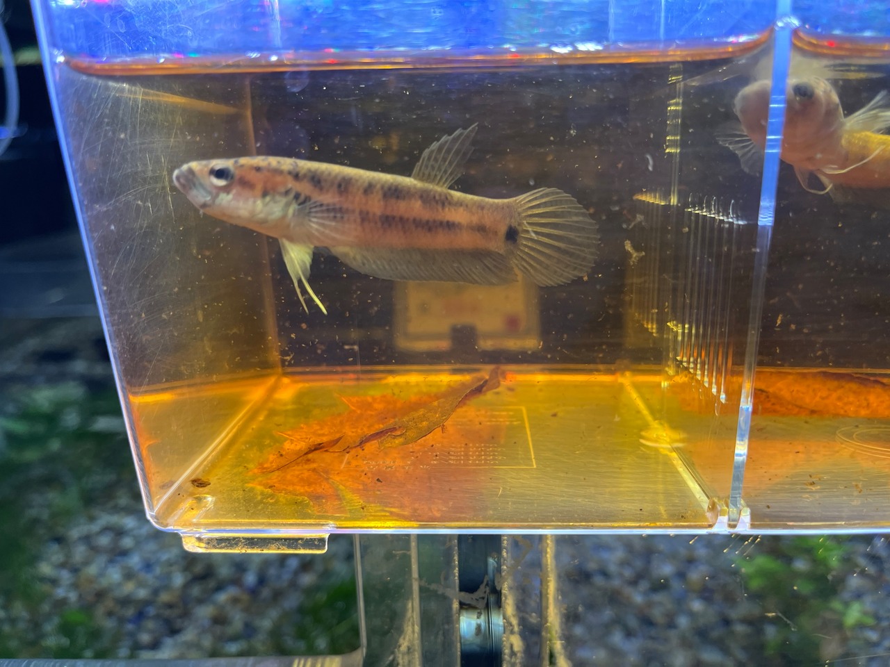 古くから知られる種類で、以前は単にユニマクラータと言う流通名でしたが近年では研究が進みオセラータ等、分類されるようになりました。繁殖形態はオスが卵を口に咥えてふ化させるマウスブルーダーです。今回は北ボルネオ産です。
