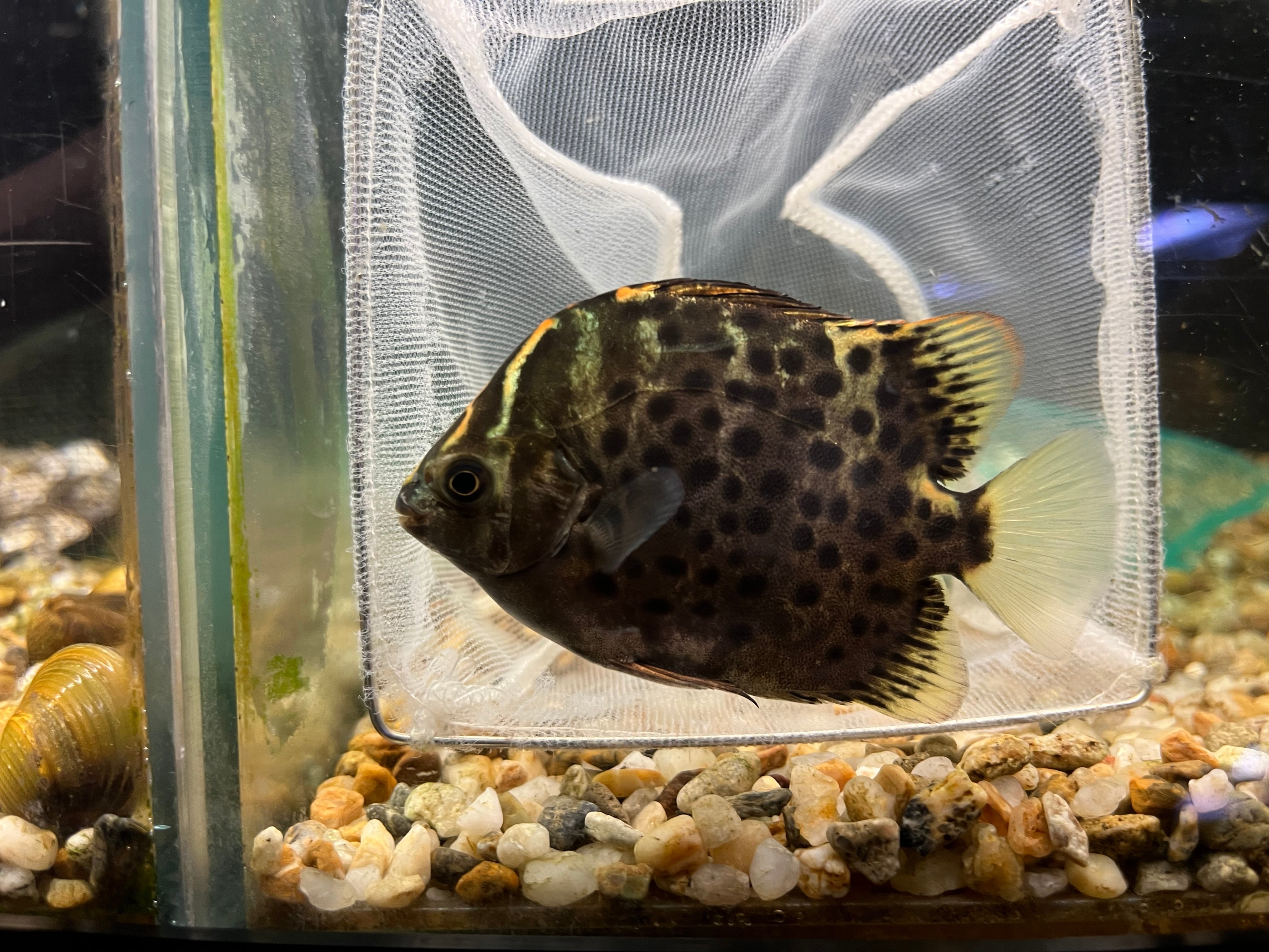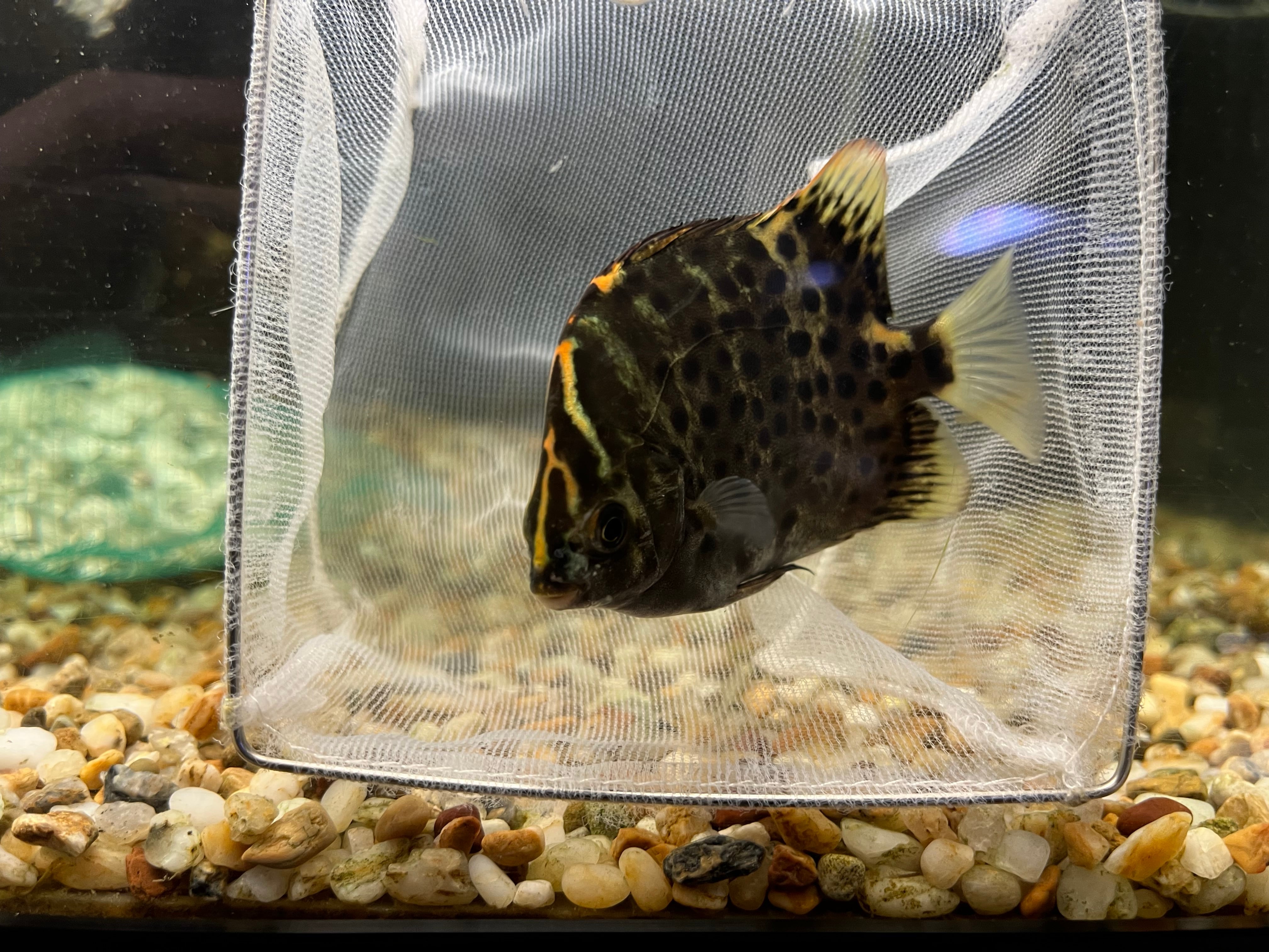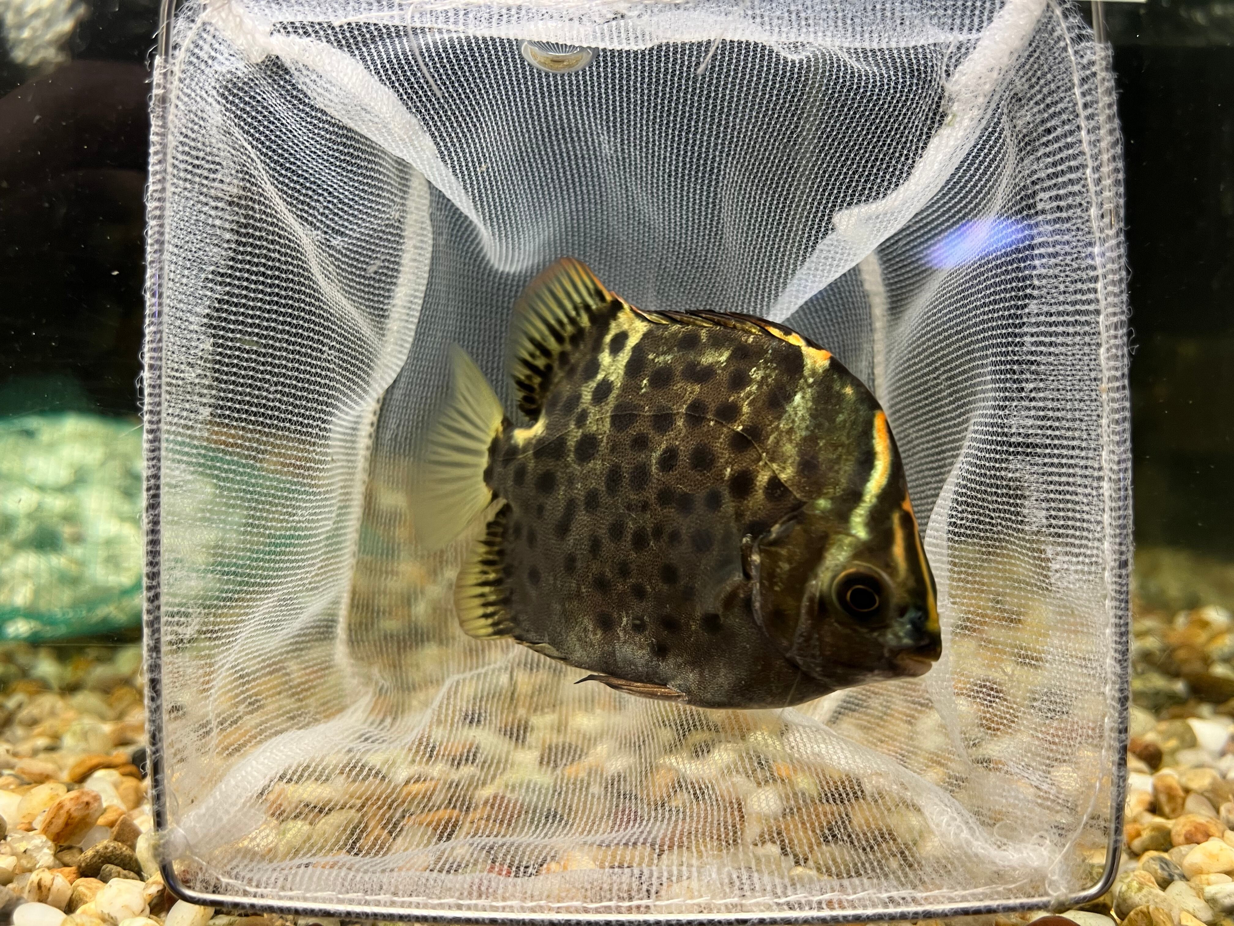 当店オリジナル四万十便で入荷した四万十川産クロホシマンジュウダイ(レッドスキャットファーガス)です。現在のサイズは6-8cm。