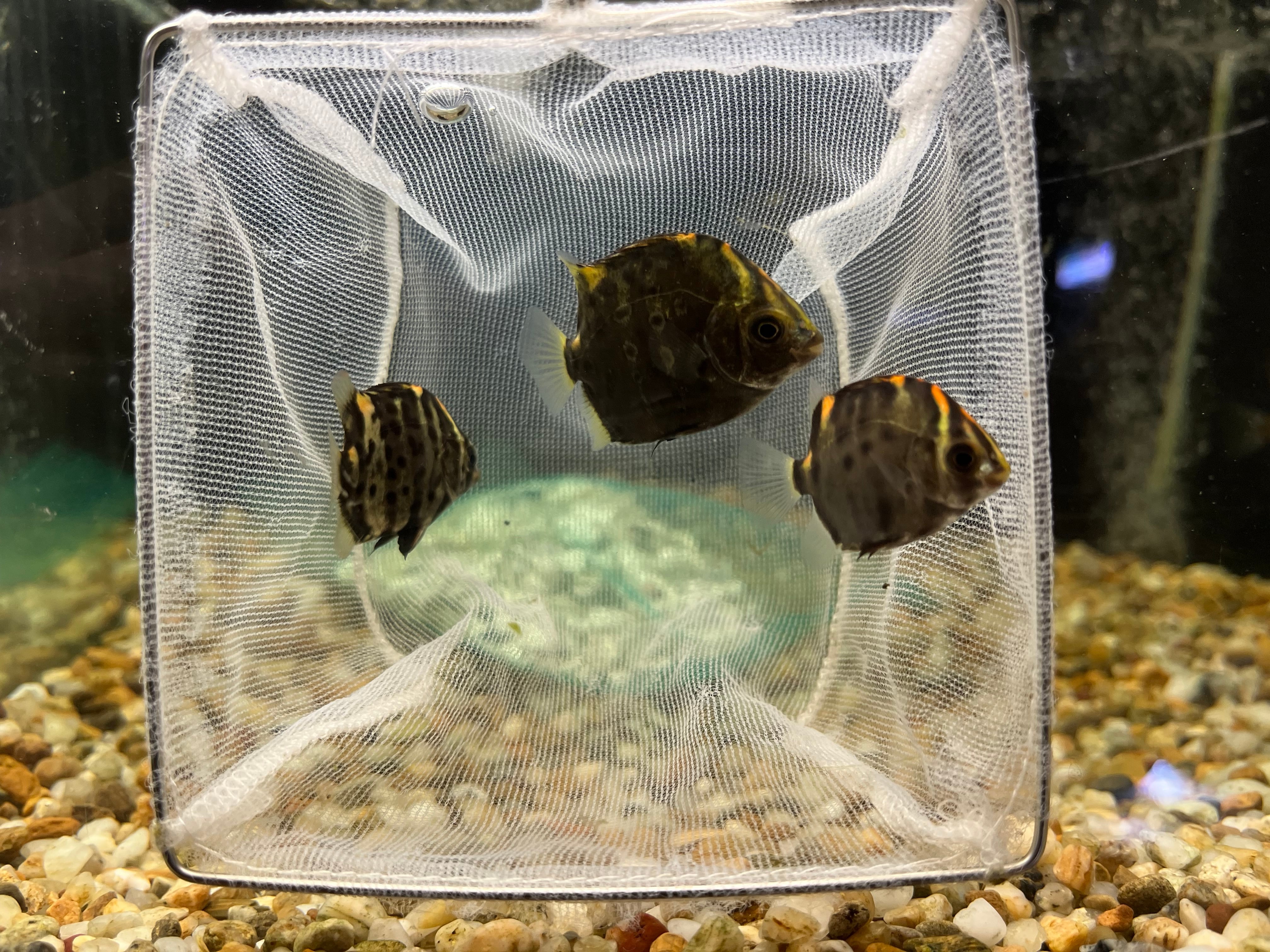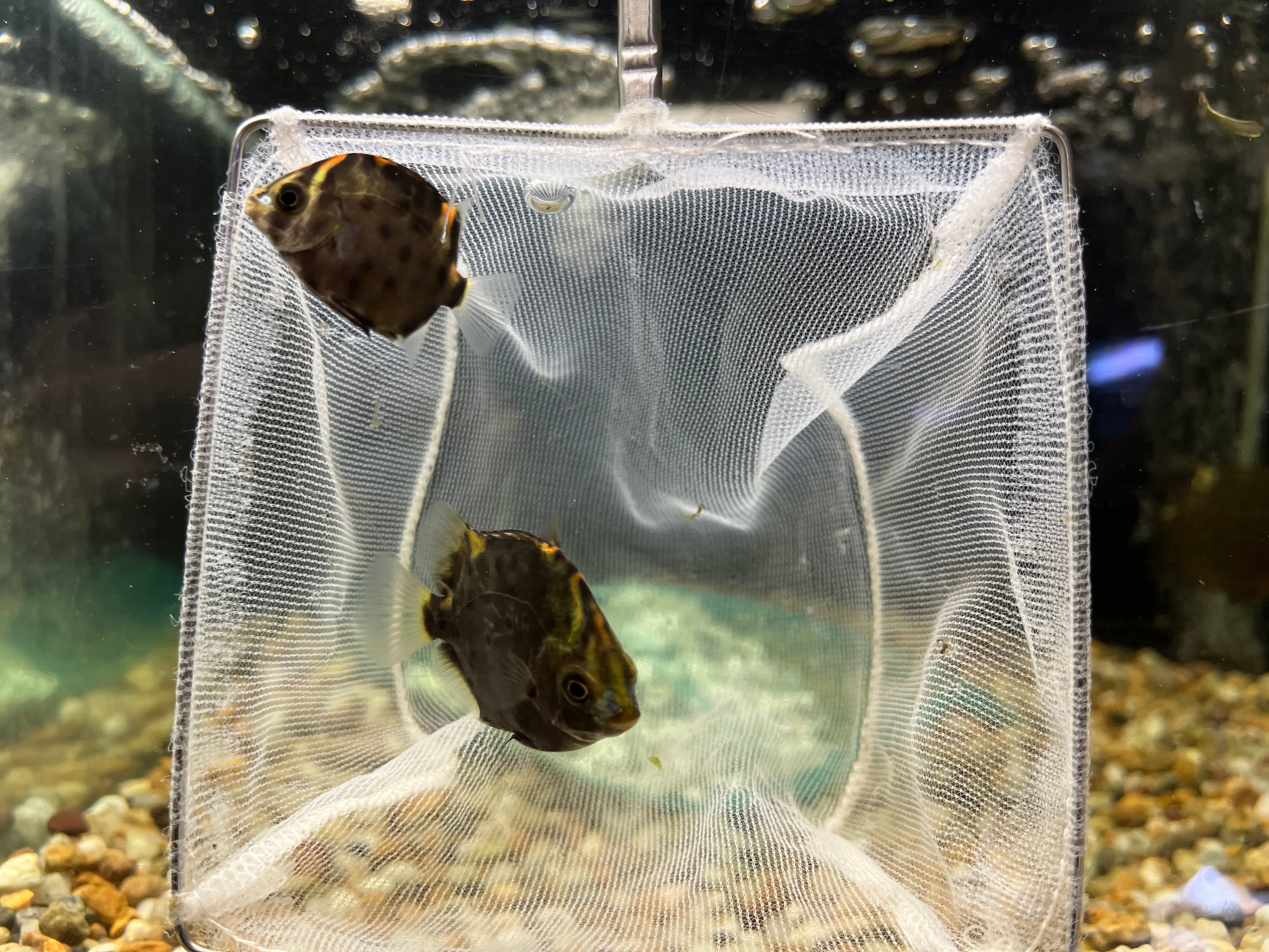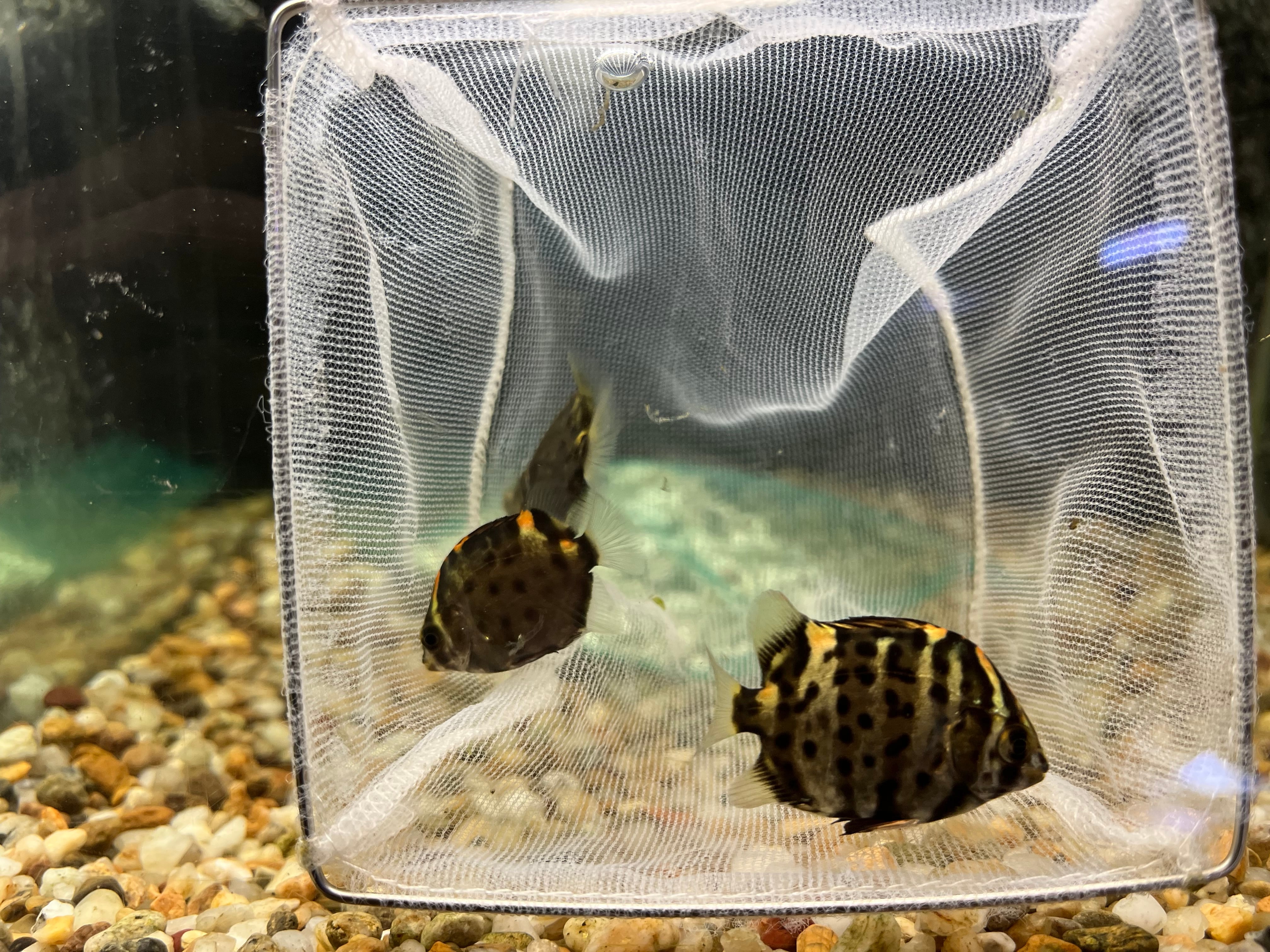 当店オリジナル四万十便で入荷した四万十川産クロホシマンジュウダイ(レッドスキャットファーガス)です。現在のサイズは4-5cm。
