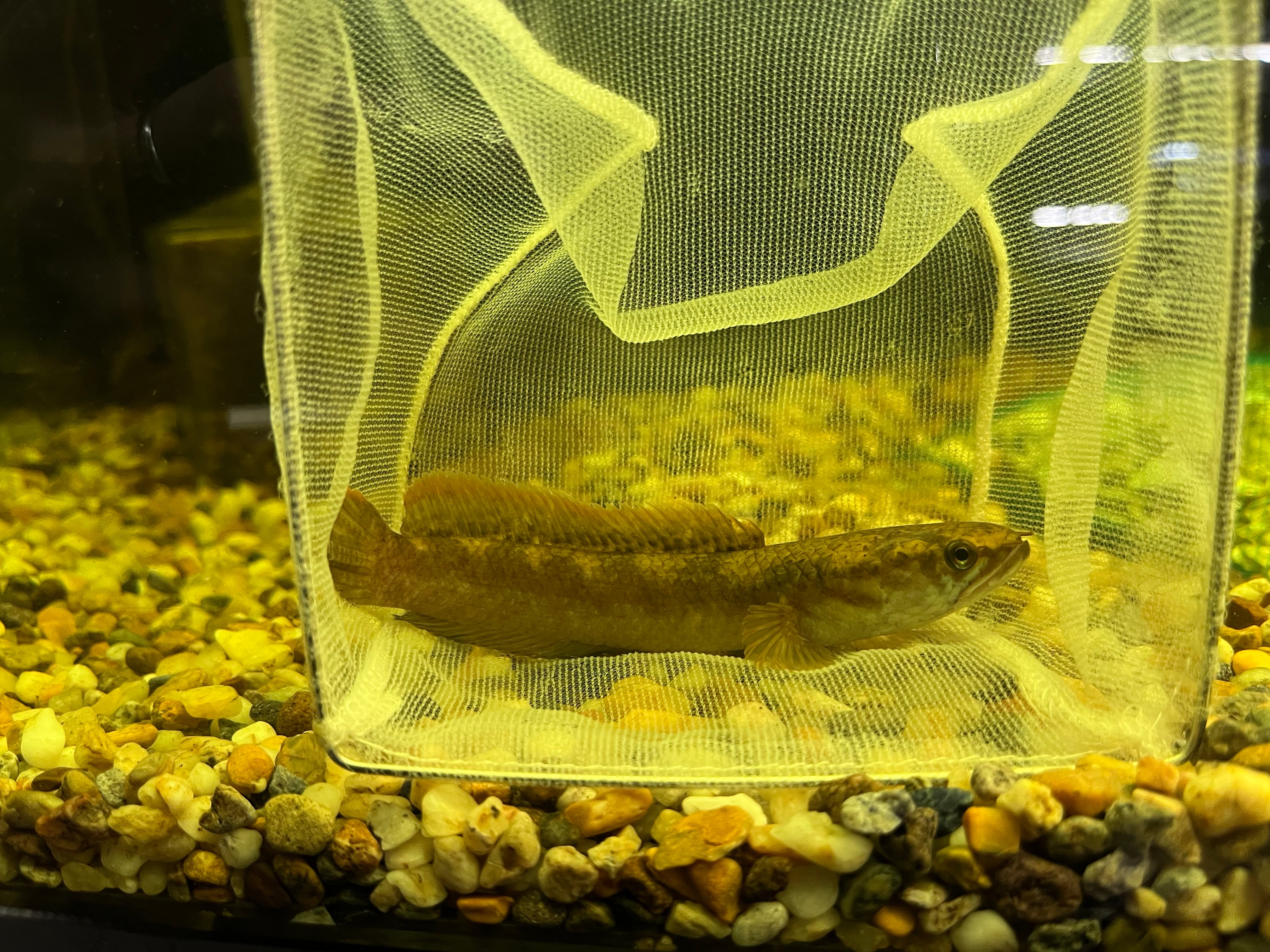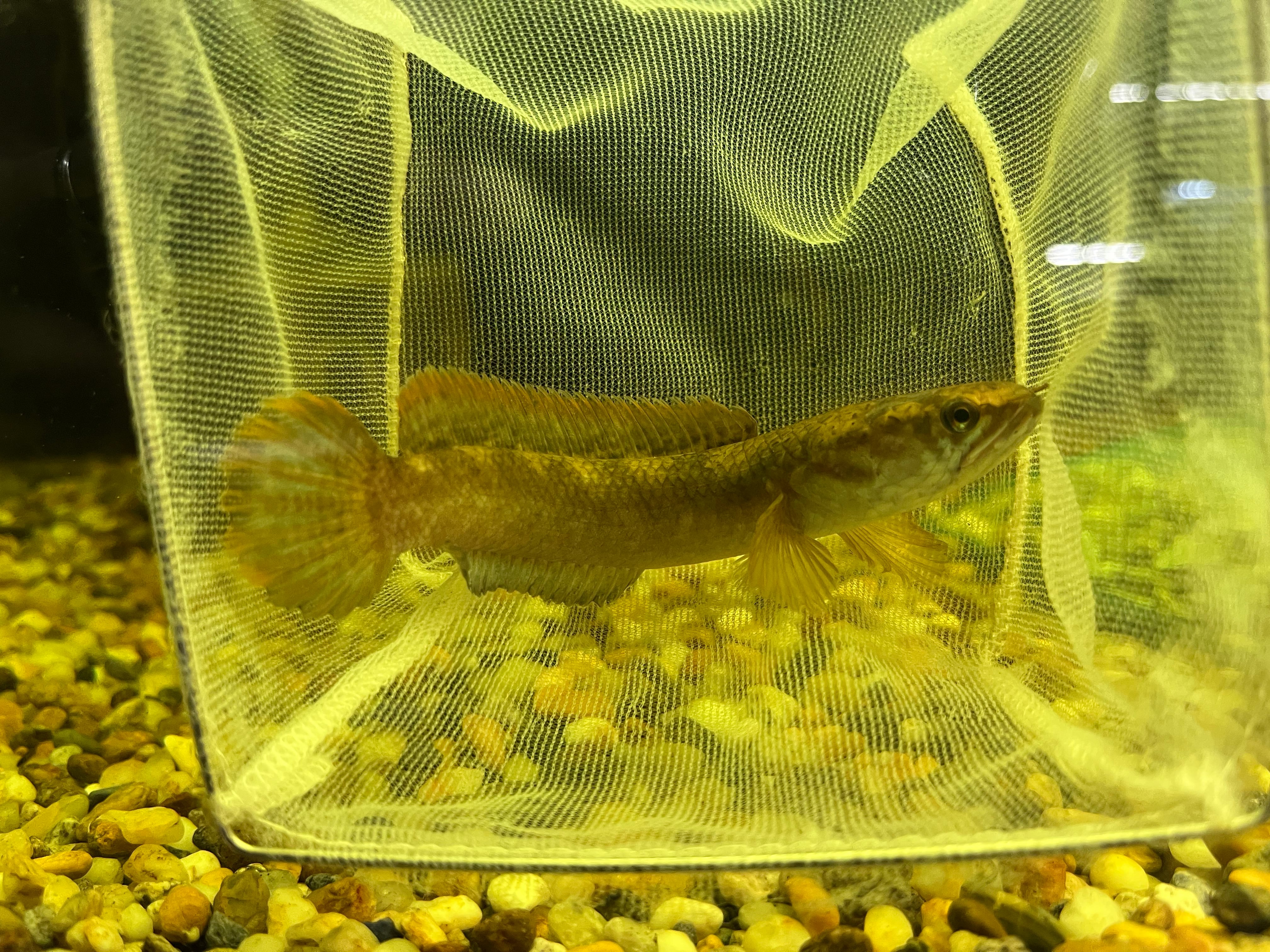 以前はドワーフスネークヘッドに混じって入荷する程度で見かける機会の非常に少ない種類でしたが、近年はシーズンになるとまとまって入荷されるようになりました。それでもまだまだ目にする機会の少ない珍しいスネークヘッドと言えます。普段は地味な印象ですが、発色するとヒレのエッジがオレンジ色に染まりシンプルながら美しい色合いを見せてくれるスネークヘッドです。