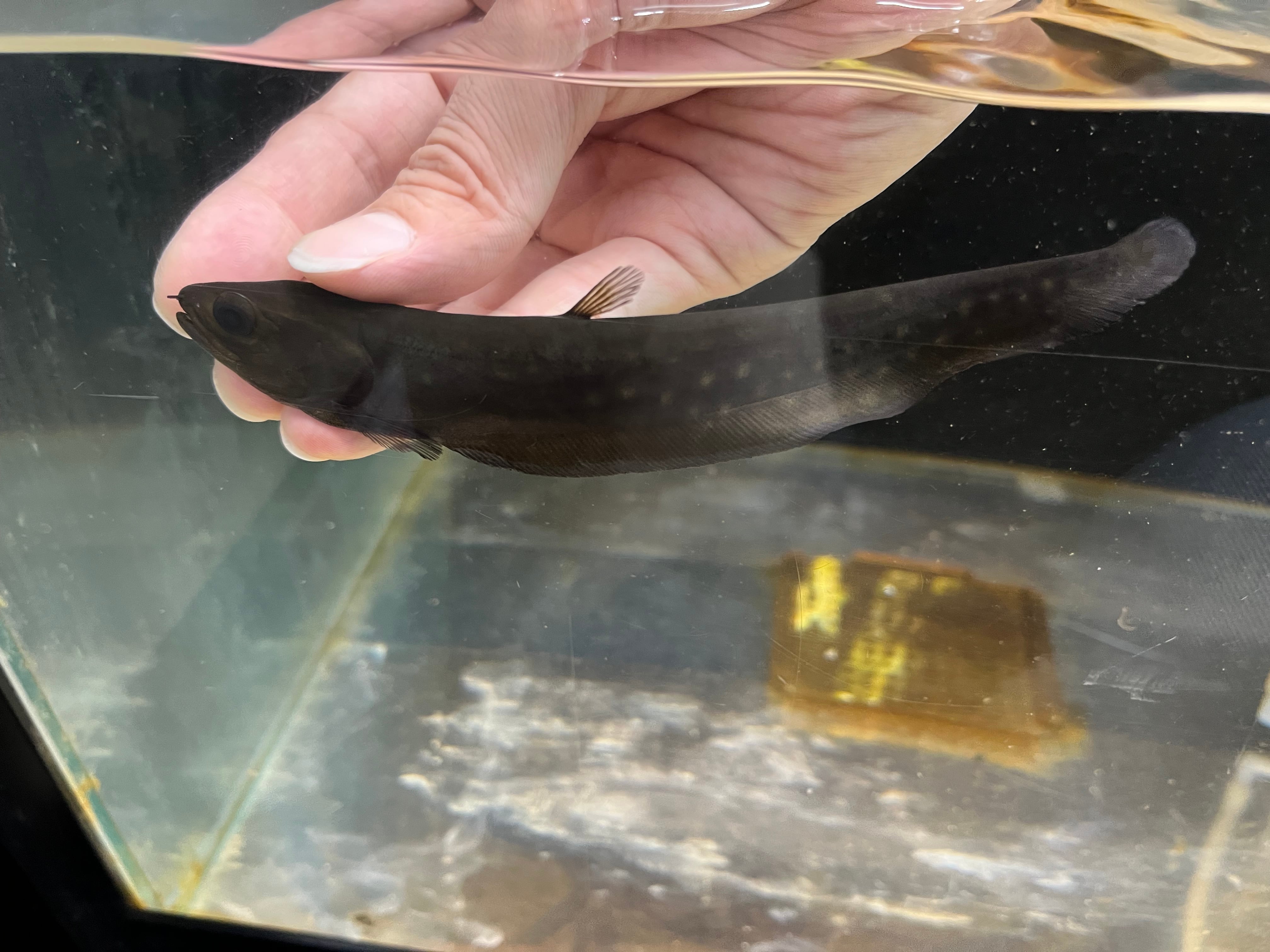 当店オリジナル直輸入便で入荷したアロワナナイフフィッシュアファーです。現在のサイズは約12cm。