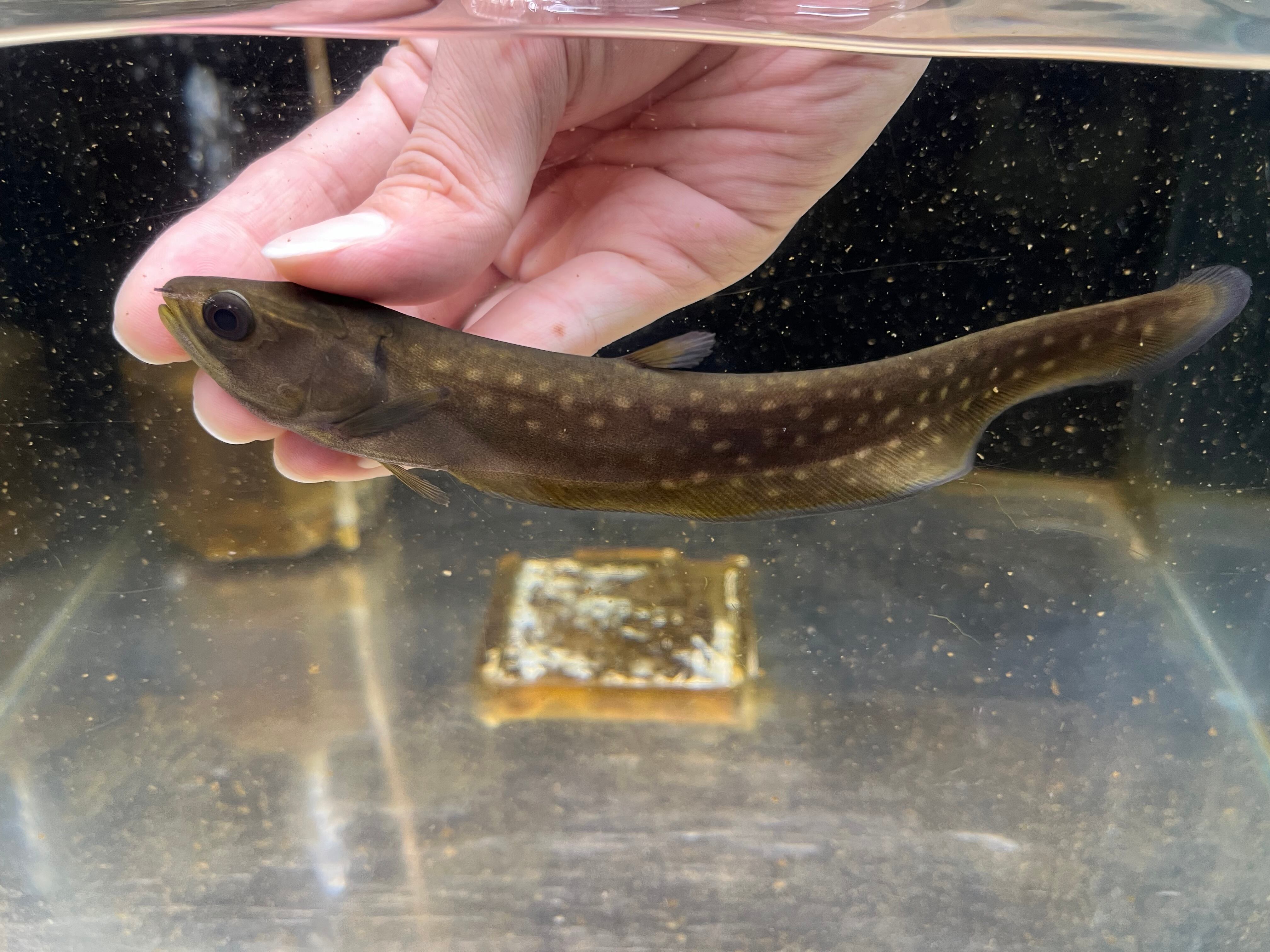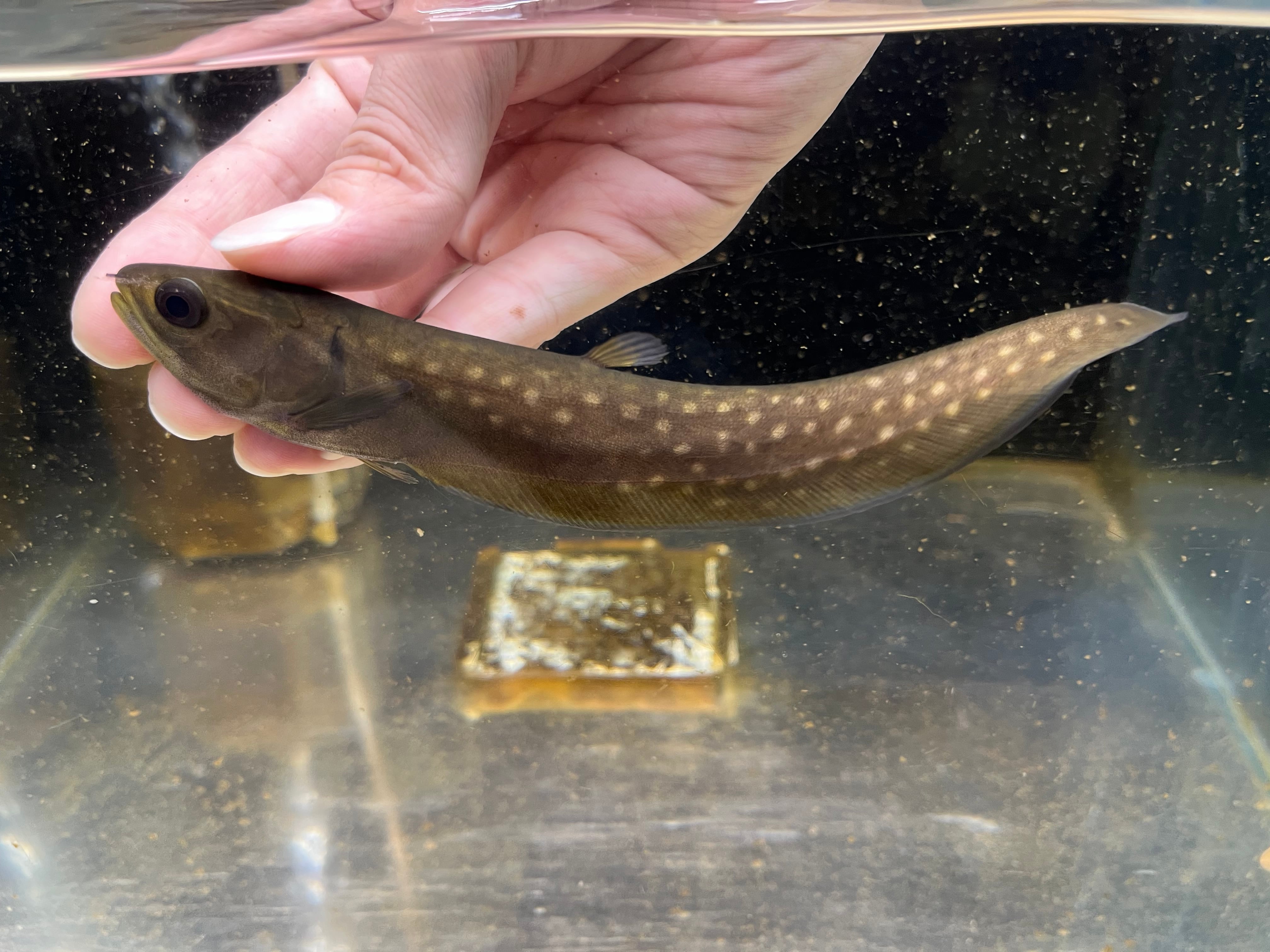 当店オリジナル直輸入便で入荷したアロワナナイフフィッシュアファーです。現在のサイズは約15cm。