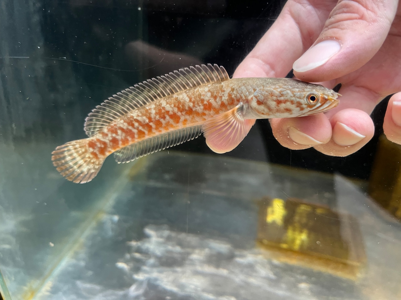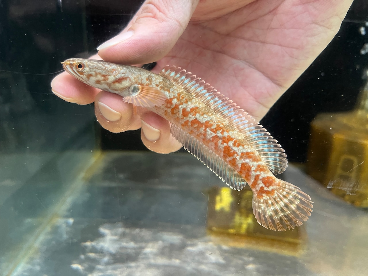 数年前に極少数がサンプルとして輸入され.チャンナspイグニスレッドという名前で注目を集めたスネークヘッドです。2024年に正式にチャンナコッキネアとして学名が付与されたばかりの新種のスネークヘッドです。体側に規則正しく赤いバンドが入る美種です。