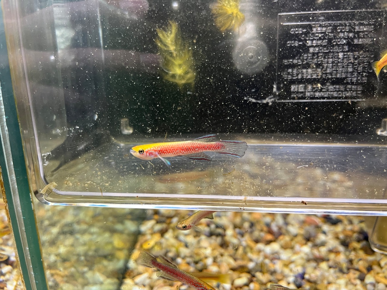 アフリカに広く生息する卵生メダカの一種で、派手な色彩を持つ美しいメダカです。