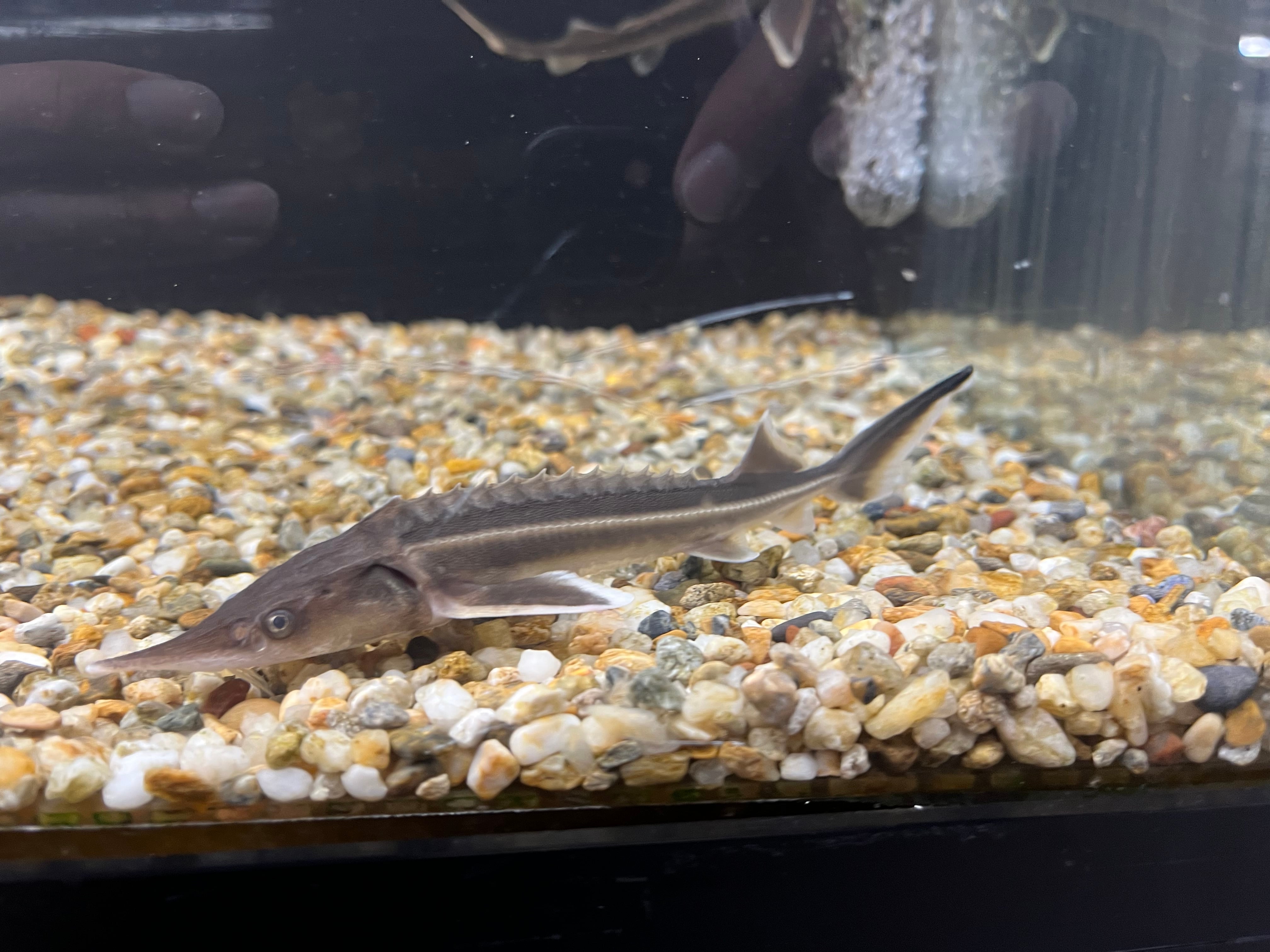 キャビアで有名な古代魚の仲間です。チョウザメの中でも小型な種類で、自然界では1mを超える個体も確認されていますが、飼育下では40-50cmの個体がほとんどです。