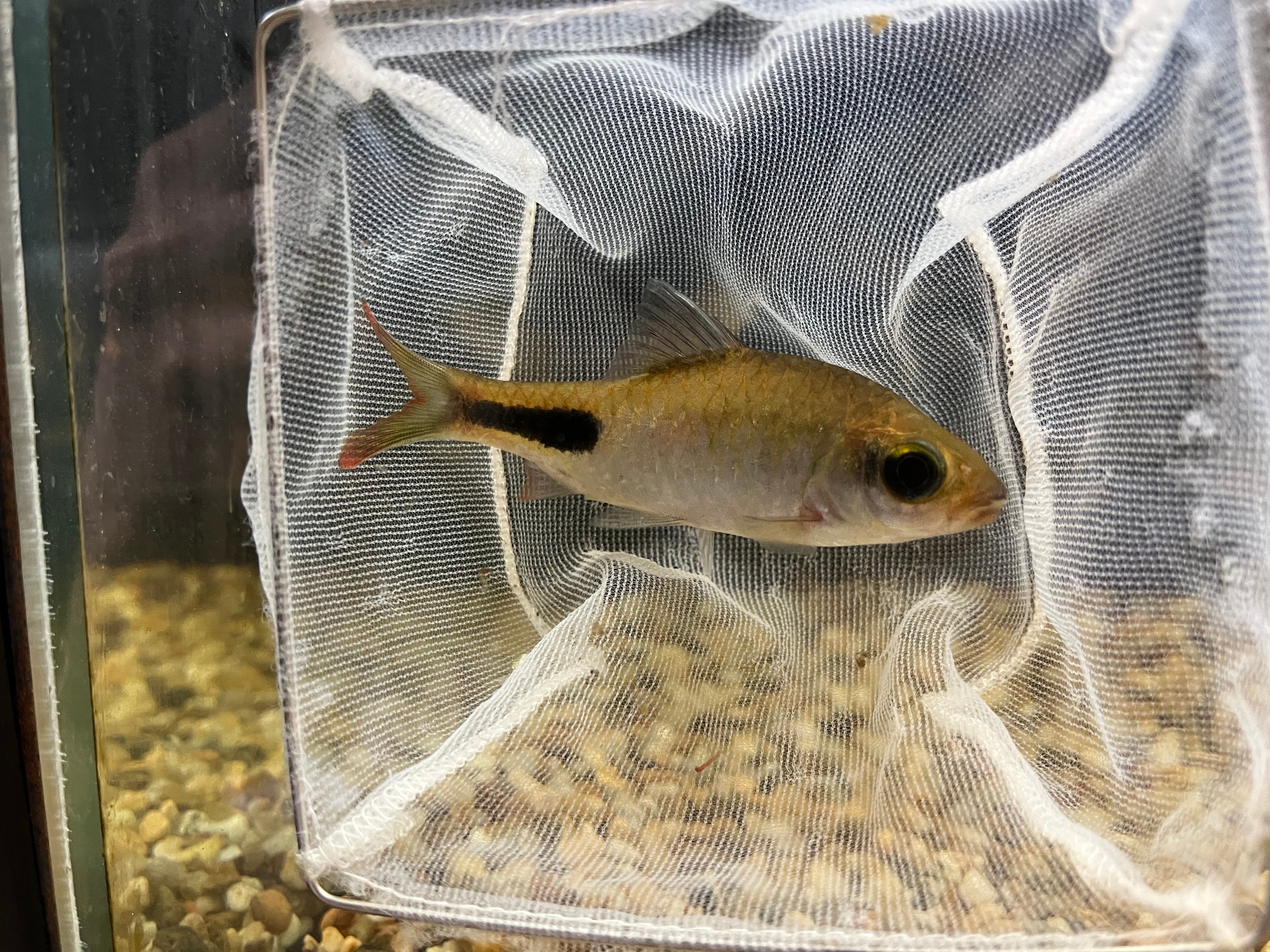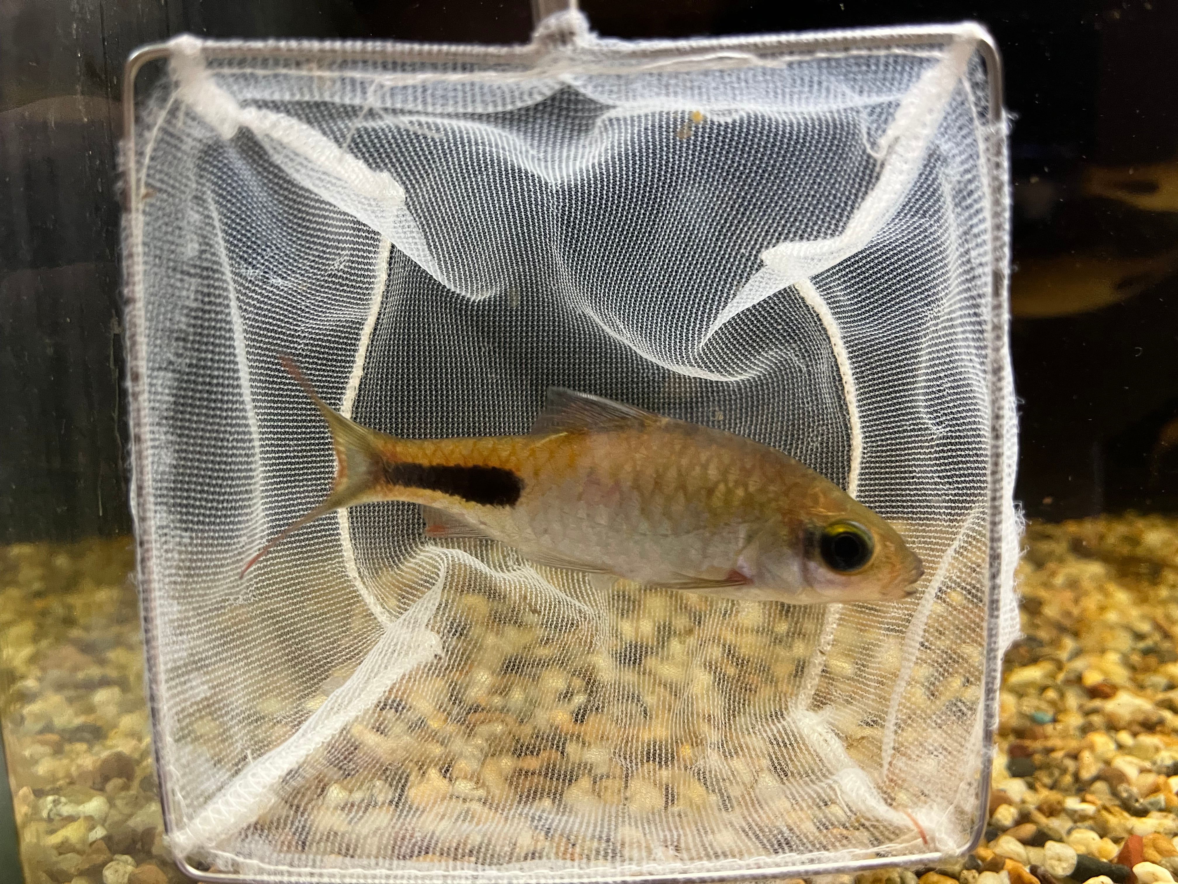 インドから輸入されるドーキンシアの一種で、オスに比べ、発色は控えめですが、尾びれは赤く色づき美しくなります。ペアで混泳させるとオスの美しい求愛行動が見られます。ドーキンシアの中でも水質悪化や高水温にも強く、かなり丈夫な種類です。