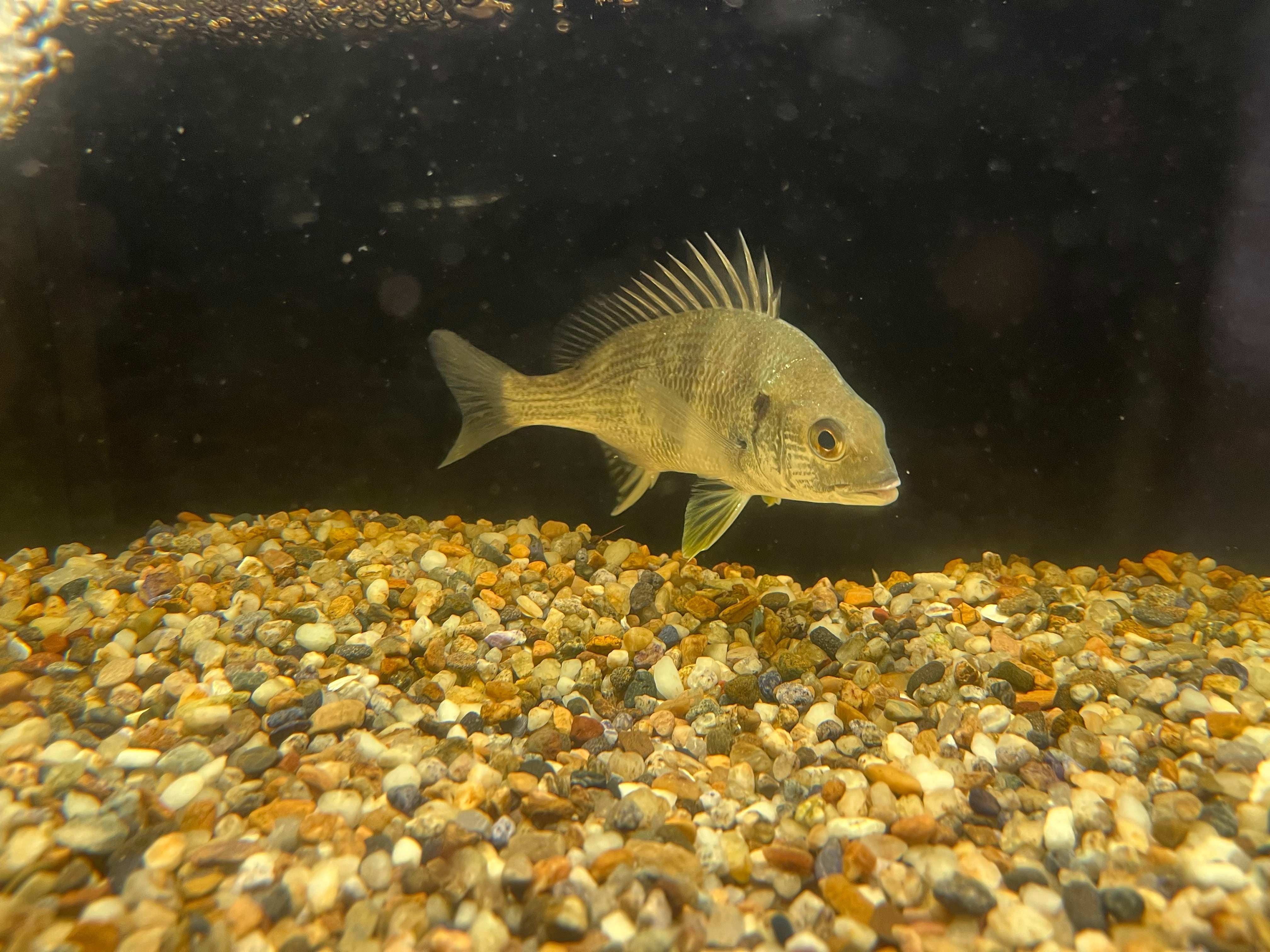 クロダイに近縁な種類ですが、クロダイに比べ、より淡水への適応が高く、特に幼魚期は頻繁に淡水域へ侵入します。現在店頭では0.1%未満の塩分濃度で管理しています。
