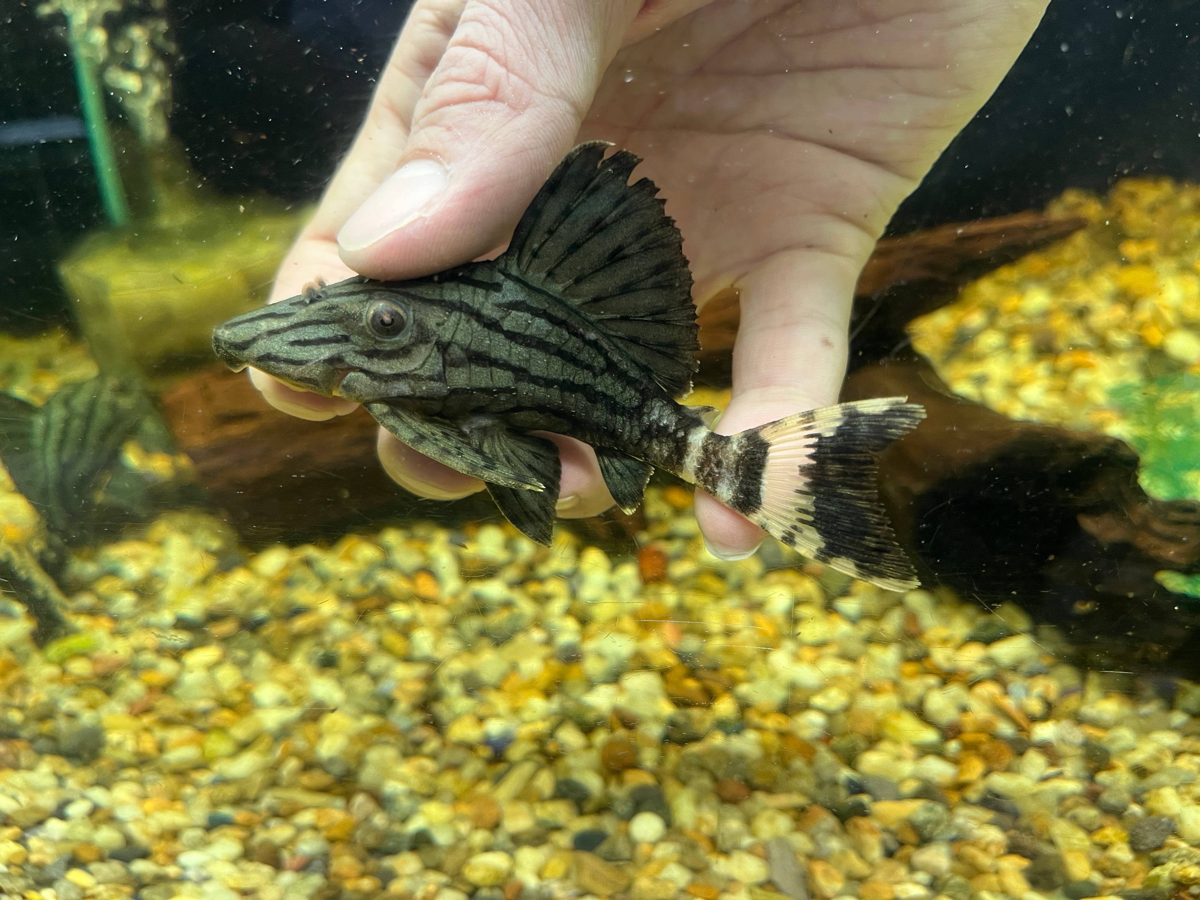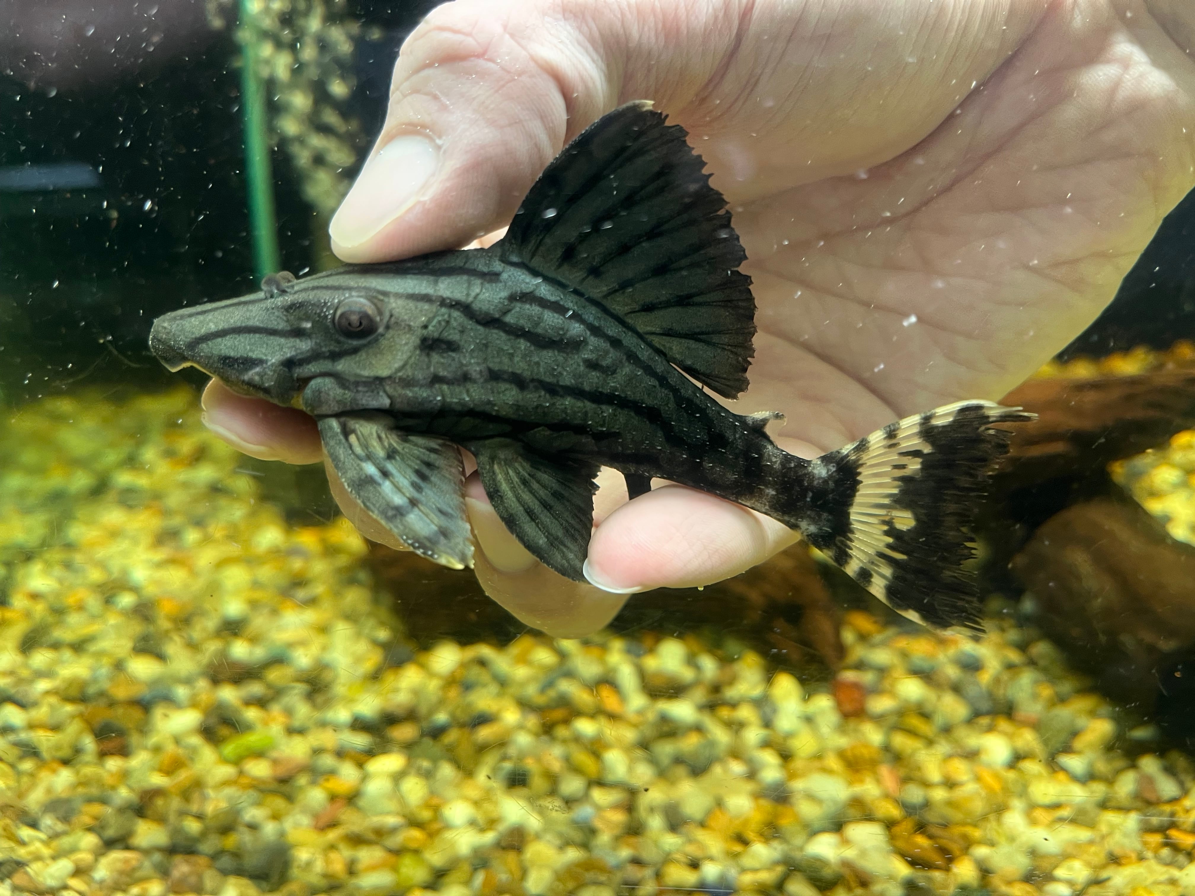 コロンビア便で入荷したグリーンロイヤルプレコです。現在のサイズは8-10cm。