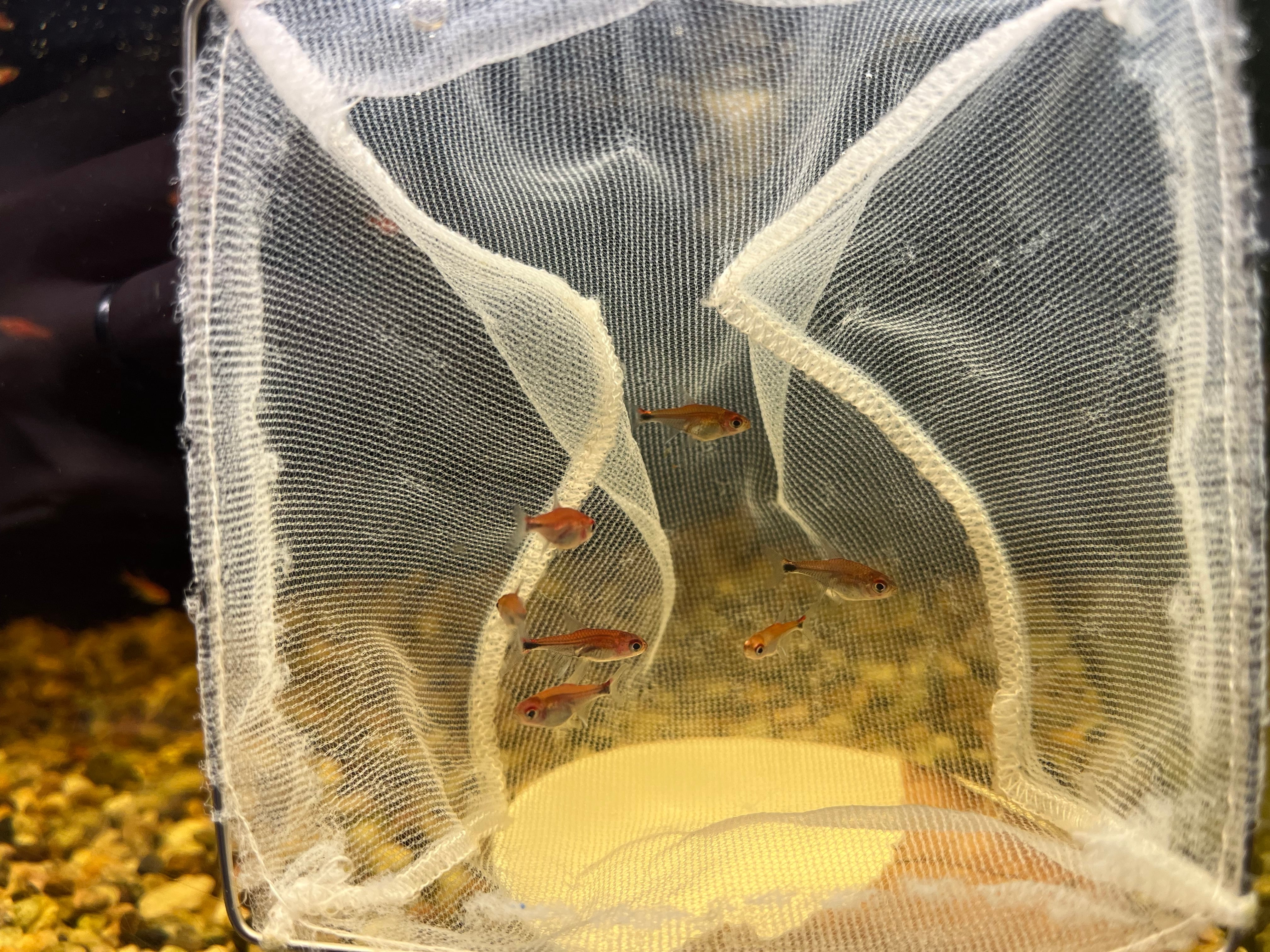 コロンビア便で入荷したディープレッドホタルテトラです。現在のサイズは約1cm。