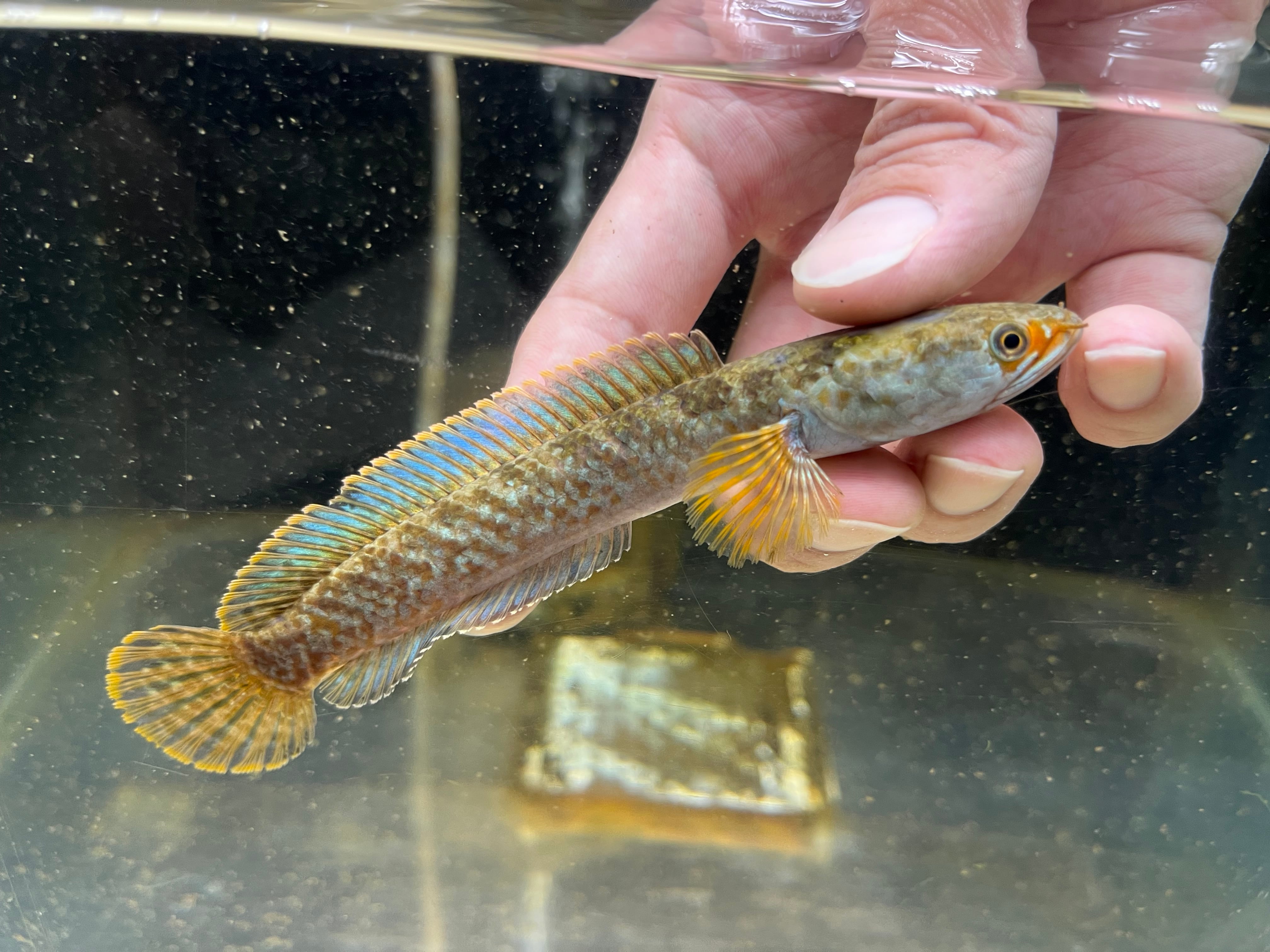 ミャンマー(旧ビルマ)北部に生息する固有種であることから、 Burma(ビルマ)を小種名にもつスネークヘッドです。2024年にブルマニカという学名が付くまではsp種として流通していましたが、生息地の治安の関係もあり今でも入荷は稀です。ヒレにはブルーが入り、眼の前方に入る赤色が特徴的な美種です。