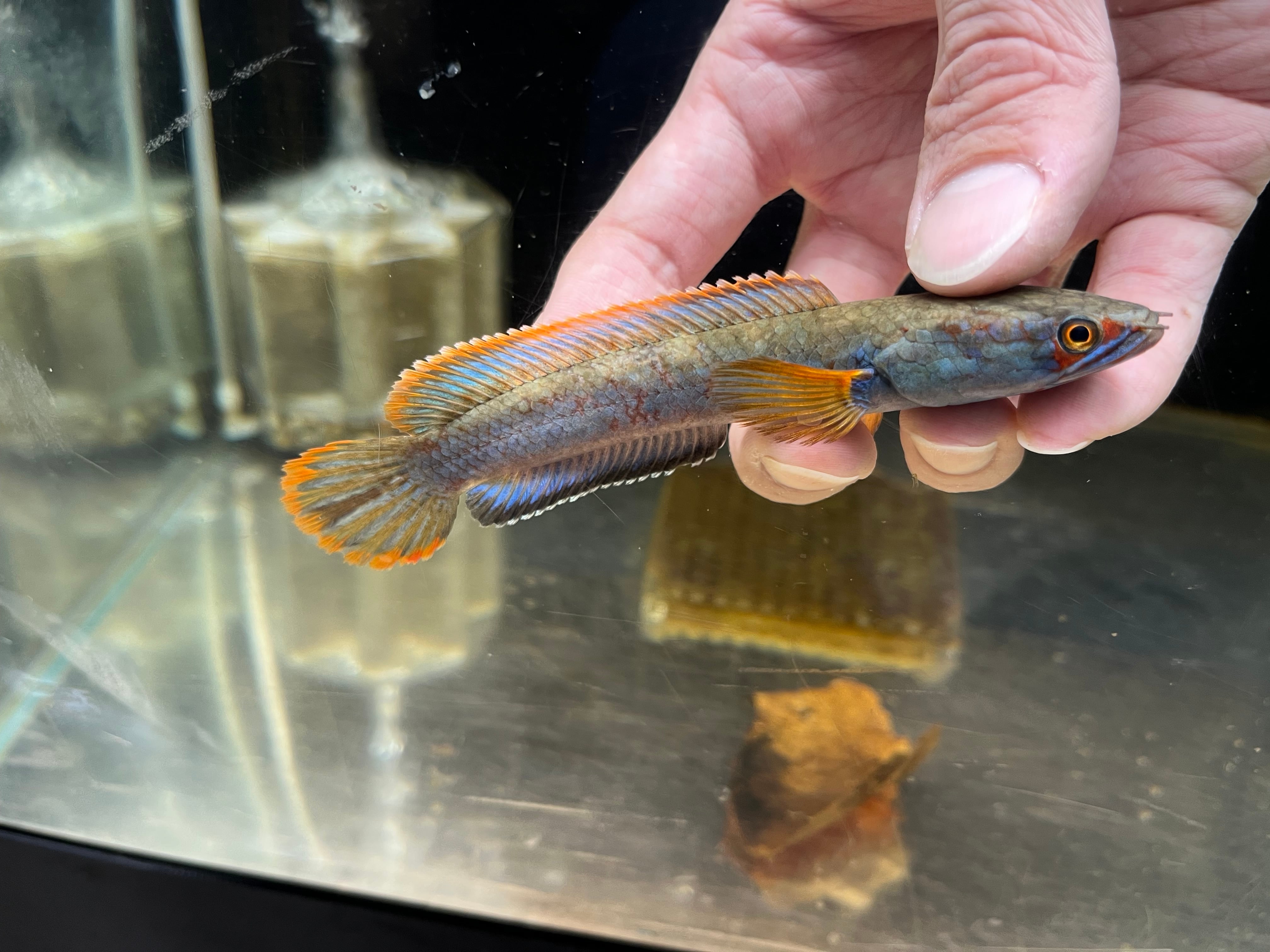 ミャンマーに生息するスネークヘッドです。目の周りからボディに入るメタリックブルーやヒレのオレンジエッジが美しく絶大な人気を誇るスネークヘッドです。また眼の周りに入る赤い模様がカブキ役者の隈取に見えることからカブキの流通名もあります。発見から長らくsp種として扱われてきましが、近年の研究で学名が付与され現在はチャンナフィロフタルムスと定義されています。