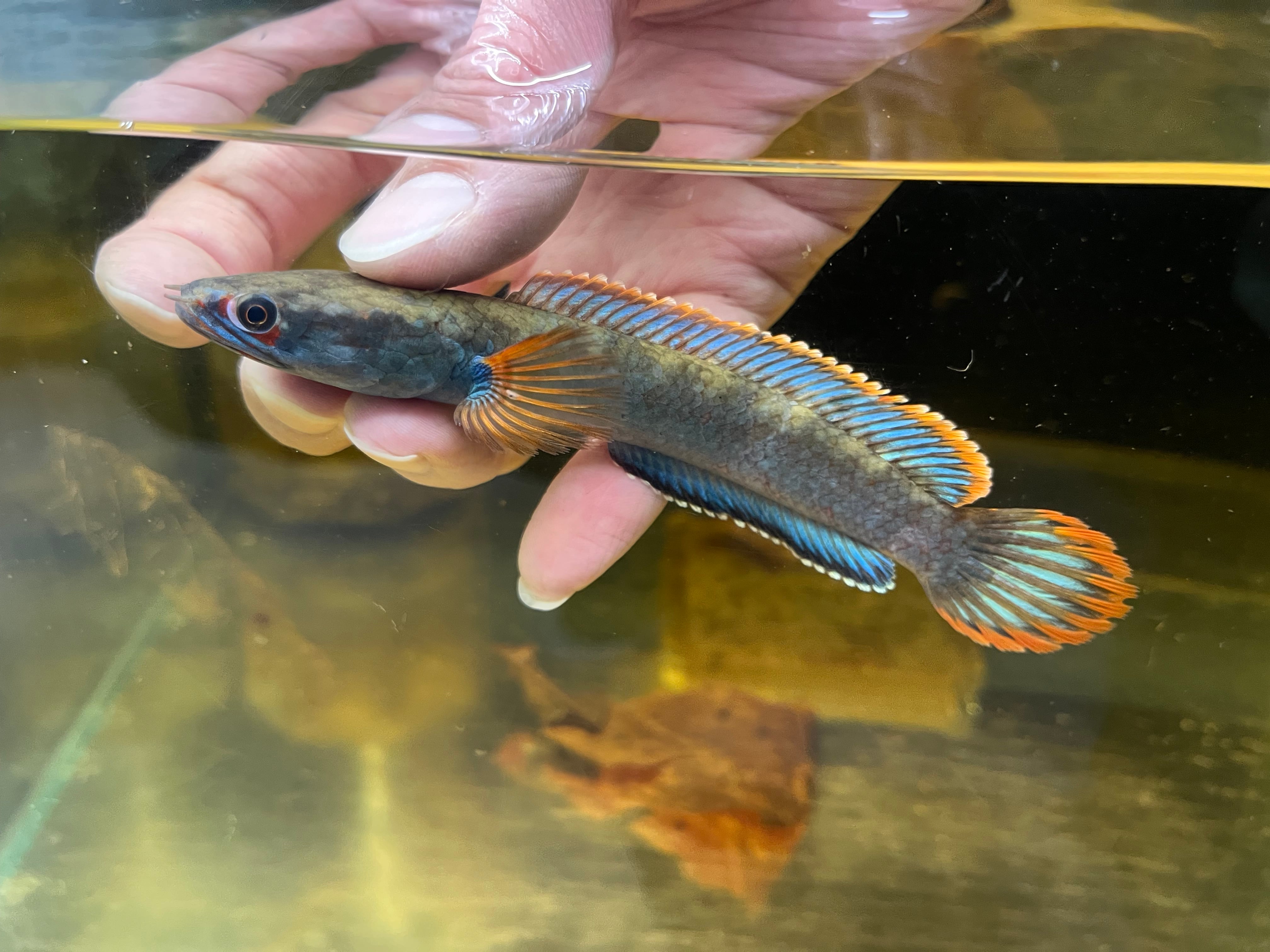 ミャンマーに生息するスネークヘッドです。目の周りからボディに入るメタリックブルーやヒレのオレンジエッジが美しく絶大な人気を誇るスネークヘッドです。また眼の周りに入る赤い模様がカブキ役者の隈取に見えることからカブキの流通名もあります。発見から長らくsp種として扱われてきましが、近年の研究で学名が付与され現在はチャンナフィロフタルムスと定義されています。
