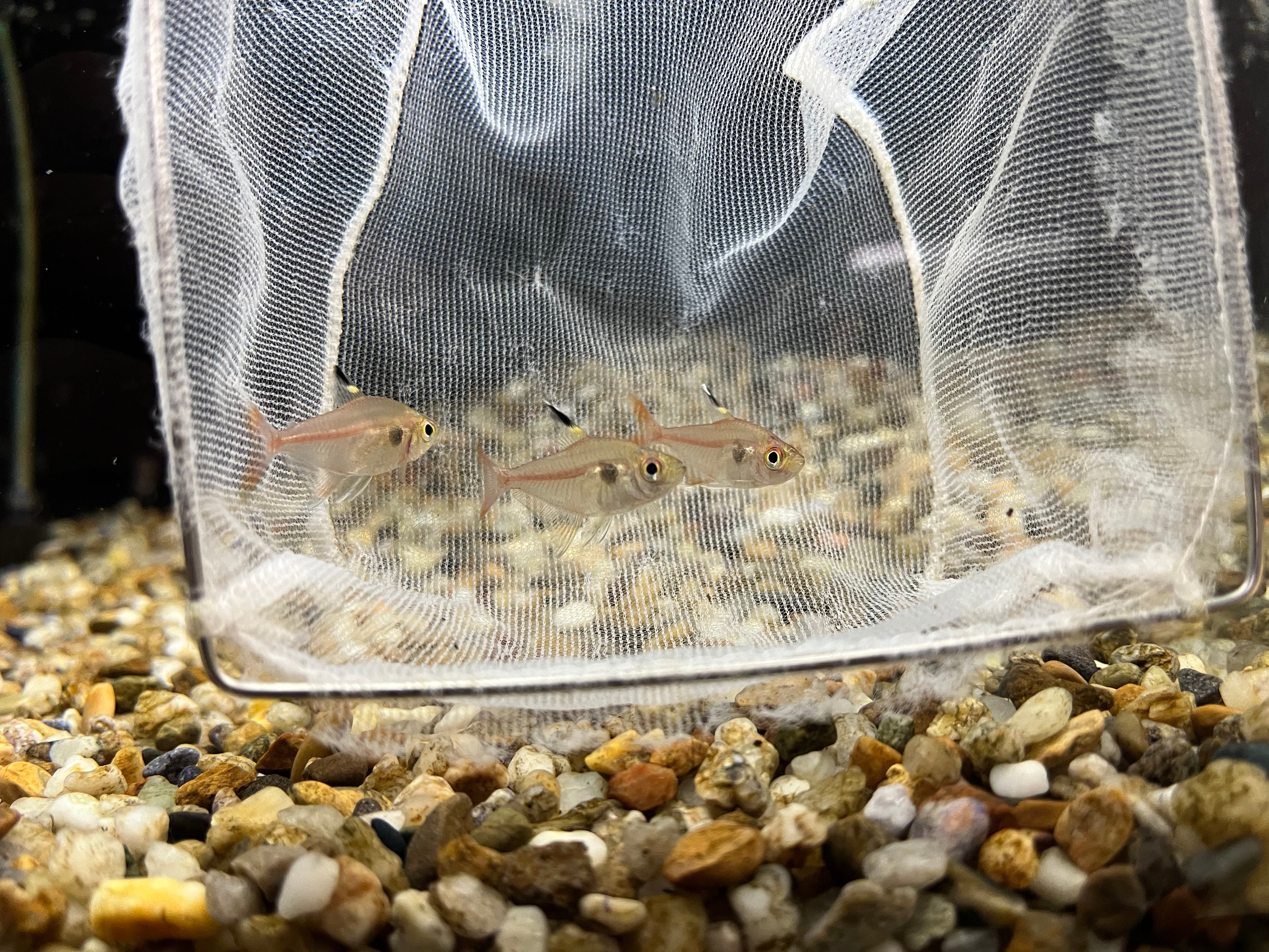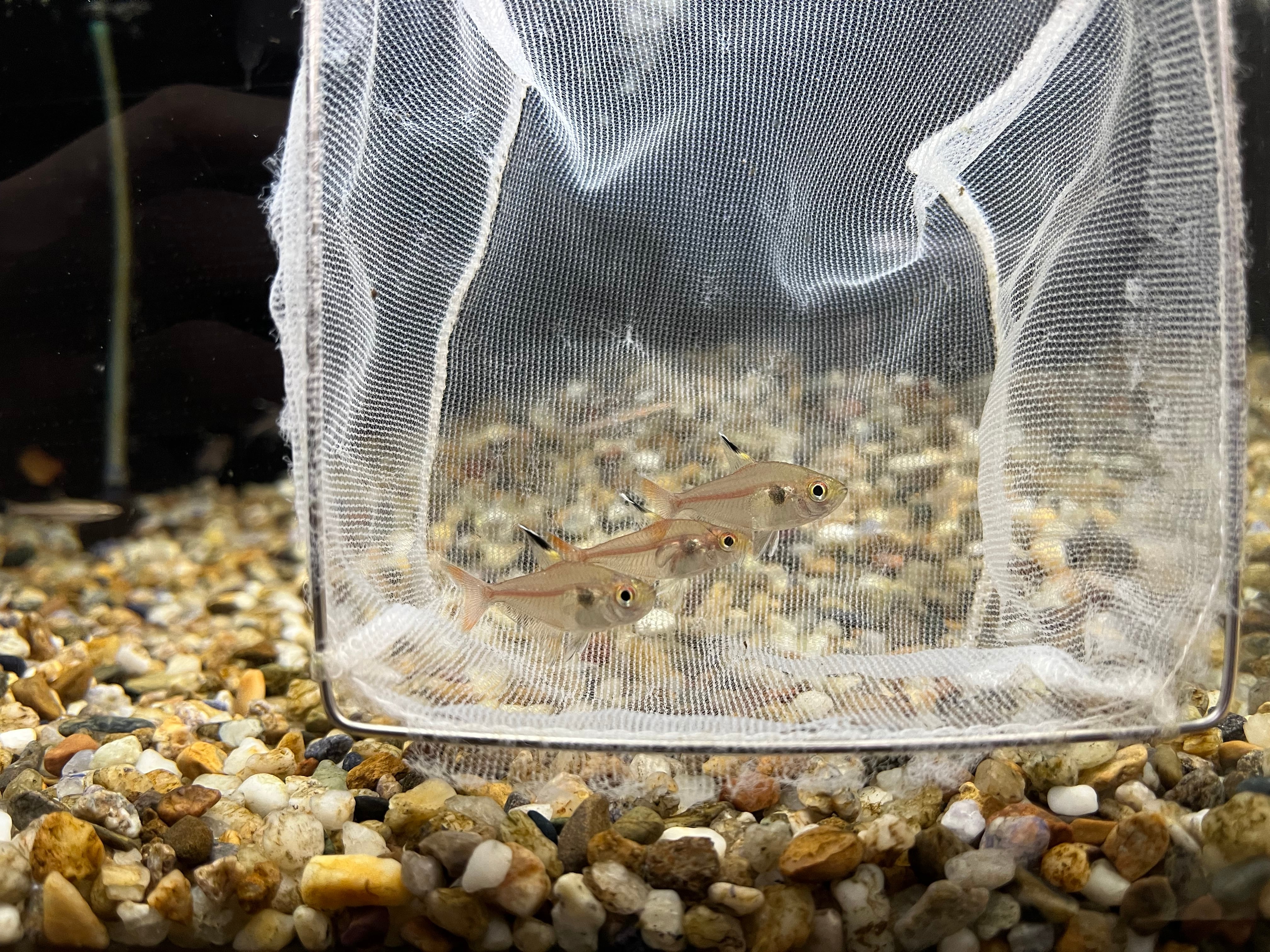 コロンビアやペルー、ブラジルから輸入されるハイフェソブリコンの一種です。古くは珍カラ代表として稀に輸入されていましたが、近年はまとまった数がある程度輸入されるようになり目にする機会が増えました。産地になり多少の差異はありますが、オスは背ビレと尻ビレの先端が長く伸長し小さいながら見応えのある姿へと成長します。オスメスの選別は不可。