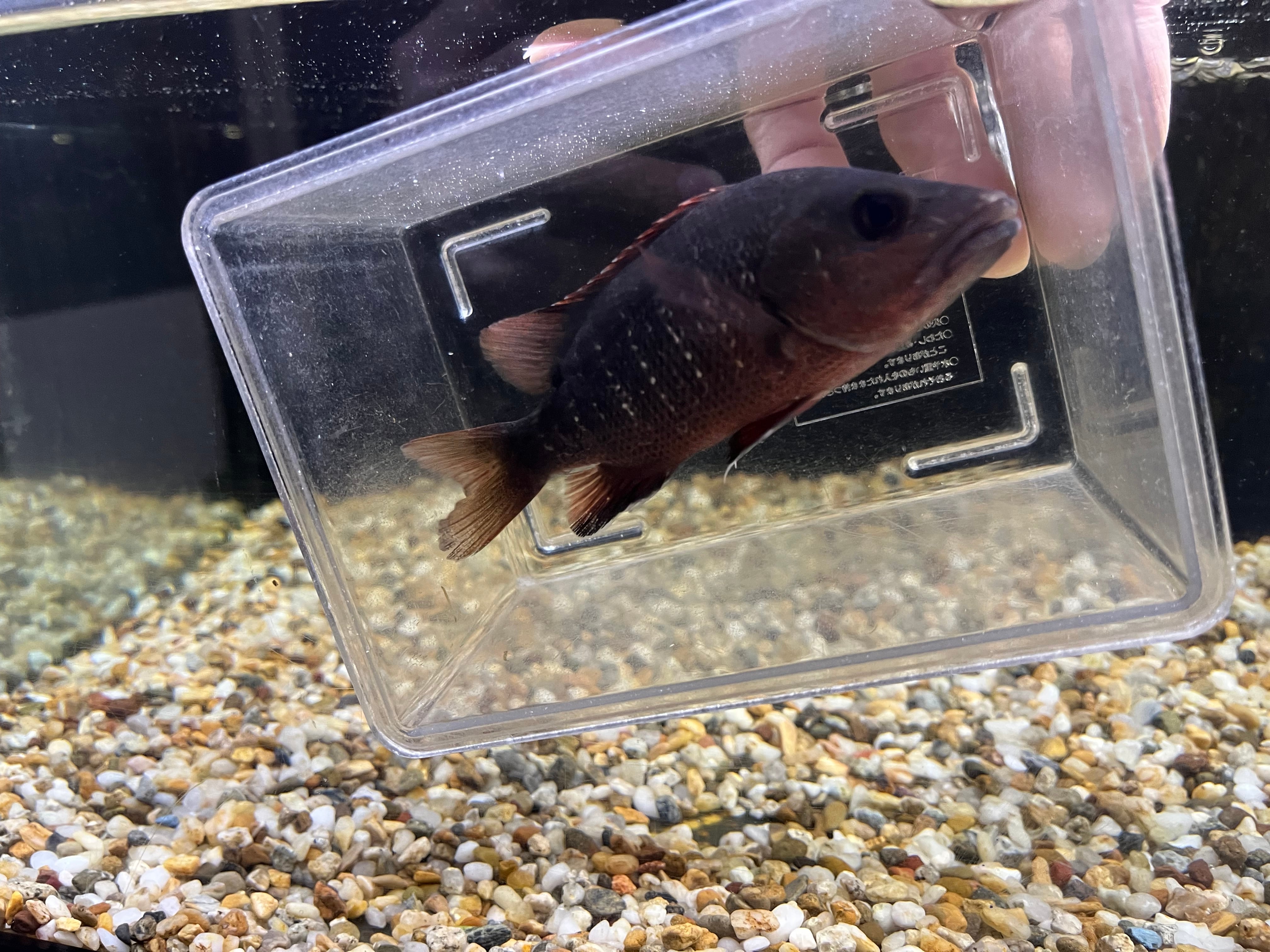 当店オリジナル四万十便で入荷した四万十川産ゴマフエダイです。現在のサイズは約10cm。