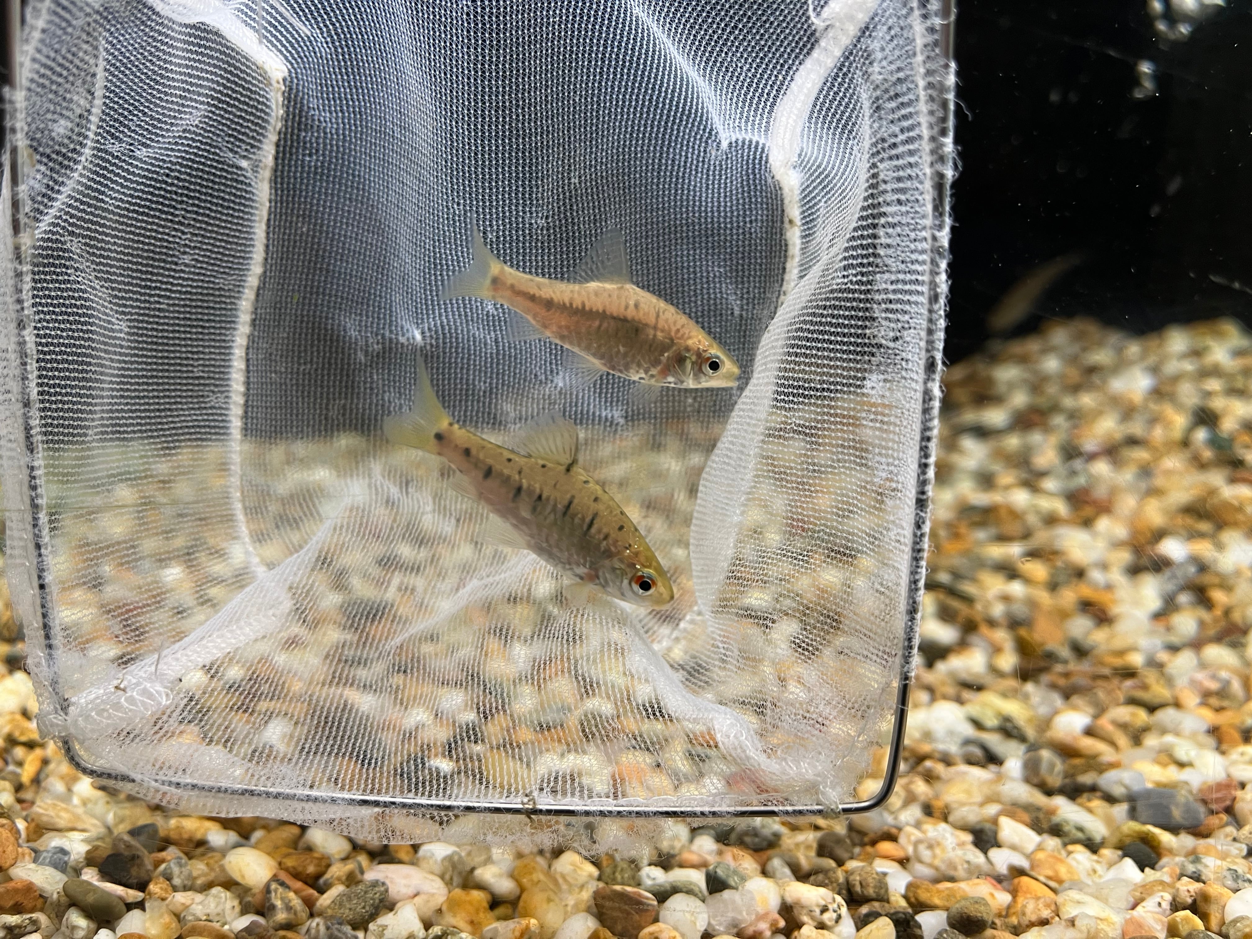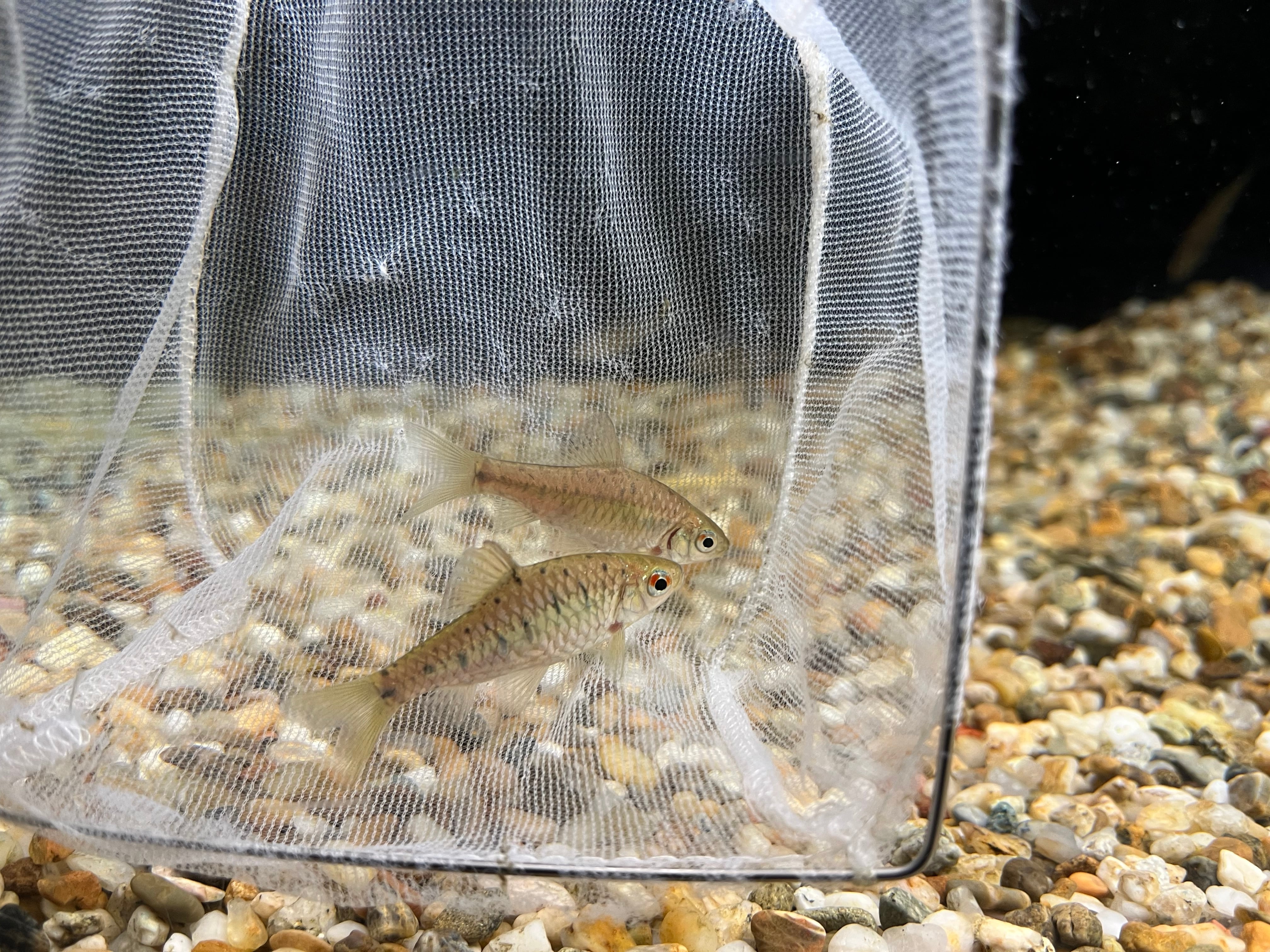 主に台湾やベトナムから輸入される小型バルブの一種。改良品種のゴールデンバルブのルーツとなった魚としても有名です。成長すると体側が名前の通りグリーンに染まり腹部が赤く色づく美種です。ゴールデンバルブに比べ入荷量は少なく珍しい魚です。