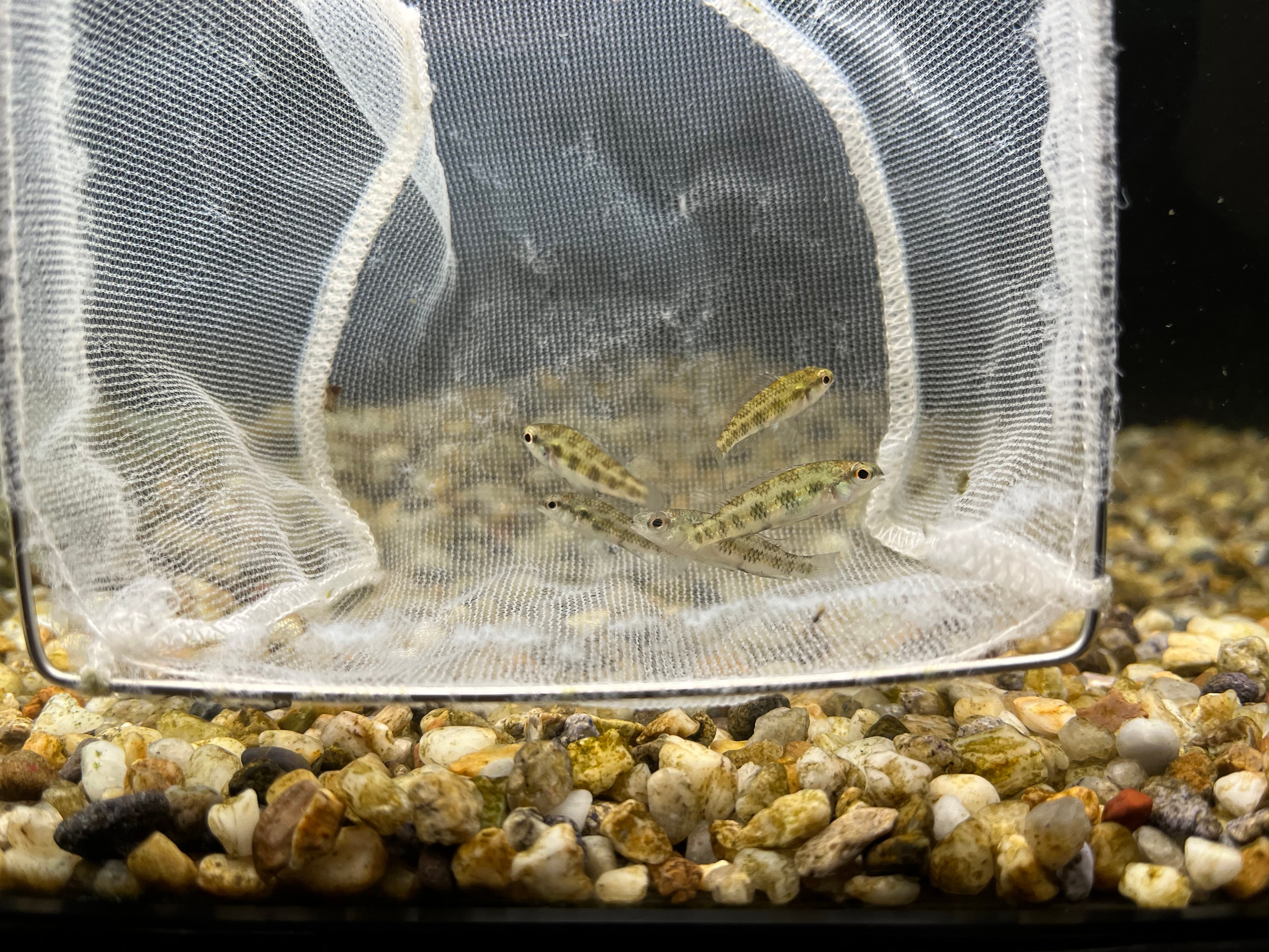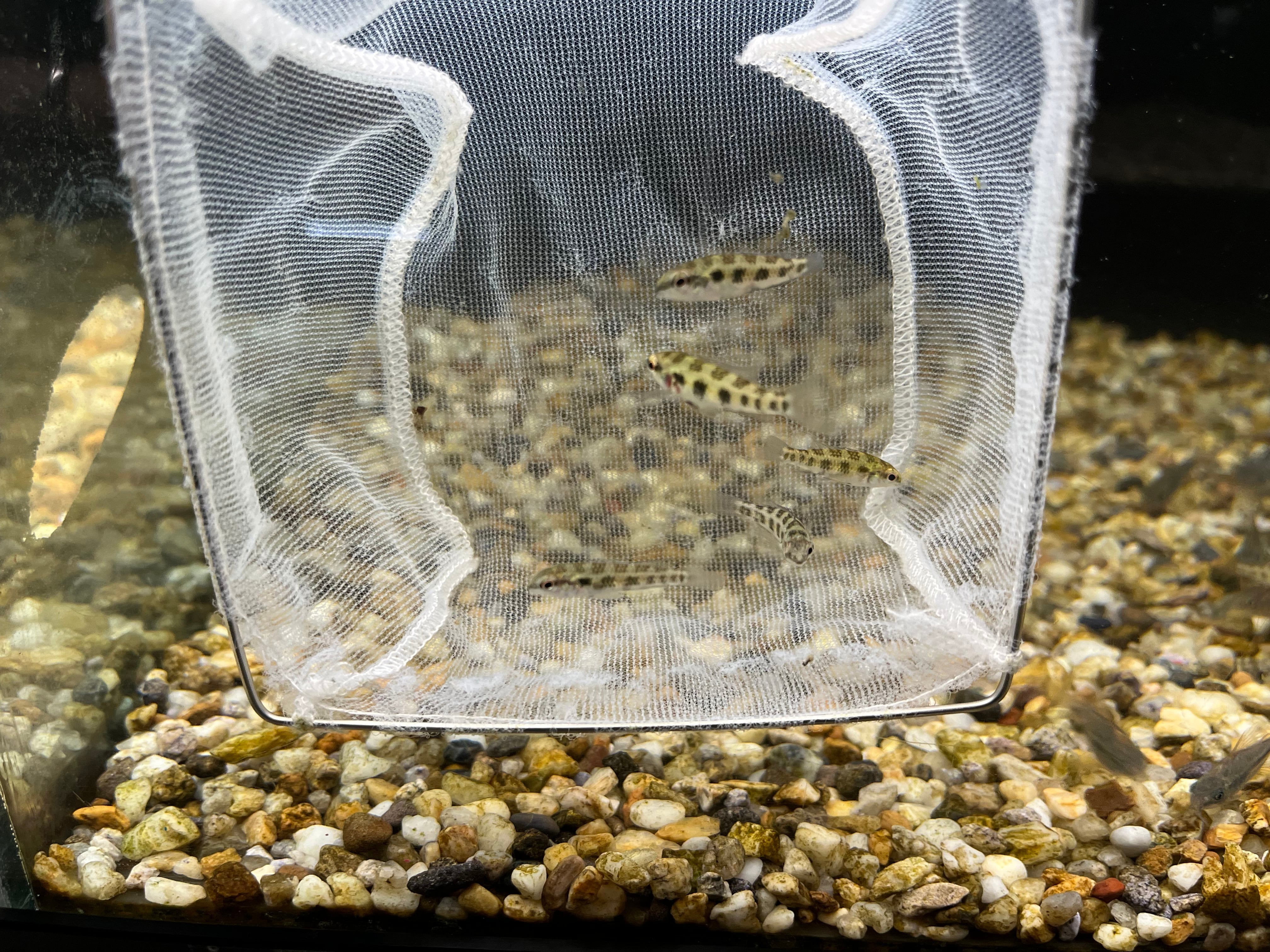 コロンビア便で入荷したチェッカーボードシクリッドです。現在のサイズは2-3cm。