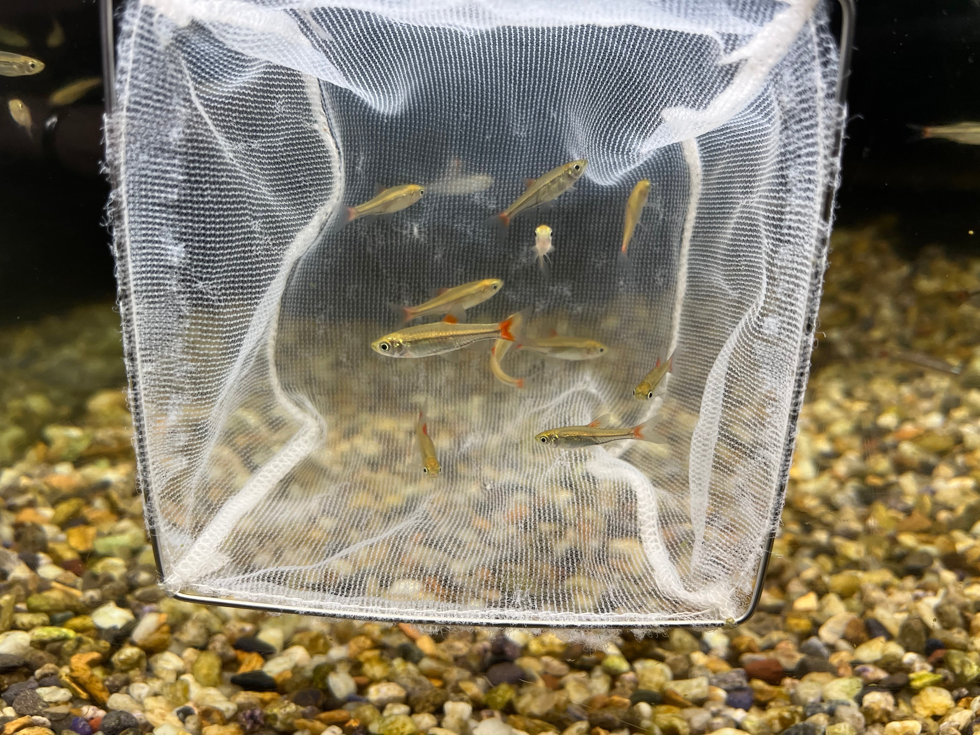 タイ便で輸入されるラスボラの一種。近似種のキンセンラスボラに非常に良く似ますが、背ビレも赤く色づく点で容易に判別できます。キンセンラスボラに比べ入荷量は少なく珍しい種類です。