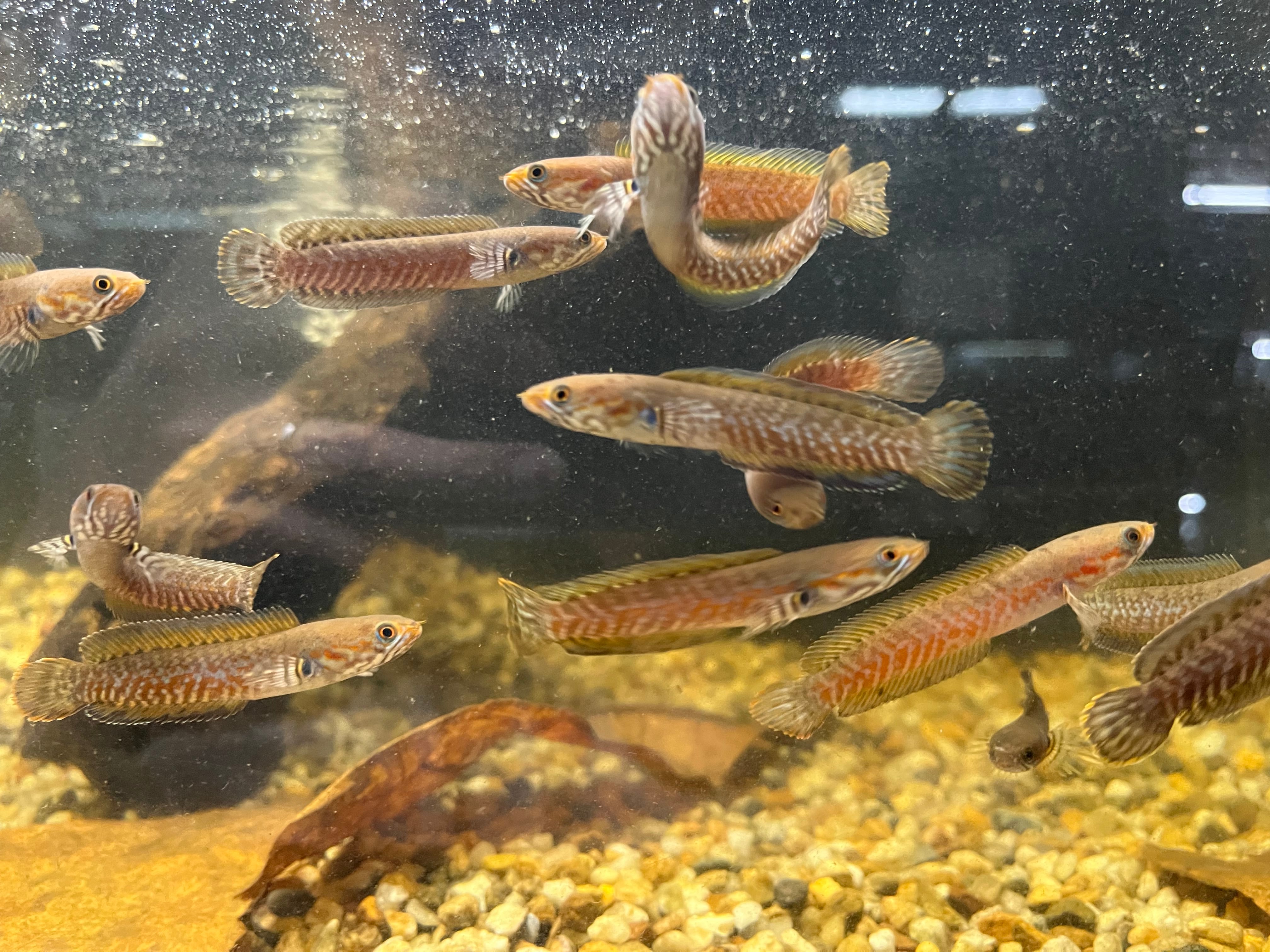アンドラオ(ブルー)の地域バリエーションと思われる個体群です。通常のアンドラオと比較すると明らかに体側に入る模様が赤く美しい種類です。ほとんど輸入される事はなく非常に珍しいタイプです。輸入インボイスはChanna.spであるため亜種もしくは別種の可能性もあります。在庫内に限りオスメスの選別も対応します。ただし100%を保証するものではありませんので予めご了承ください。