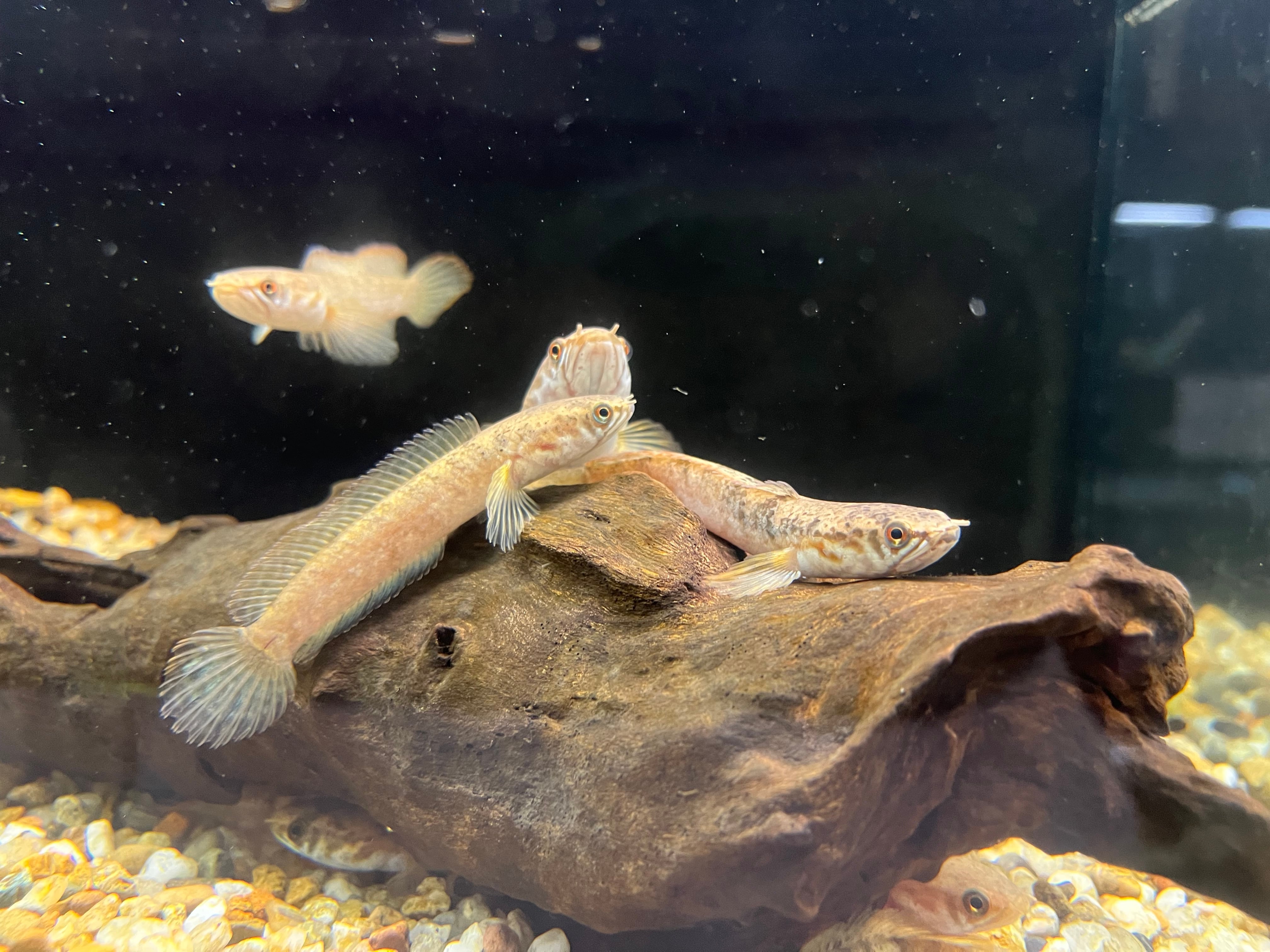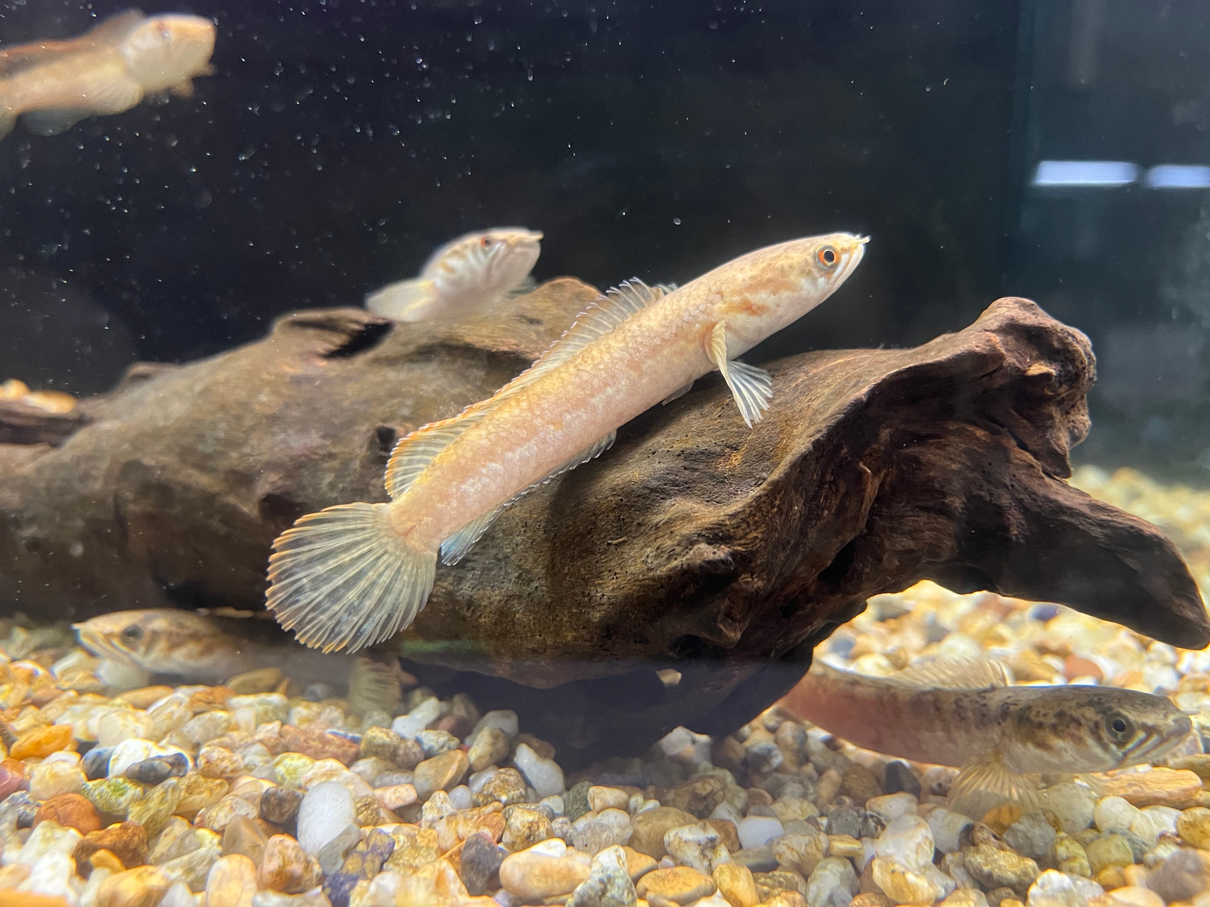 以前はドワーフスネークヘッドに混じって入荷する程度で見かける機会の非常に少ない種類でしたが近年はシーズンになるとまとまって入荷されるようになりました。それでもまだまだ目にする機会の少ない珍しいスネークヘッドと言えます。普段は地味な印象ですが、発色するとヒレのエッジがオレンジ色に染まりシンプルながら美しい色合いを見せてくれるスネークヘッドです。