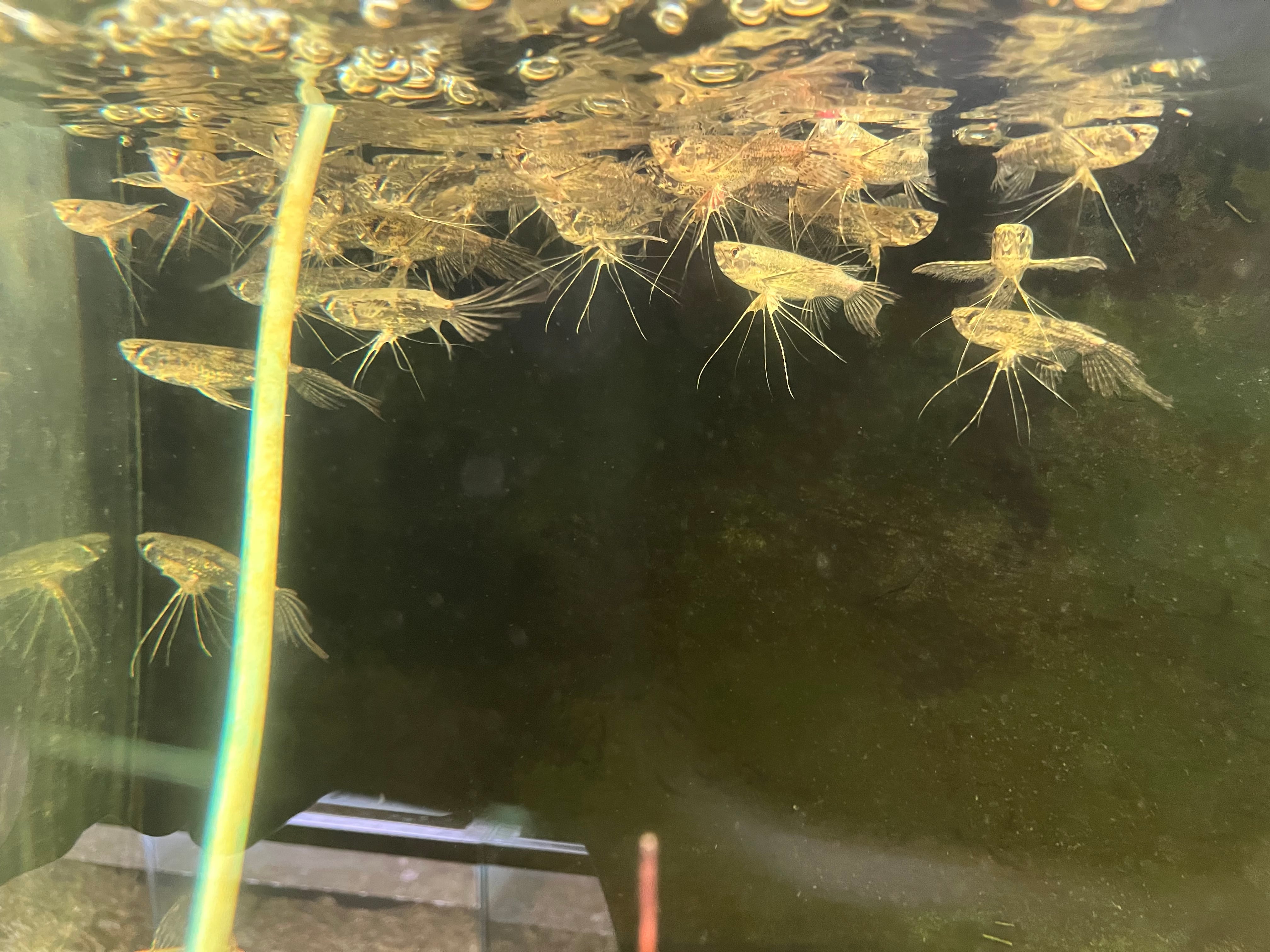 アフリカに生息する古代魚の仲間で古くから観賞魚として輸入されます。南米に生息するアロワナに近縁な魚で、顔の形状や食性等もよく似ています。古代魚というわりに最大サイズも12cmとあまり大型化せず、小型水槽でも飼育できることから高い人気を誇ります。よくジャンプをするので、水槽のフタは必須です。サイズが小さいためオスメスの判別はできません。