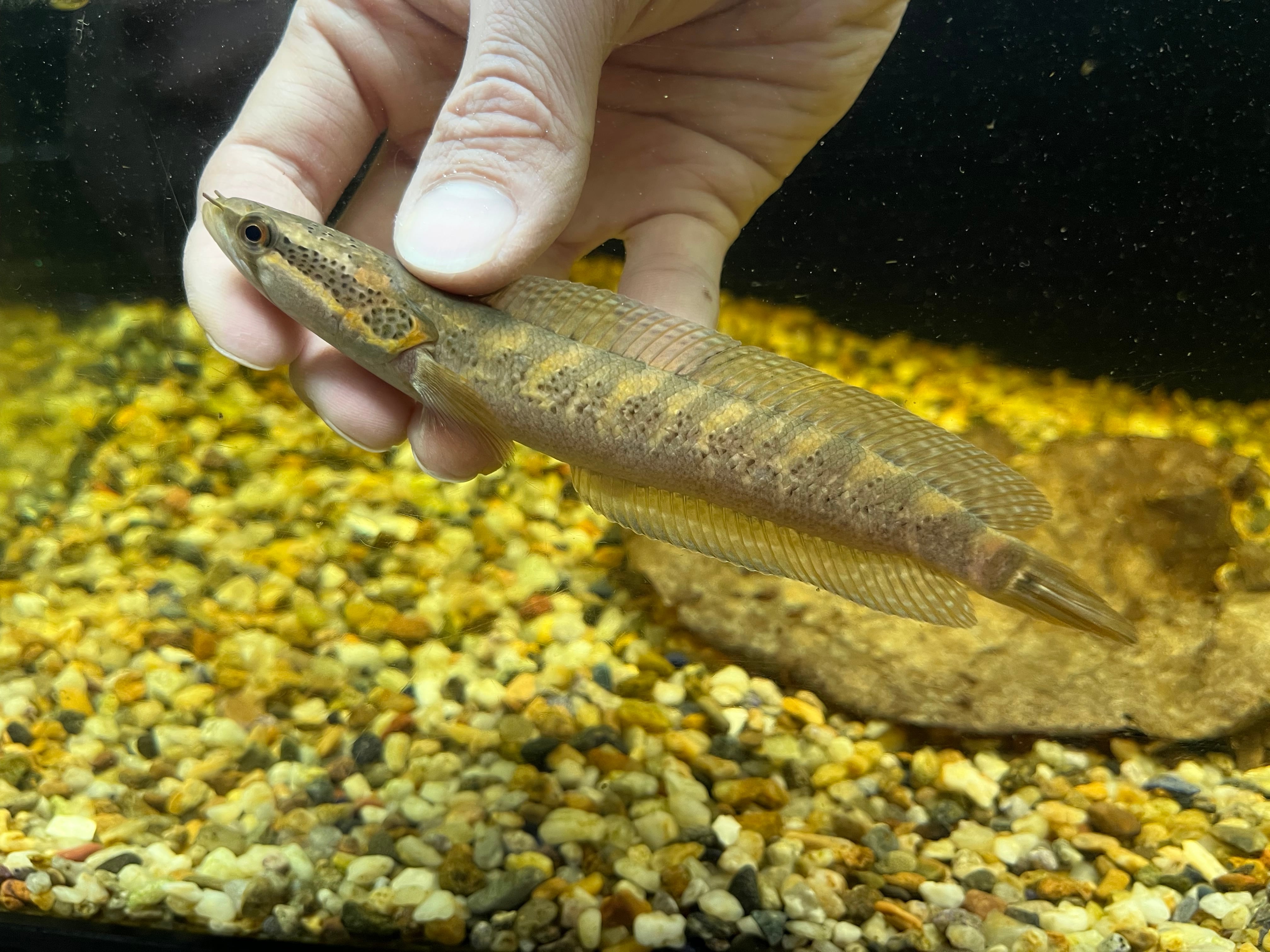 ナイジェリアから輸入されるスネークヘッドの一種です。名前は知られるものの、アフリカに生息する3種類のパラチャンナの中でも入荷量は少なく年に数回見かける程度です。オレンジ〜茶色ベースの体色に複数入るバンドとのコントラストが美しい人気種です。よくジャンプをするため水槽のフタはマストです。