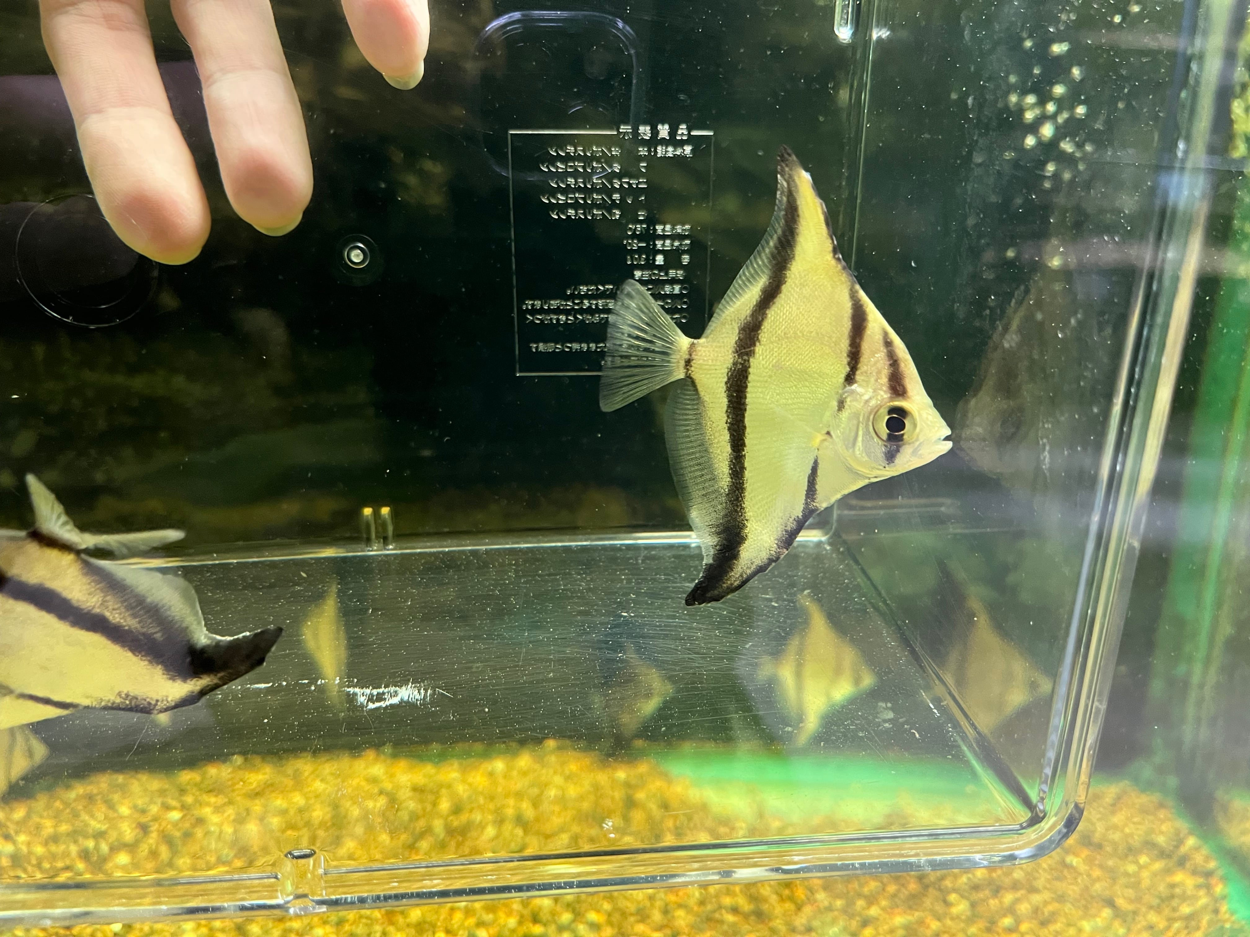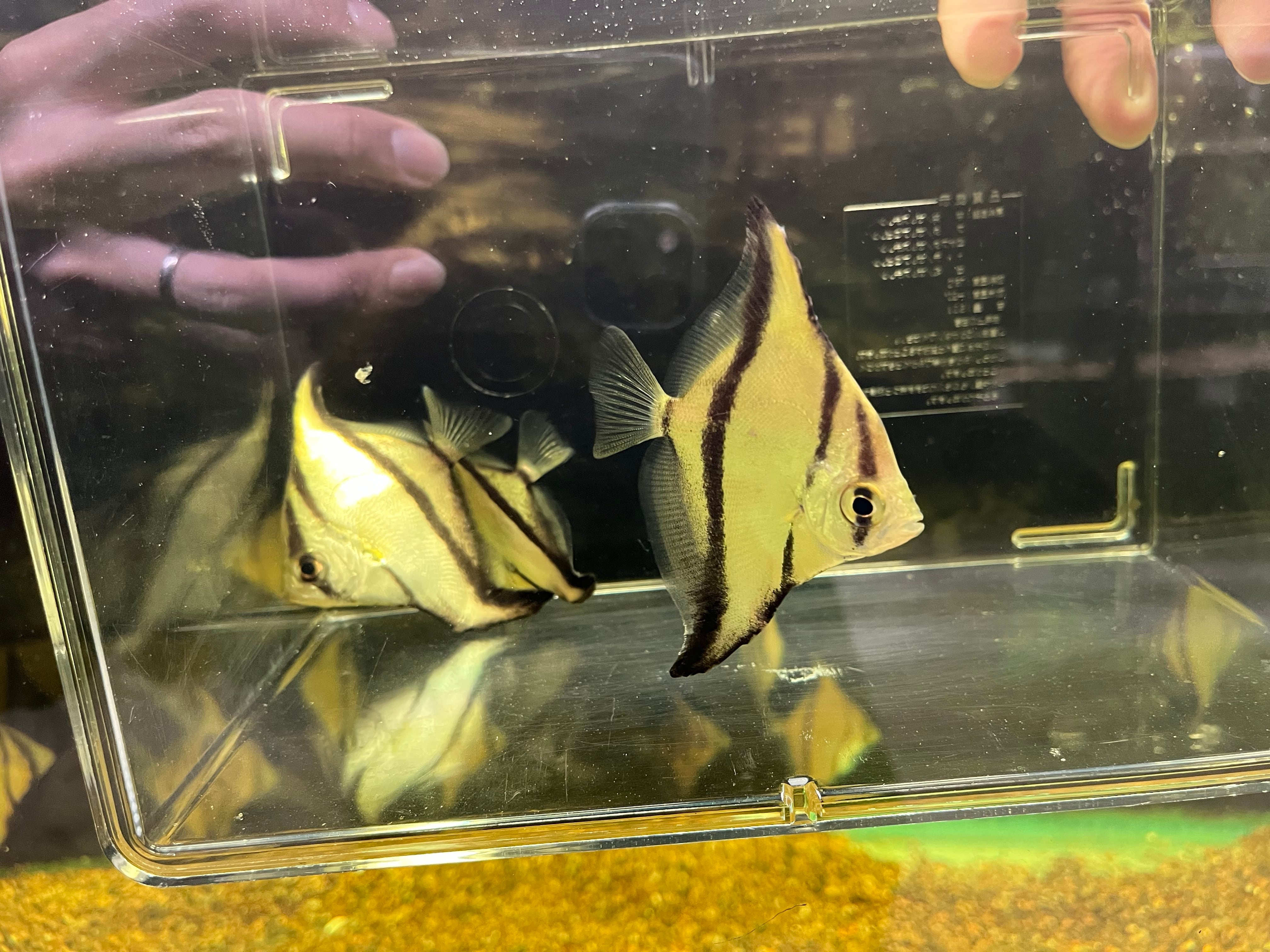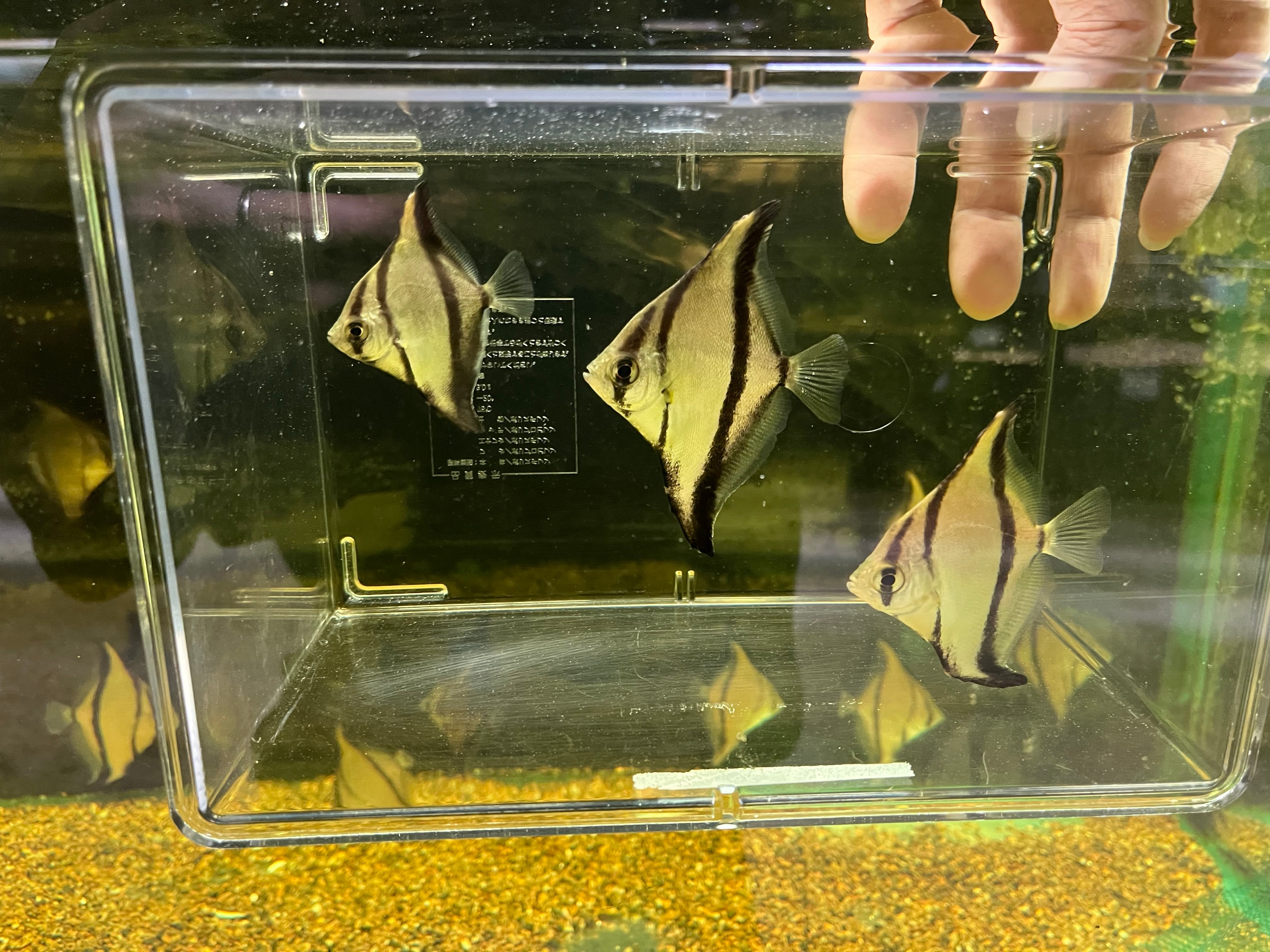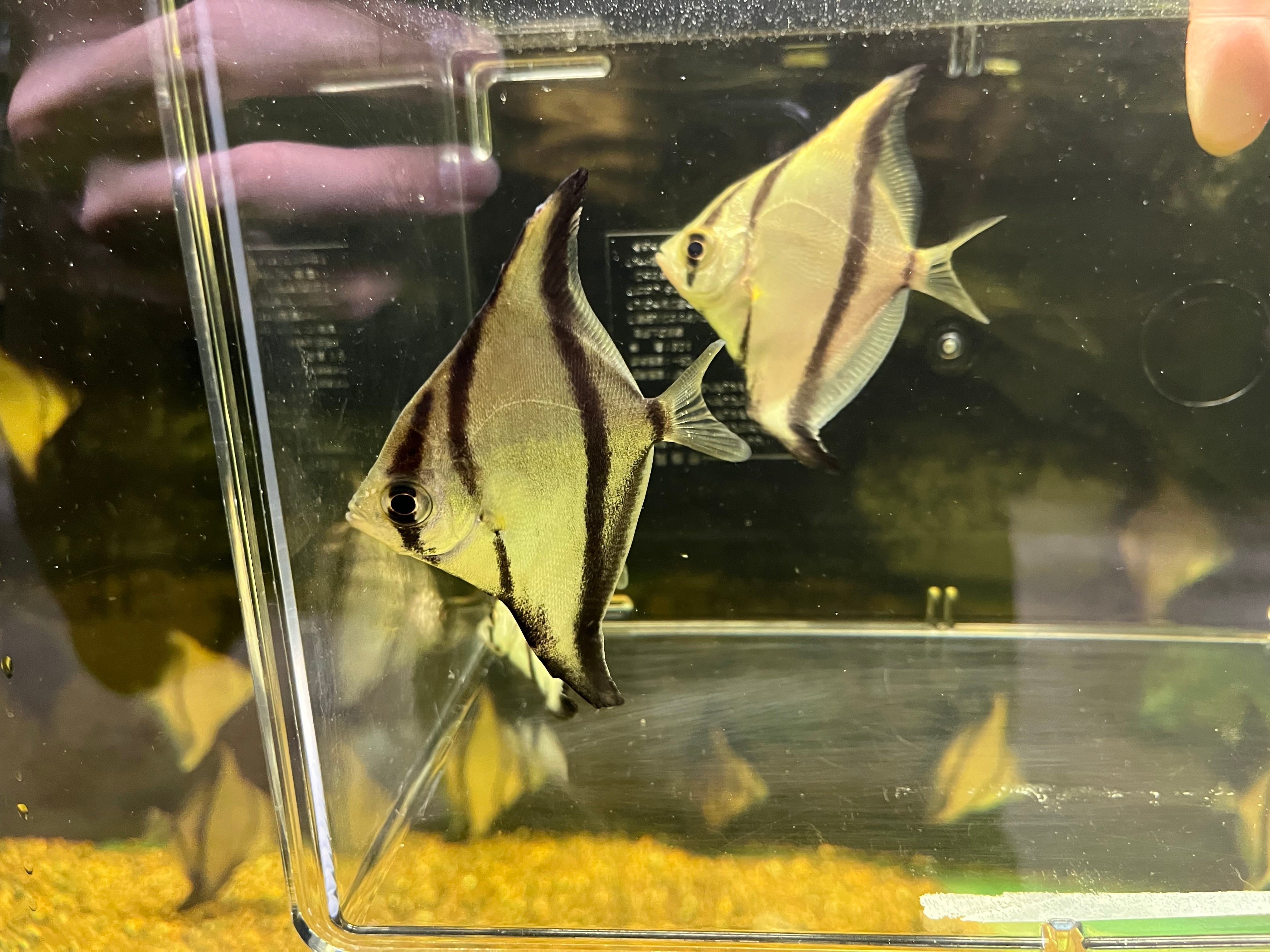 アフリカに生息しナイジェリアから輸入されるモノダクの一種です。東南アジアや日本に生息するアーゲンチウス種(汽水〜海水)と異なり、セバエ種は純淡水飼育で全く問題ありません。現在流通するセバエ種のほとんどは東南アジアで養殖されたブリード個体で、野生個体の流通は非常に少なく極めて珍しいと言えるでしょう。ブリード個体に比べヒレの長さやとがり具合が全く異なります。