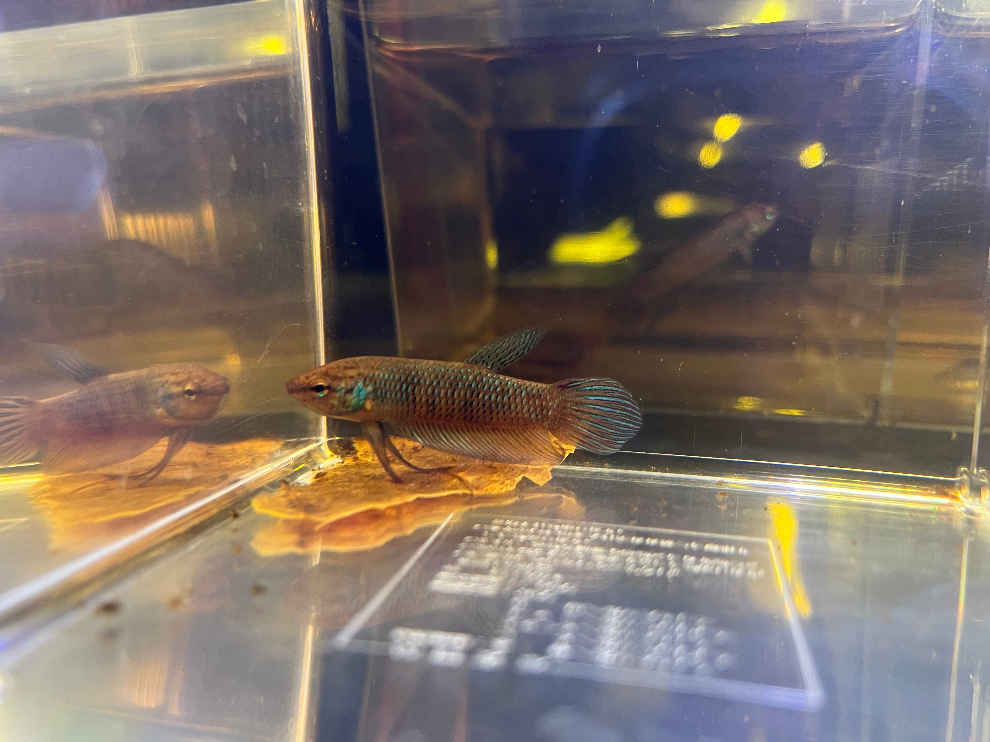 タイ便で入荷した野生のベタスマラグディナです。現在のサイズはオス約4cm、メス約3cm。