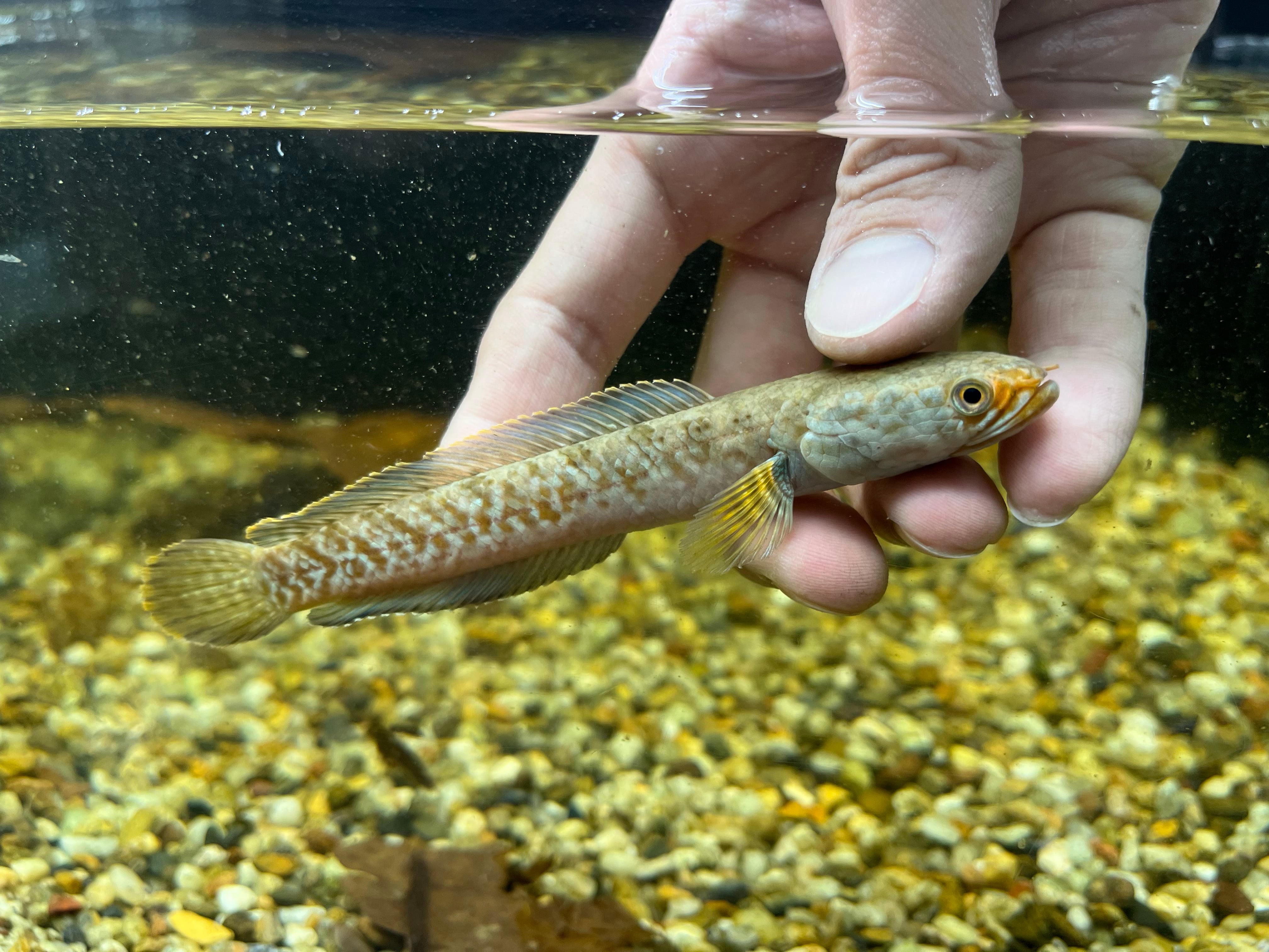 ミャンマー(旧ビルマ)北部に生息する固有種であることから、 Burma(ビルマ)を小種名にもつスネークヘッドです。2024年にブルマニカという学名が付くまではsp種として流通していましたが生息地の治安の関係もあり今でも入荷は少なめです。ヒレにはブルーが入り眼の前方に入る赤色が特徴的な美種です。