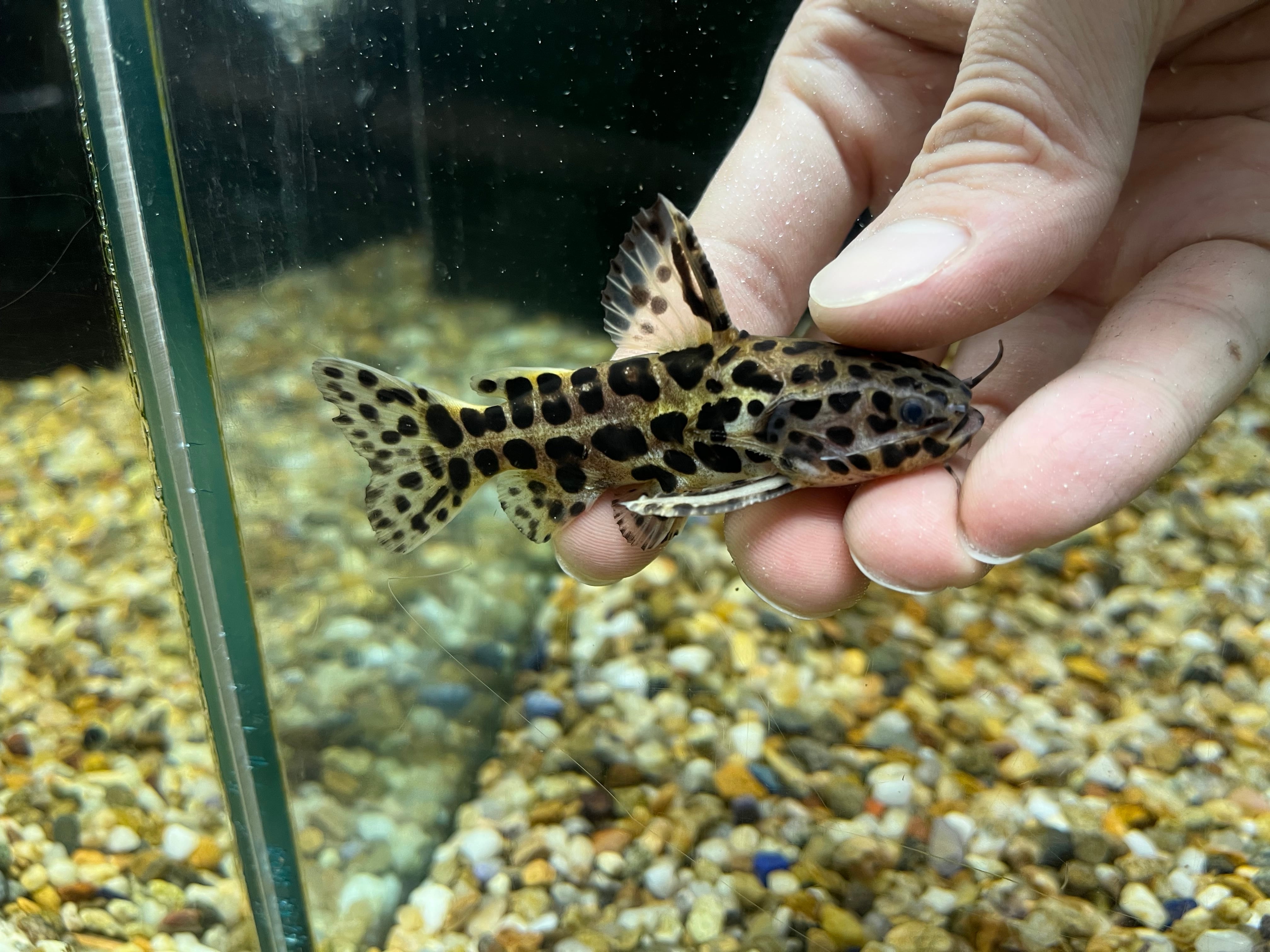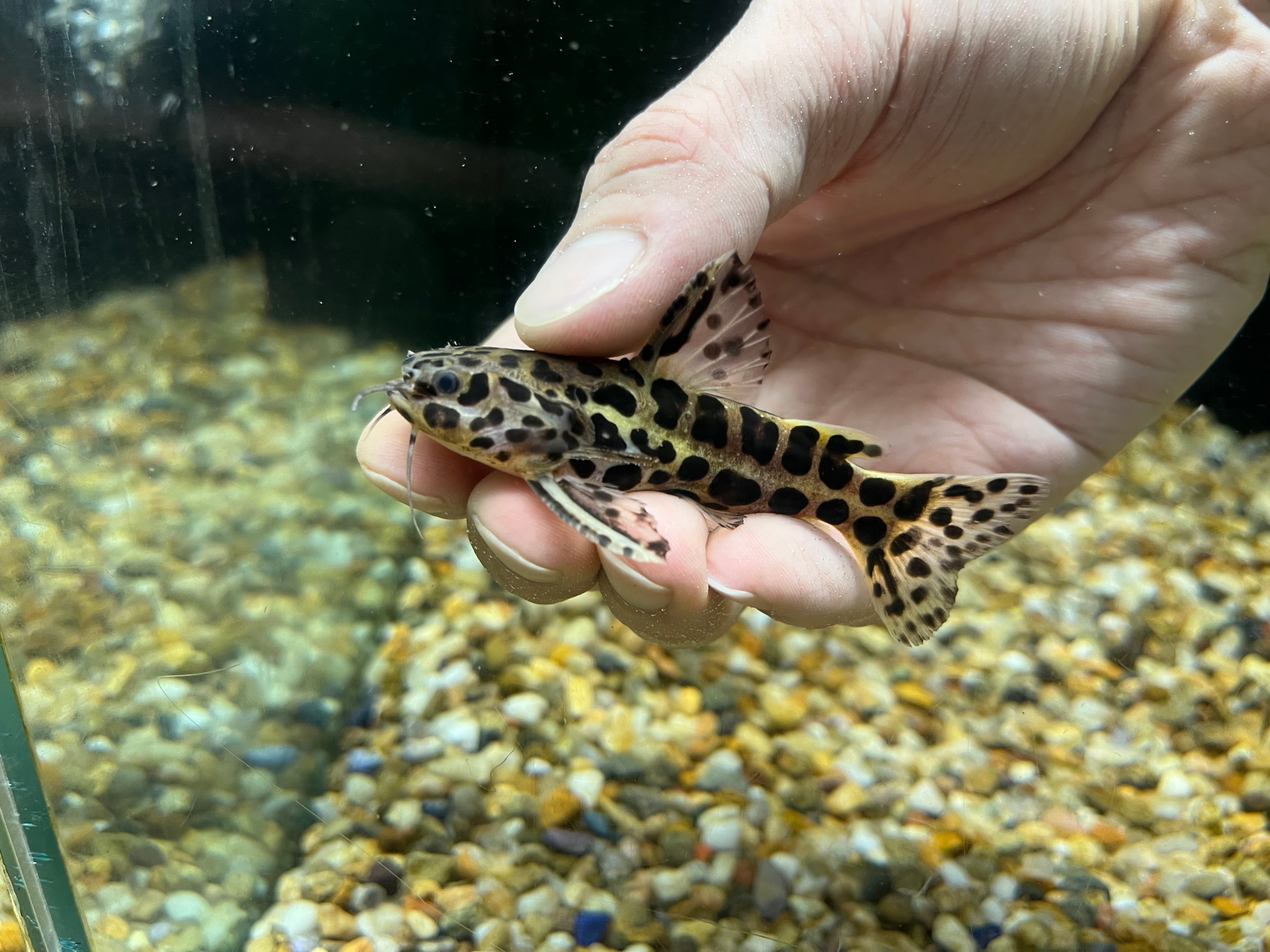 ブラジルから輸入される中型ナマズで、体表にはいる豹柄模様が美しく特徴的な種類です。スカイブルーキャットの呼び名もあり、古くから高い人気を誇ります。以前は比較的コンスタントに輸入されていましたが、近年は輸出規制の影響もあり輸入量は年々減少しています。