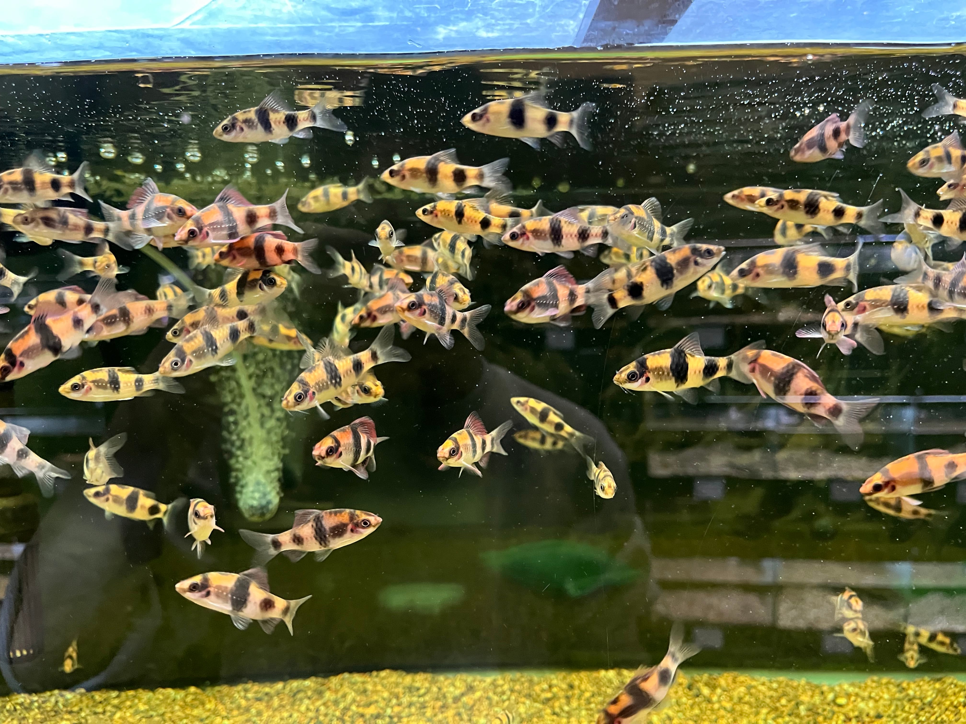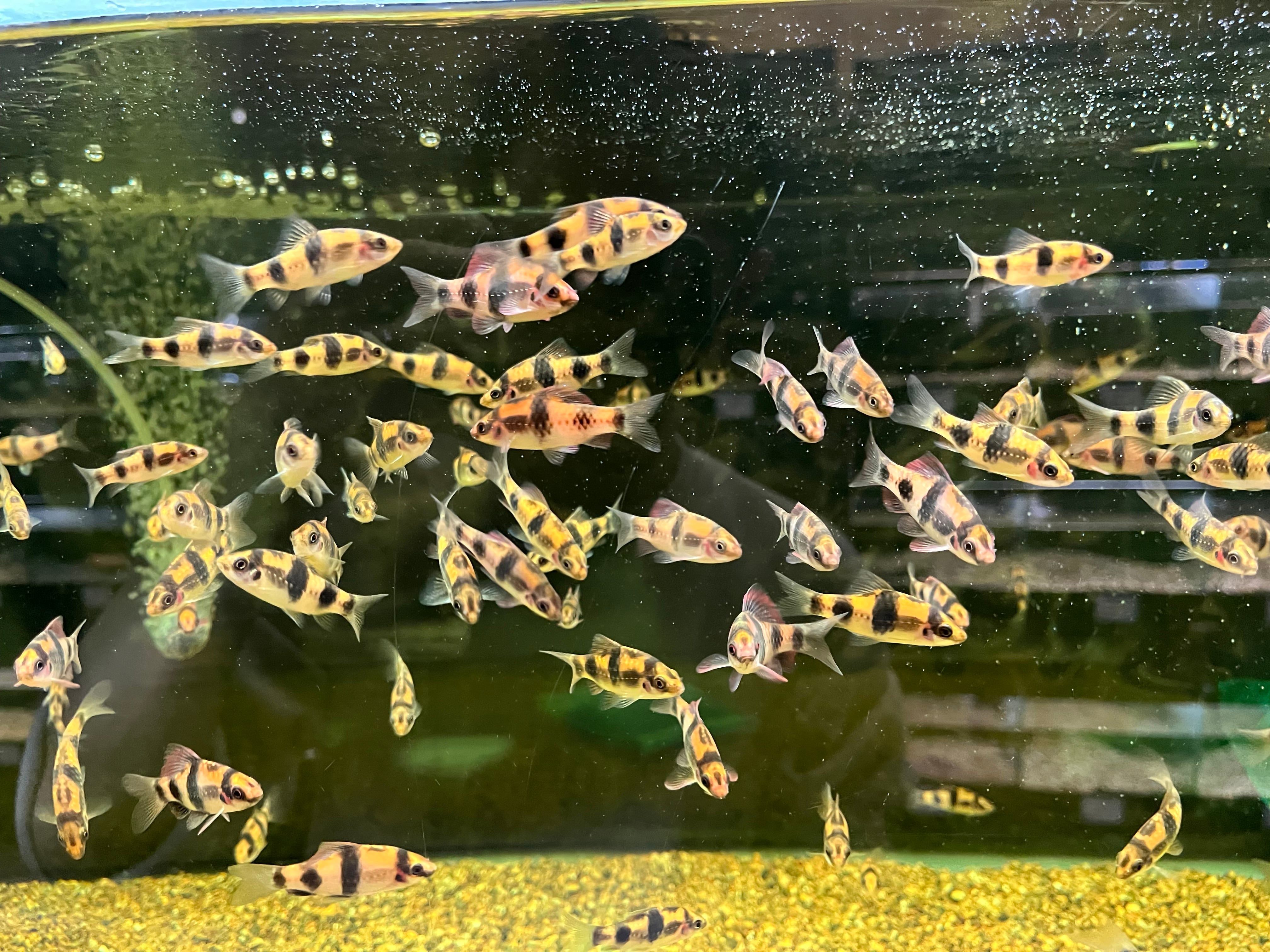インドから輸入される小型バルブのポピュラー種。主に東南アジアブリードが流通しますが、今回はインドより輸入した野生採集個体です。成熟したオスは鮮やかなピンク色に染まり美しくなります。非常に俊敏に泳ぎ回るため見ていて飽きのこない魚です。とても素早いためサイズやオスメスの指定は不可。