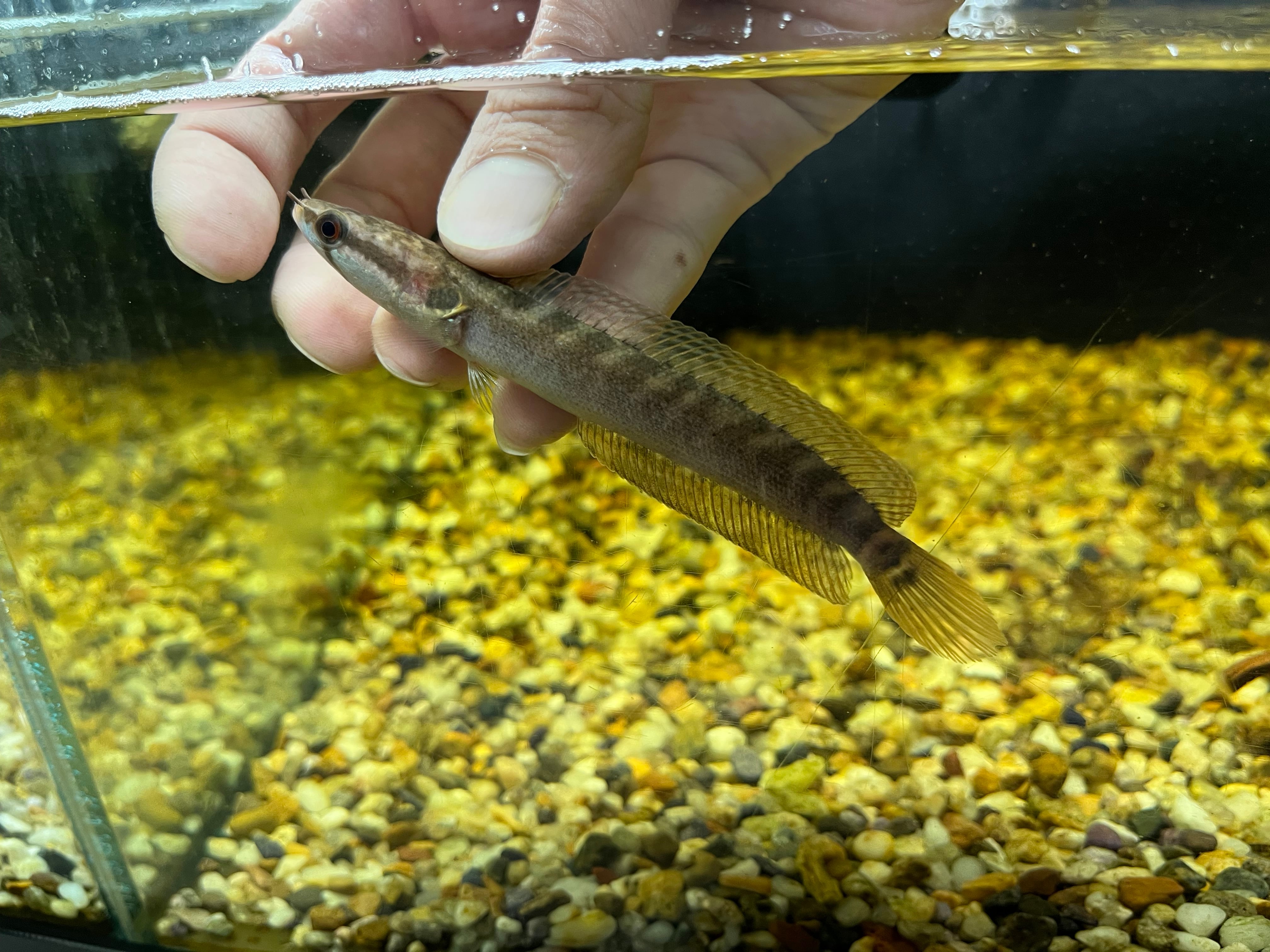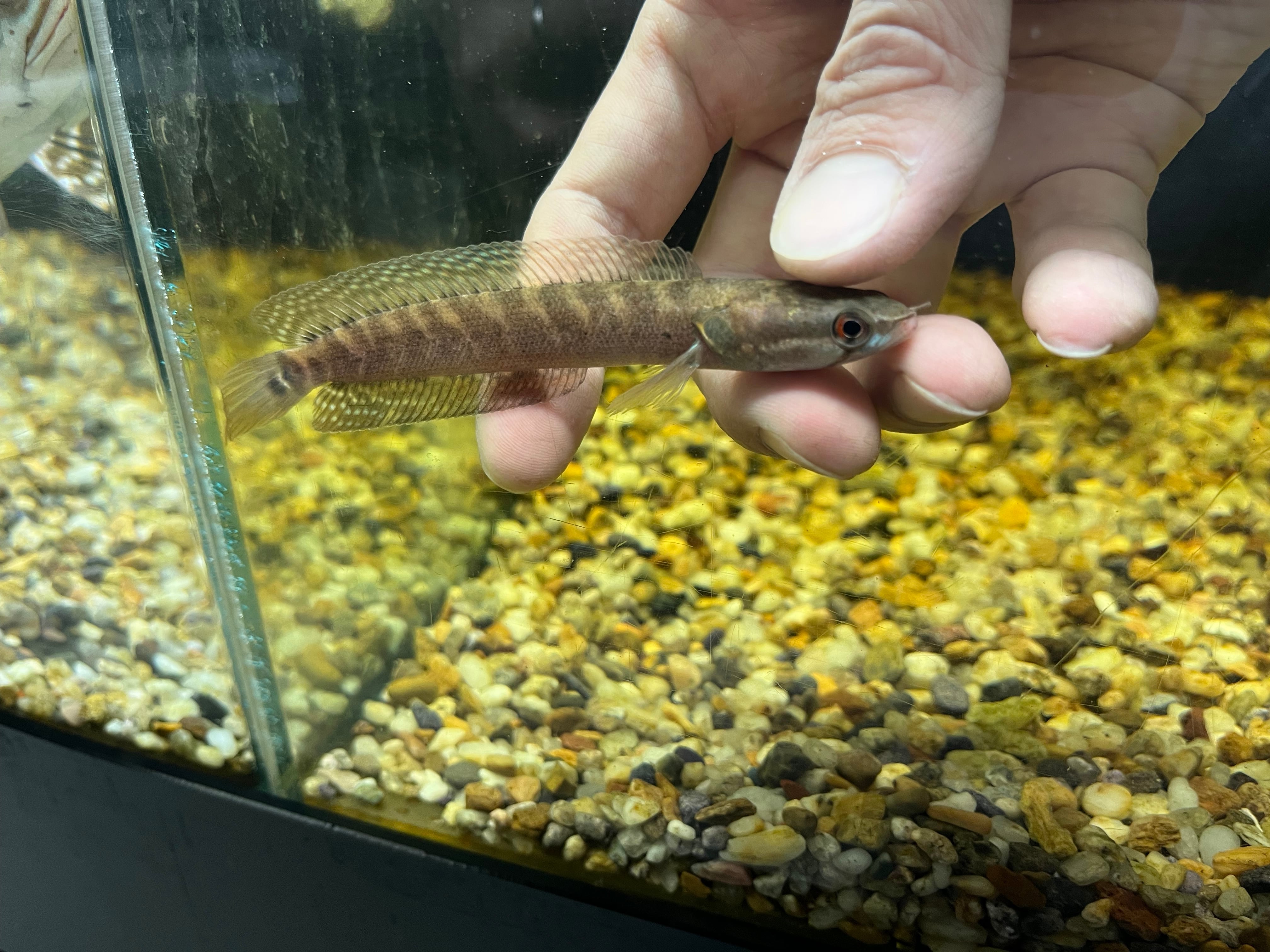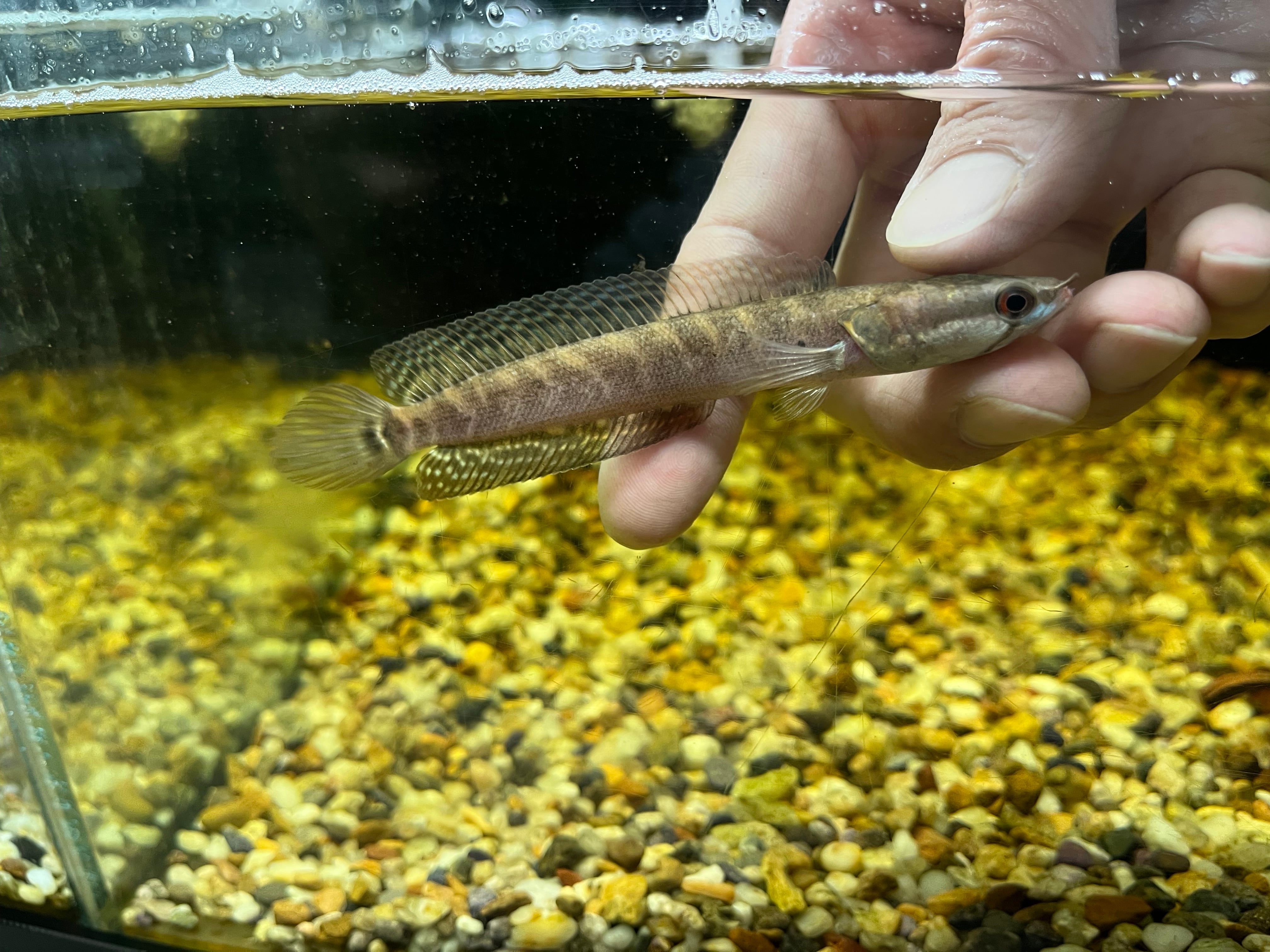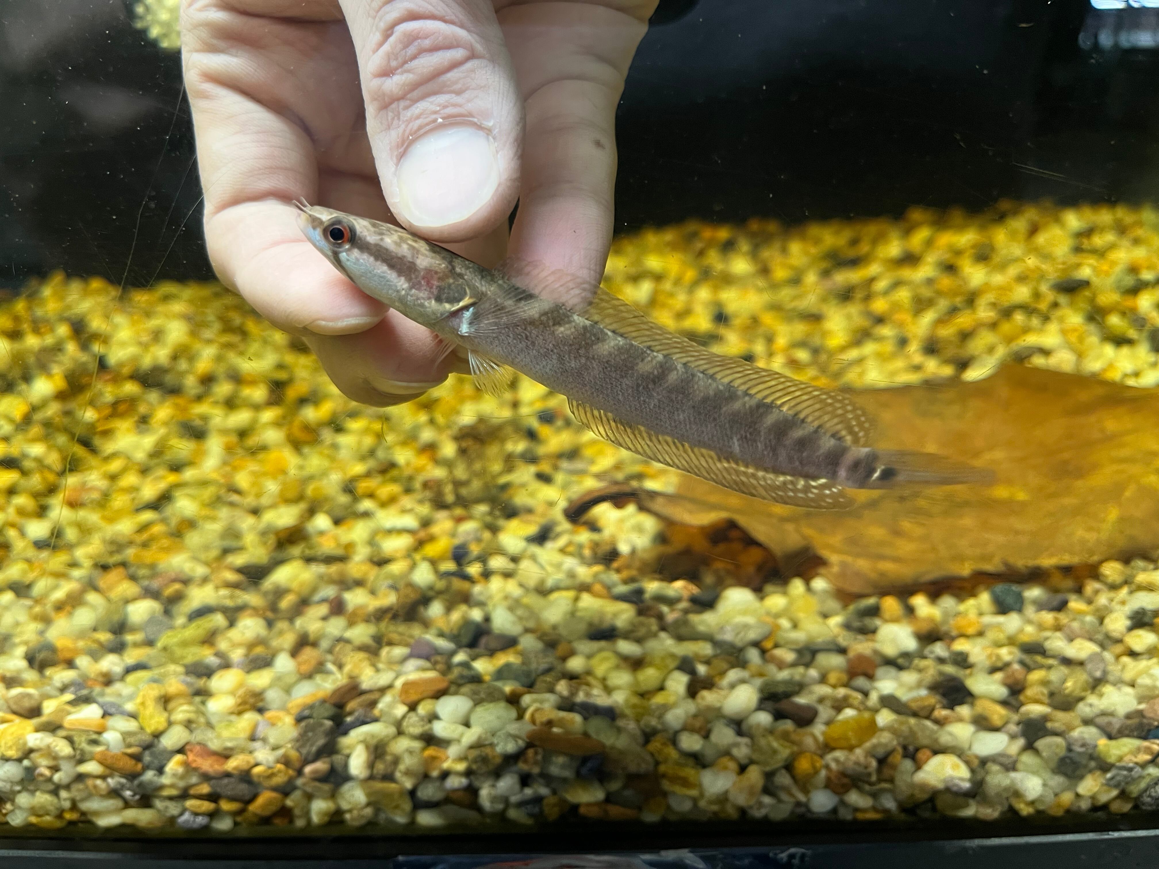 ナイジェリアから輸入されるスネークヘッドの一種です。名前は知られるものの、アフリカに生息する3種類のパラチャンナの中でも入荷量は少なく年に数回見かける程度です。オレンジ〜茶色ベースの体色に複数入るバンドとのコントラストが美しい人気種です。よくジャンプをするため水槽のフタはマストです。