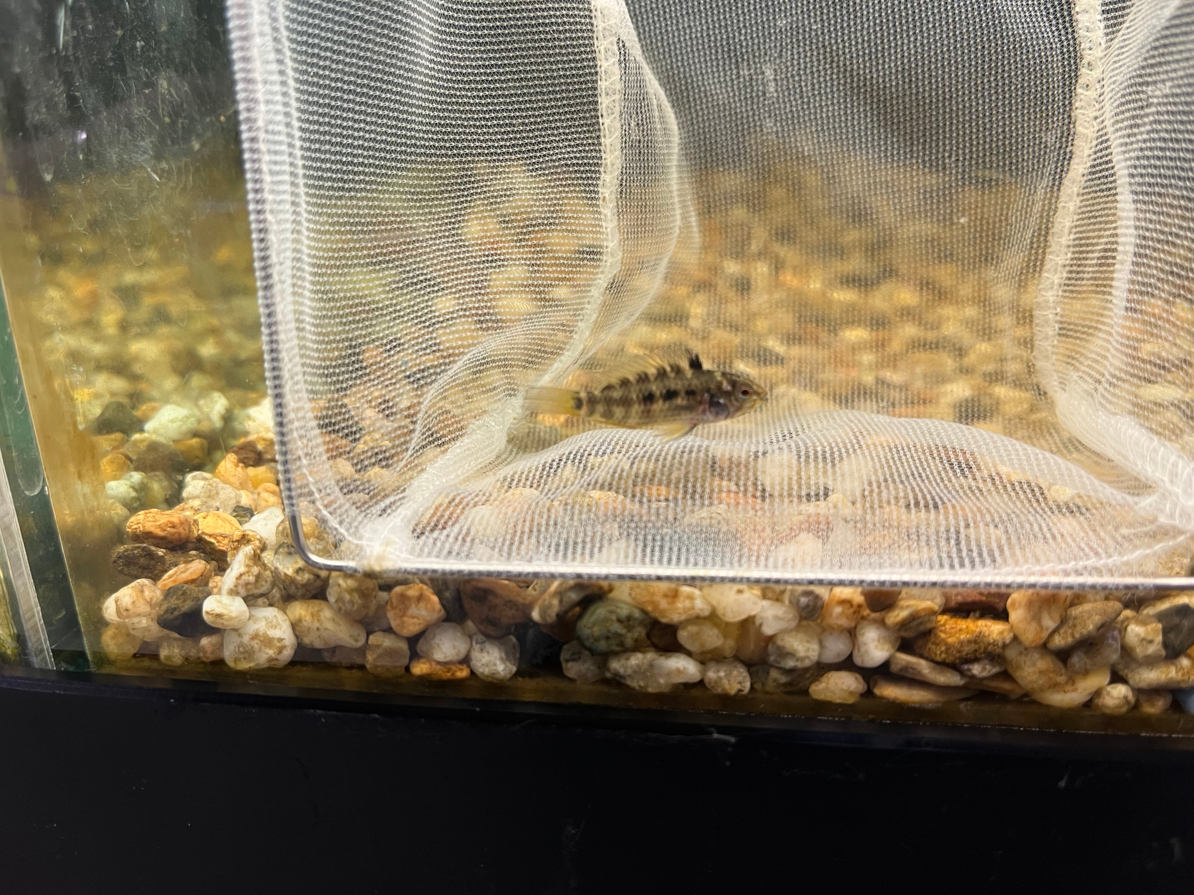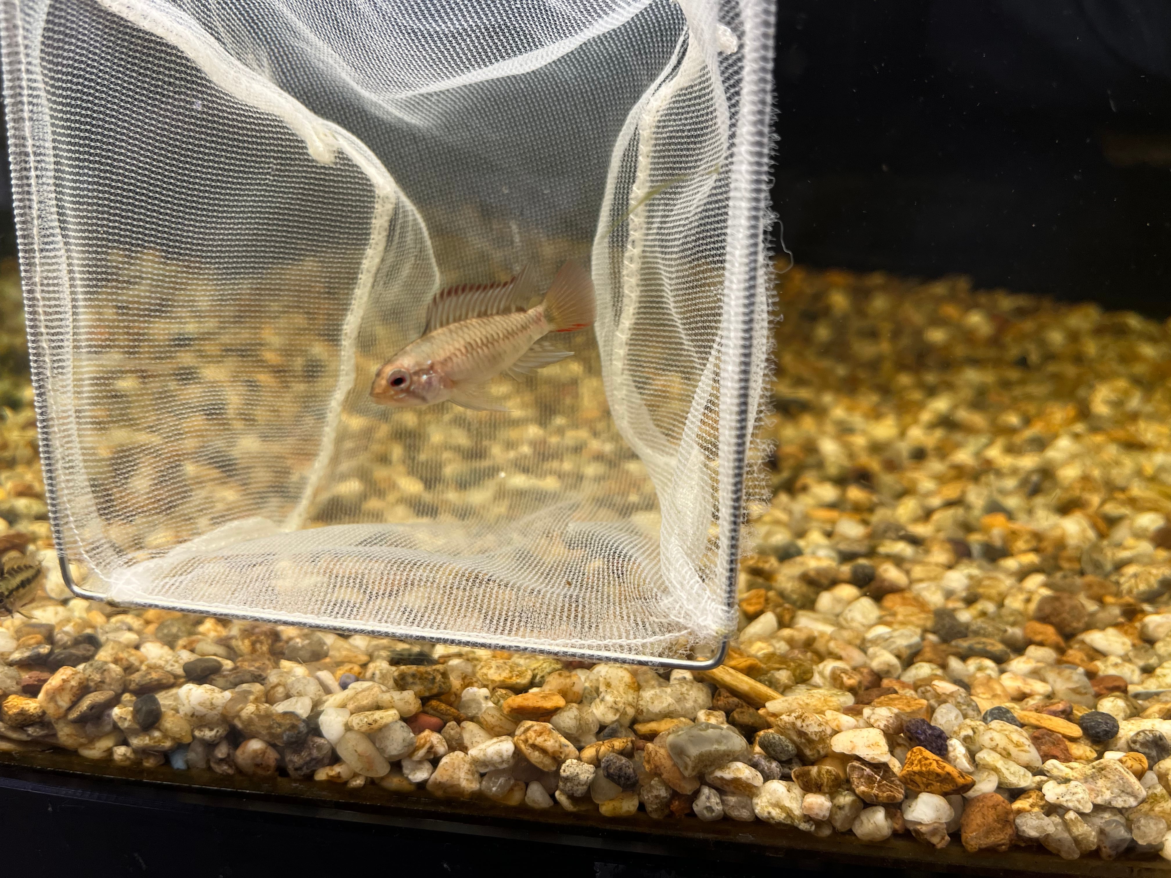 国内便で入荷したアピストグラマヴィエジタのCBです。現在のサイズはオス約3cm、メス約2cm。