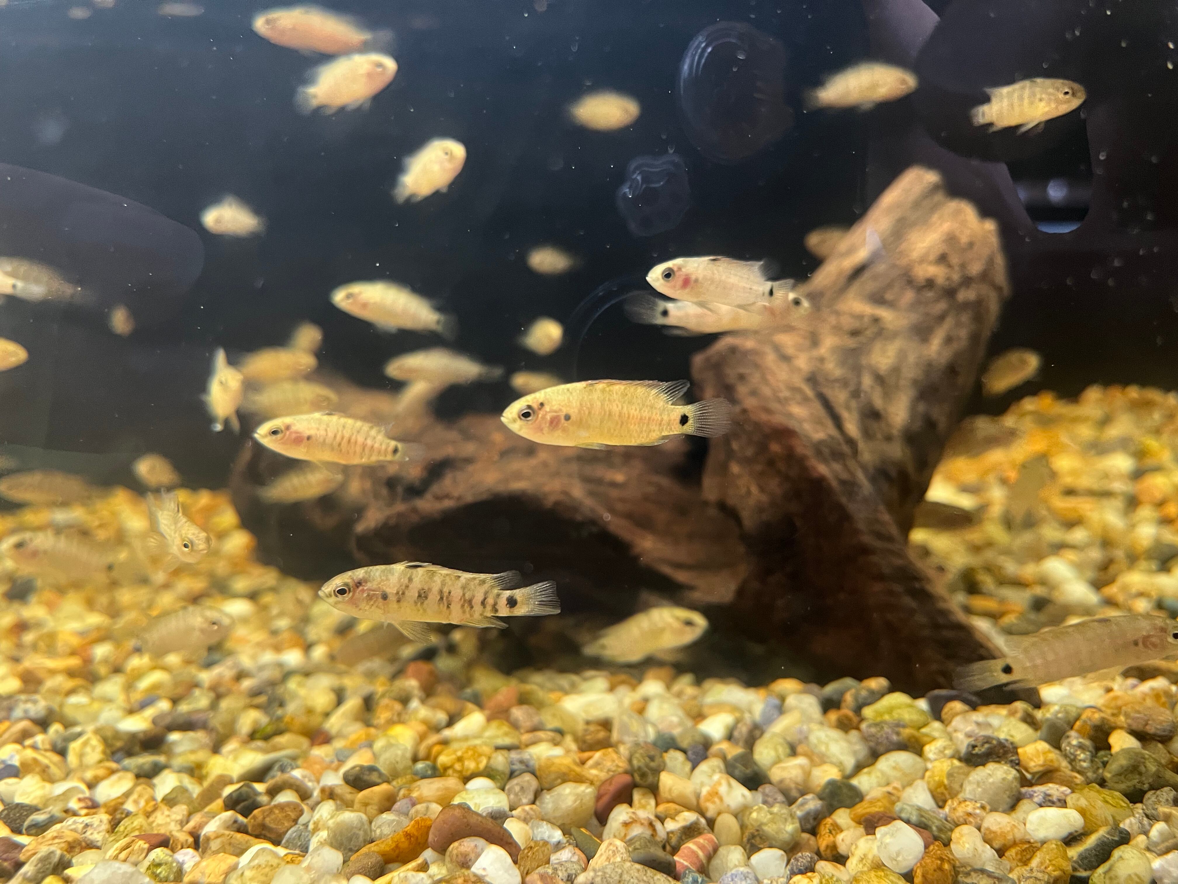 インドから輸入されるバジスの代表種。主に東南アジアブリードが流通しますが、今回はインドから輸入した野生採集個体です。気分や環境により体色が著しく変化することからカメレオンフィッシュの英名を持つことでも有名です。小さな巻貝を捕食する習性があるため、スネールキラーとしても重宝されます。