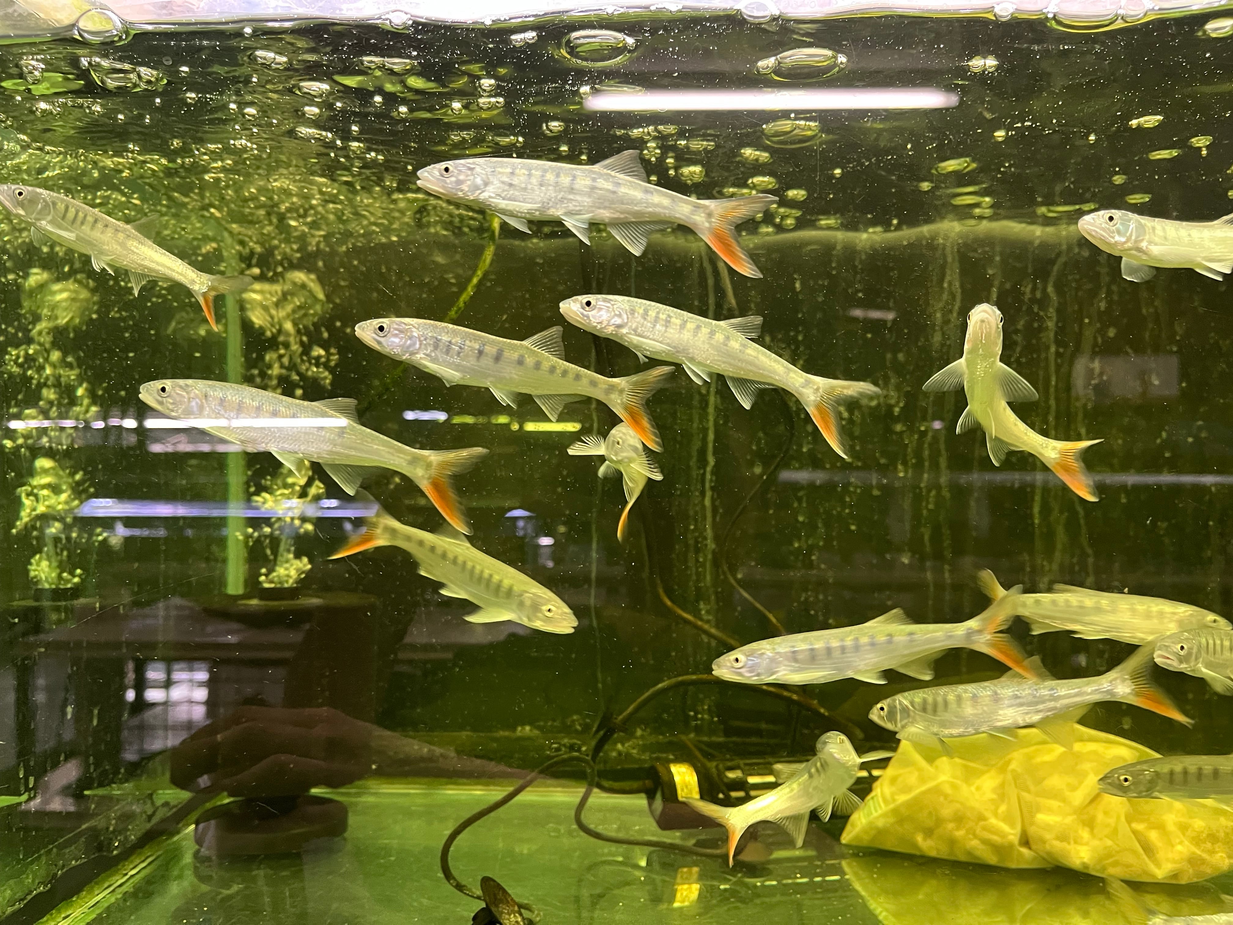 ナイジェリアから輸入されるライアマスの一種です。アフリカに生息するライアマスの中では最大種に位置付けされる種類です。適した飼育環境下では30cm近くまで成長することもあります。基本的に食性はフィッシュイーターであるため、口に入る小魚は全て捕食してしまいます。タイガーフィッシュによく似たフォルムをしているため人気の高い種類です。よくジャンプをするため水槽のフタはマストです。痩せているため難あり特価ですが、エサをしっかり与えれば回復します。