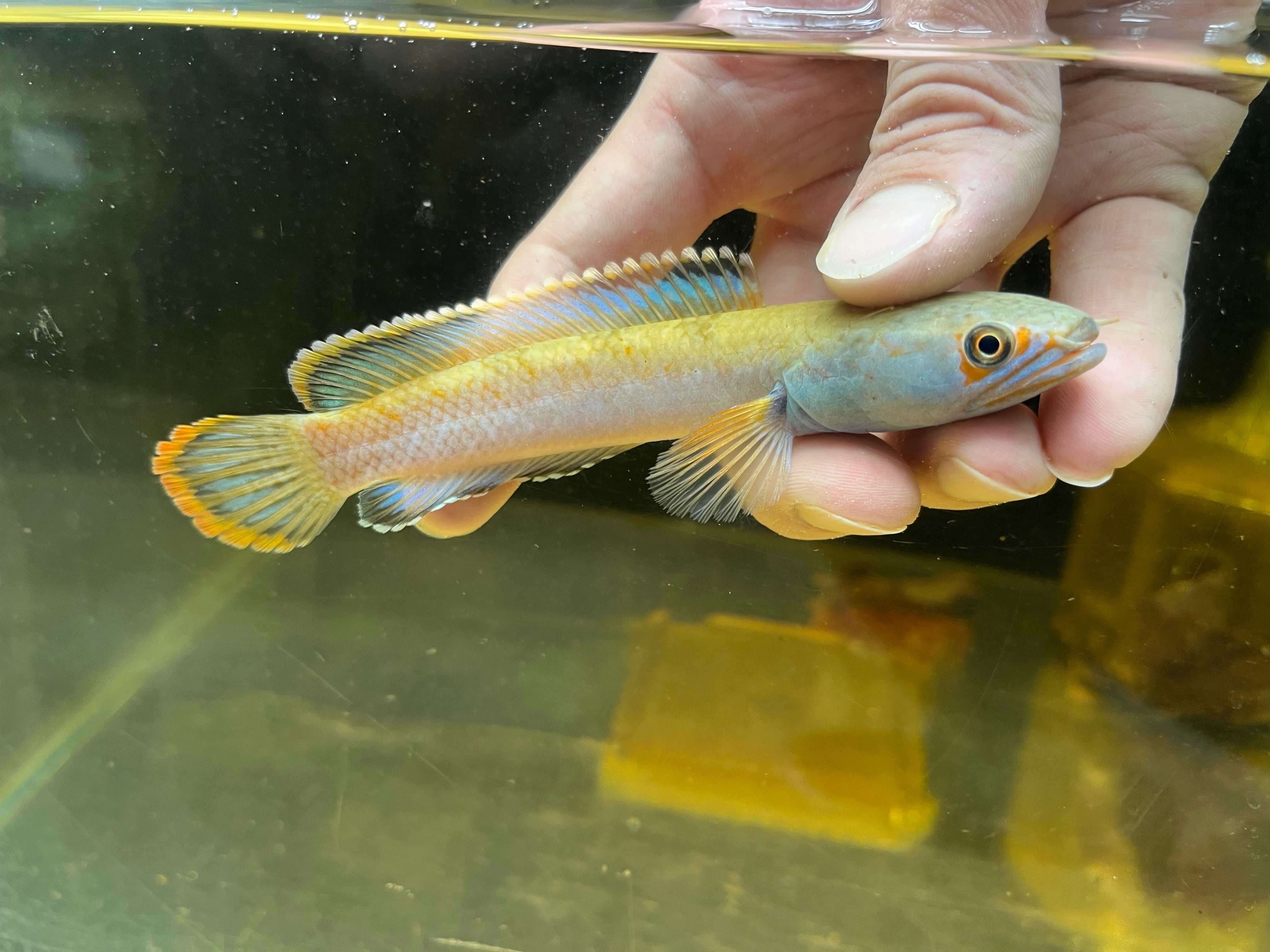 ミャンマーに生息するスネークヘッドです。ボディに入るメタリックブルーやヒレのオレンジエッジが美しく絶大な人気を誇るスネークヘッドです。また目の周りに入る赤い模様がカブキ役者の隈取に見えることからカブキの流通名もあります。発見から長らくsp種として扱われてきましが、近年の研究でチャンナフィロフタルムスと学名がつきました。