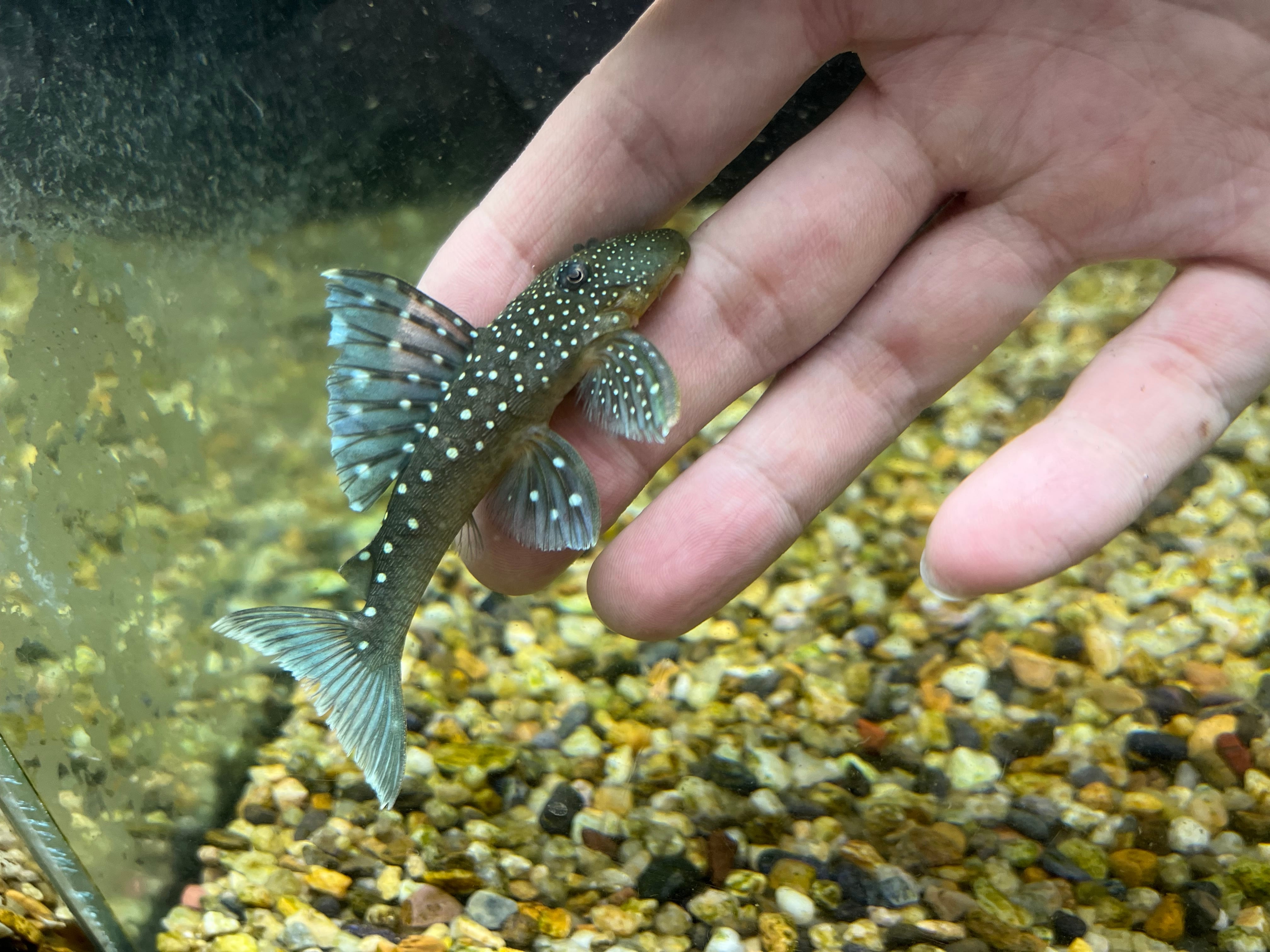 コロンビアから輸入される人気種。名前の通り鮮やかなブルーの体色を持つ美種。以前は比較的よく輸入されていましたが、最近では輸入量は減少傾向にあります。流木を入れておくと隠れたり齧って食べるので複数設置しておくと良いでしょう。