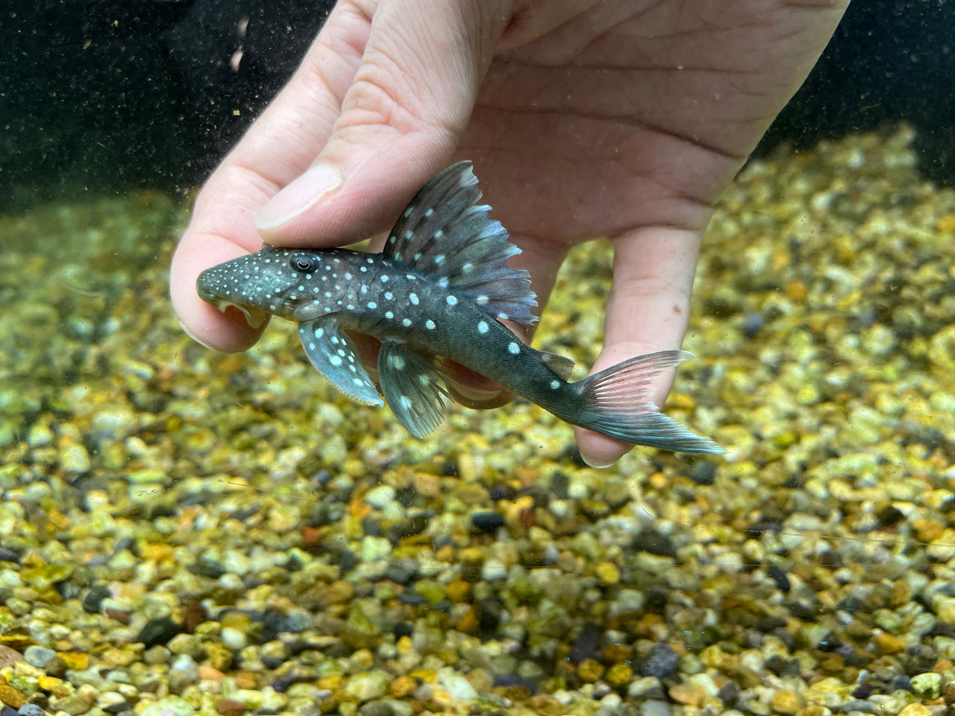 コロンビアから輸入される人気種。名前の通り鮮やかなブルーの体色を持つ美種。以前は比較的よく輸入されていましたが、最近では輸入量は減少傾向にあります。流木を入れておくと隠れたり齧って食べるので複数設置しておくと良いでしょう。