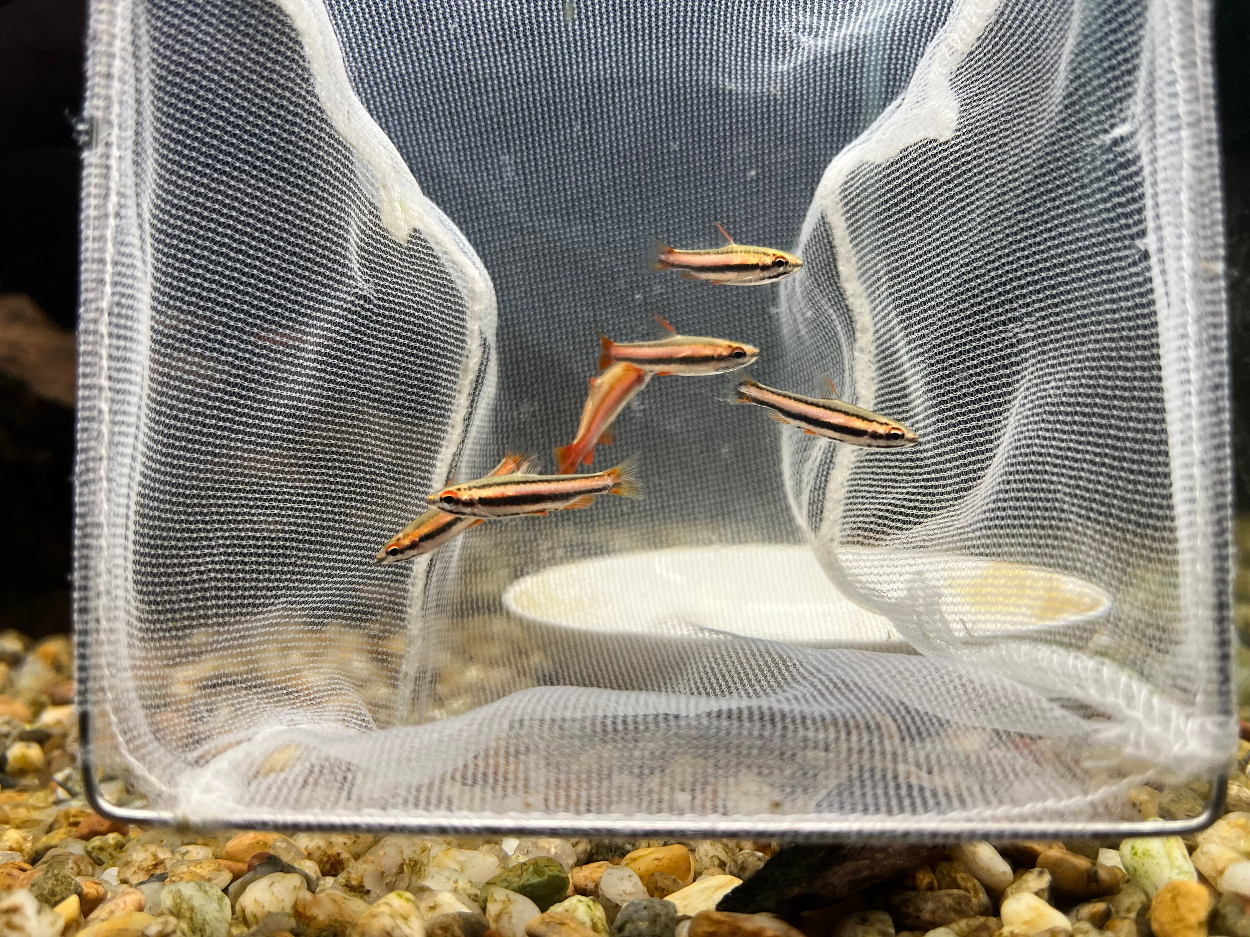 ペルー便で輸入されるペンシルフィッシュの一種で、アークレッドの名前の通り全身が濃い赤色に染まる美種です。まだ日本に紹介されて比較的日の浅い種類ですが、どちらかといえばそれまでは脇役的な位置付けだったペンシルフィッシュの地位を主役級まで持ち上げることに大きく貢献した種類です。オス同士はやや激しめにテリトリー争いをするため、複数飼育する場合は流木等の隠れ家をいくつか設置するといいです。