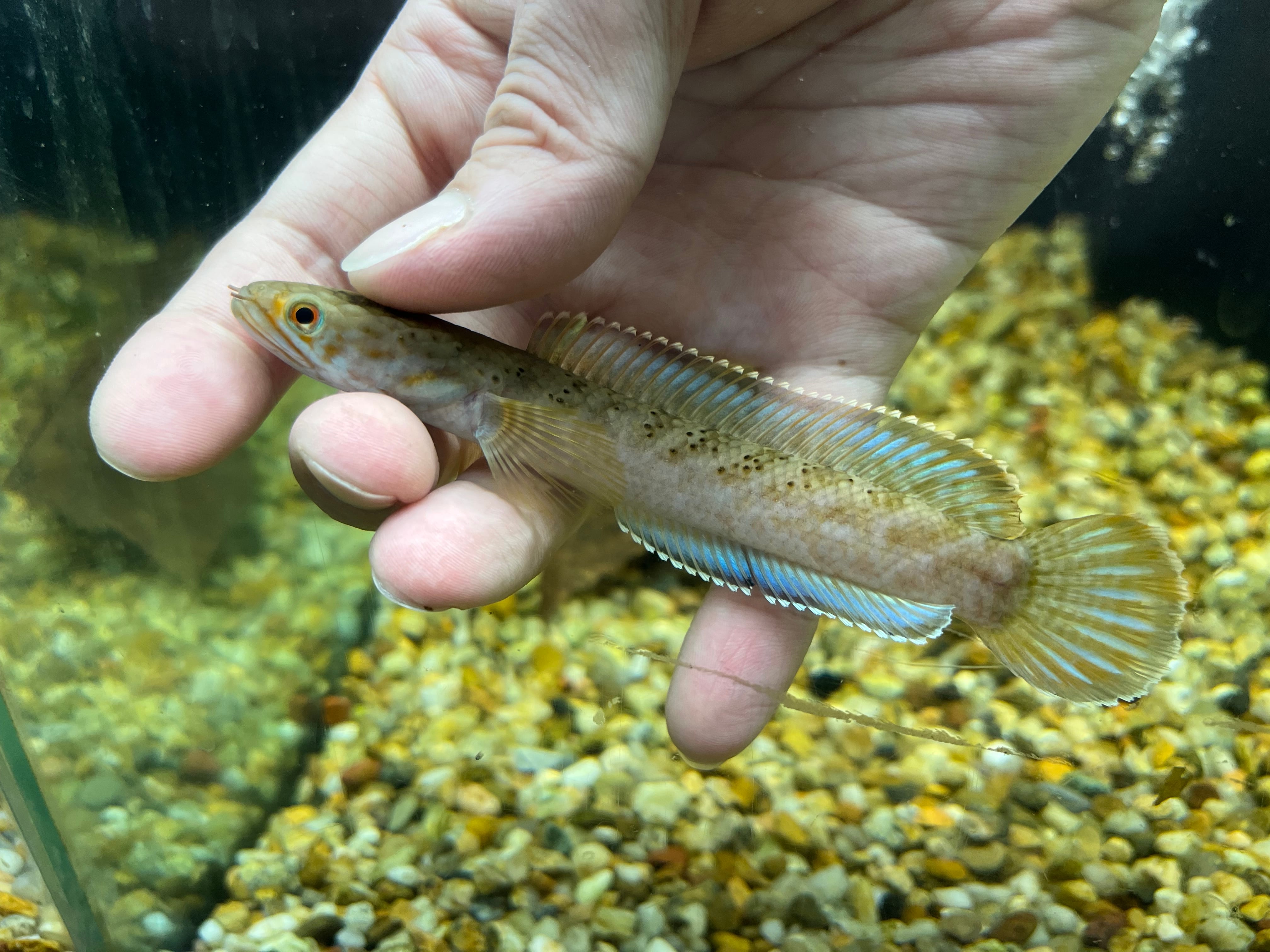 アリストネイ、ビプリと並び人気の高い青系スネークヘッドの代表種です。かつてはブルームーンギャラクシーという流通名でビプリと混同されていた時期もありましたが現在は分類されています。地域バリエーションがいくつかあり、メガラヤレオパードやインセインとうタイプも時折流通します。本種最大の魅力である鮮やかな青色を発色させるには、硬度を含んだ中性の飼育水で水温を20-22度に保ち、強めの照明を当てることで美しく発色します。よくジャンプをするので水槽のフタは必須です。