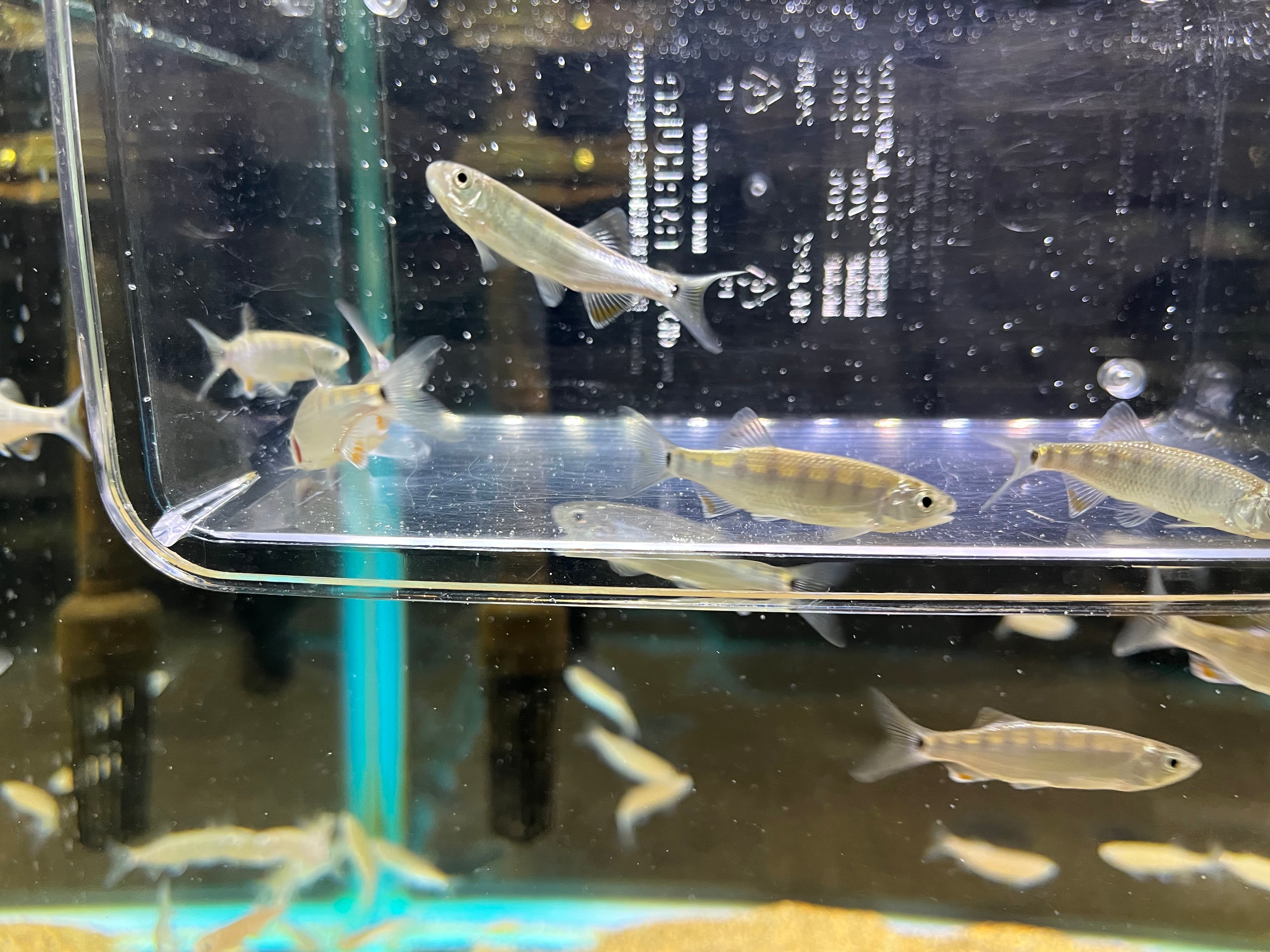 ミャンマーに生息するオプサリウスの一種。全体的に流通の少ないグループですが、本種は中でも流通が少なく入手できる機会は極めて少ない種類です。銀色の体色に背ビレと尻ビレに入る赤のワンポイントが特徴的な種類です。