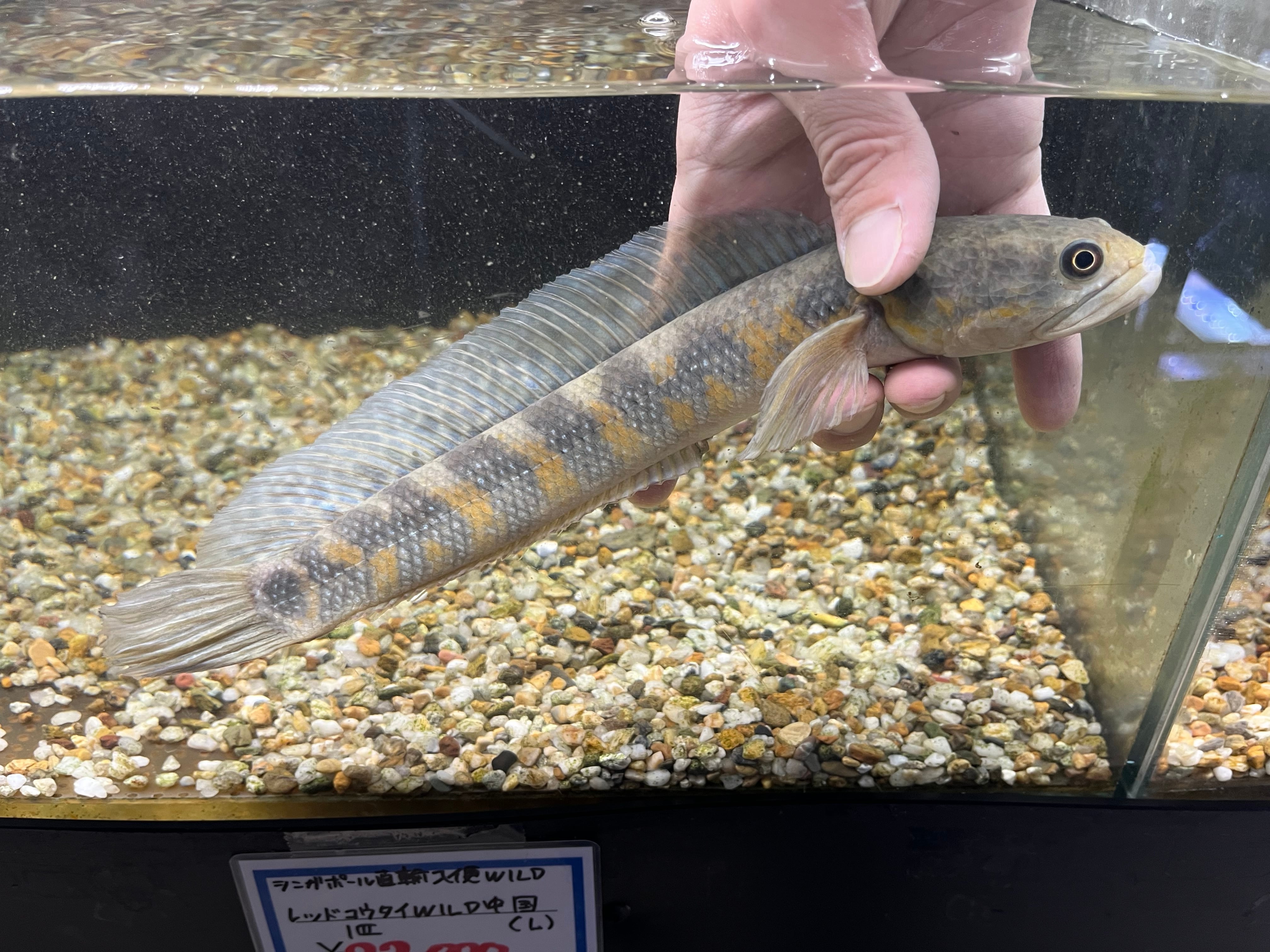 現在流通するレッドスポットコウタイやレッドギャラクシーコウタイのルーツとなった野生のレッドコウタイです。野生個体は主に中国に生息しますが、改良品種の普及におされていることもあり流通は皆無に等しく非常に珍しいと言えるでしょう。難あり個体です。尻ビレが欠けています。時間はかかりますが再生の見込みはあります。