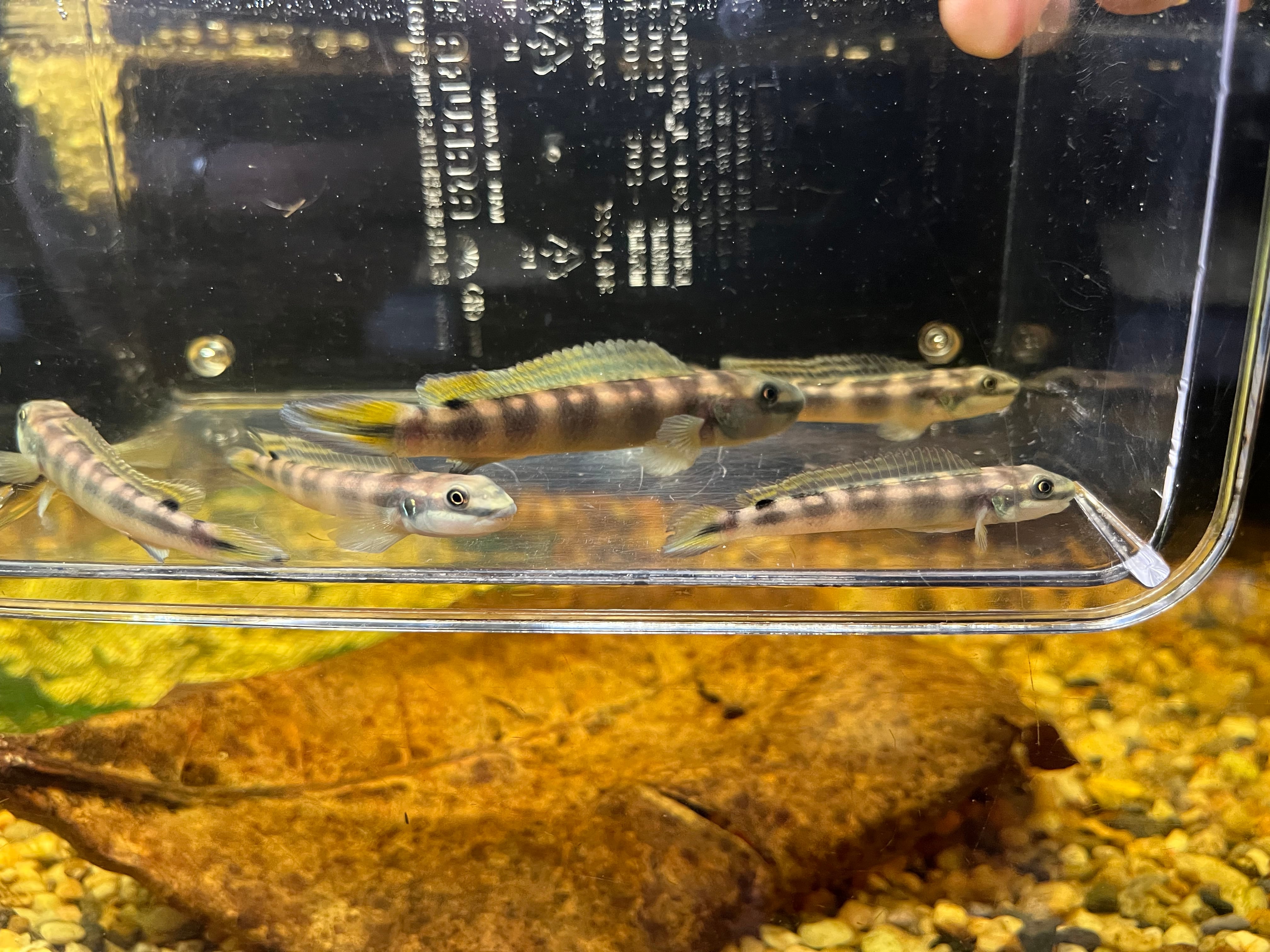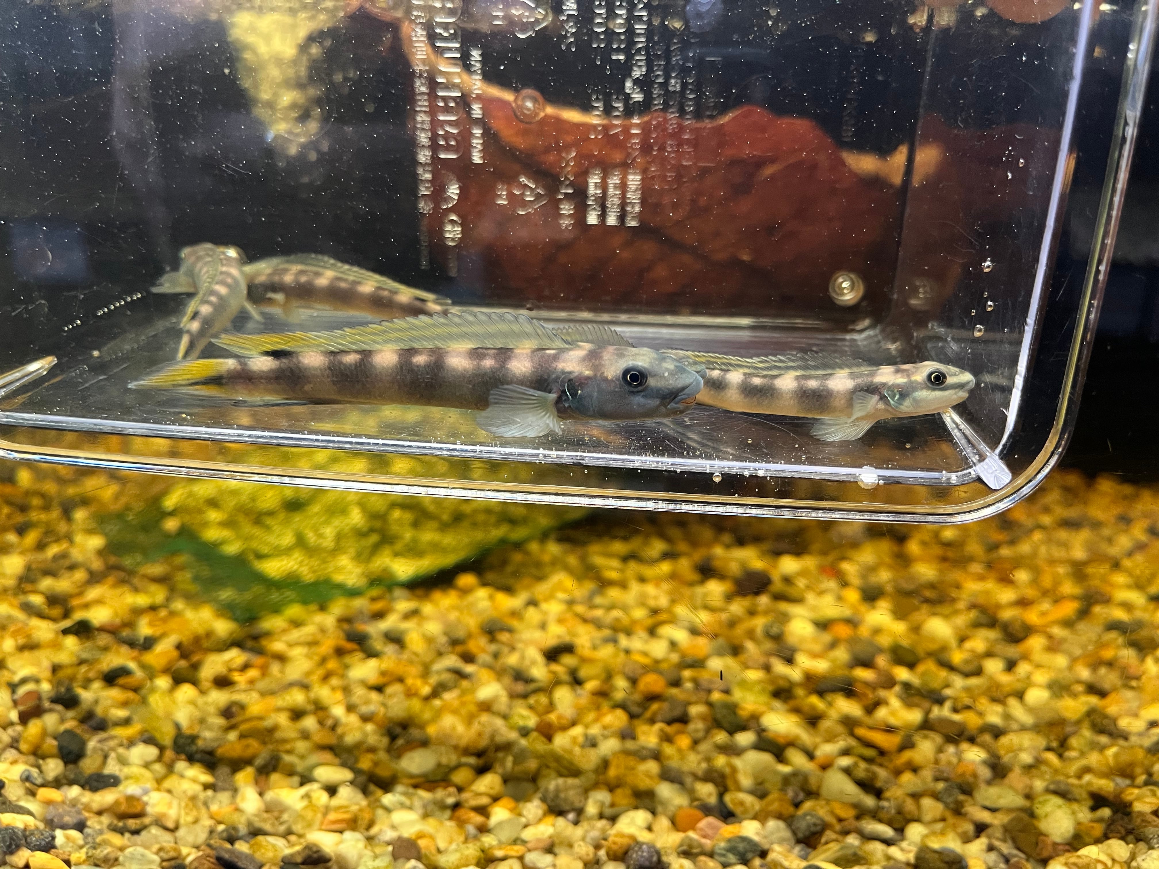 ギニアに生息するハゼ型シクリッドの一種です。背ビレと尾ビレに入るイエローが美しい種類です。名前はある程度知られるものの輸入量は非常に少なく、常時見られる魚ではありません。仲の良いペアさえ揃えば繁殖も比較的容易な種類です。外見上からの判断が非常に難しいため、オスメスの判別は不可とさせていただきます。